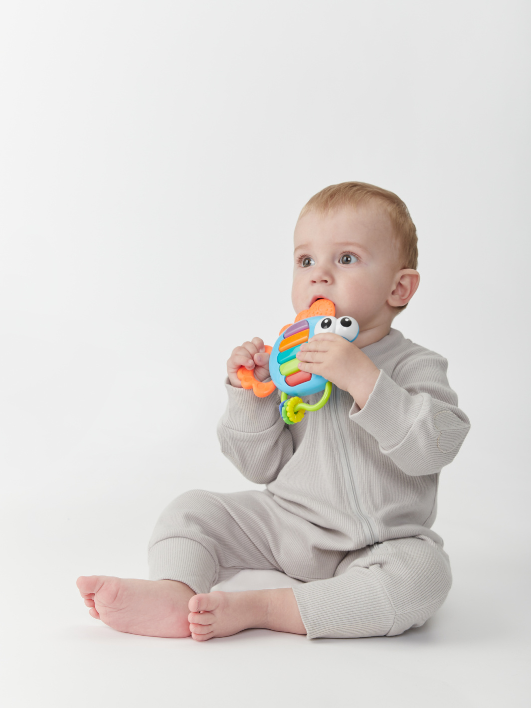 Развивающие коврики, неваляшки, игрушки с зеркалами полезны детям первого года жизни. Особенно удобны многофункциональные погремушки-прорезыватели, например, Погремушка MOO-RING от Happy Baby. Игрушка выполнена в форме коровы, её легко удерживать маленькими ручками благодаря рельефным кольцам разных цветов. Погремушка помогает развивать мелкую моторику, улучшает тактильное восприятие и успокаивает десны при прорезывании зубов. Мягкий звук способствует развитию слуха. Удобное крепление позволяет брать игрушку в путешествия и прогулки