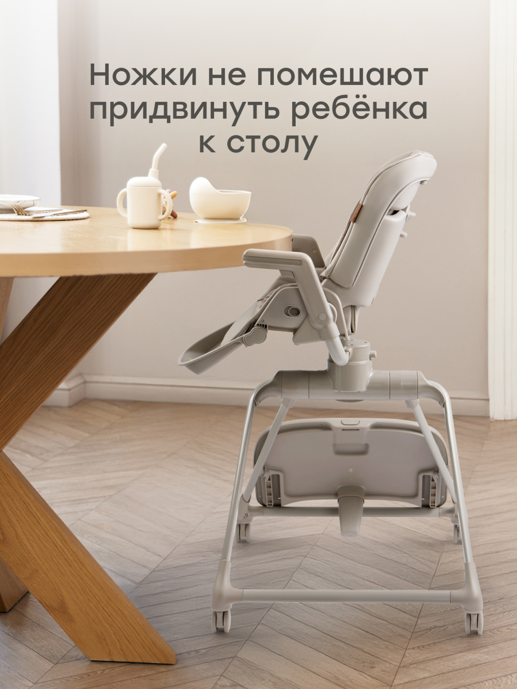 Эта особенность является настоящей находкой для семей с небольшими кухнями или высокими кухонными столами, поскольку теперь ничто не мешает ребенку комфортно разместиться за столом семьи.