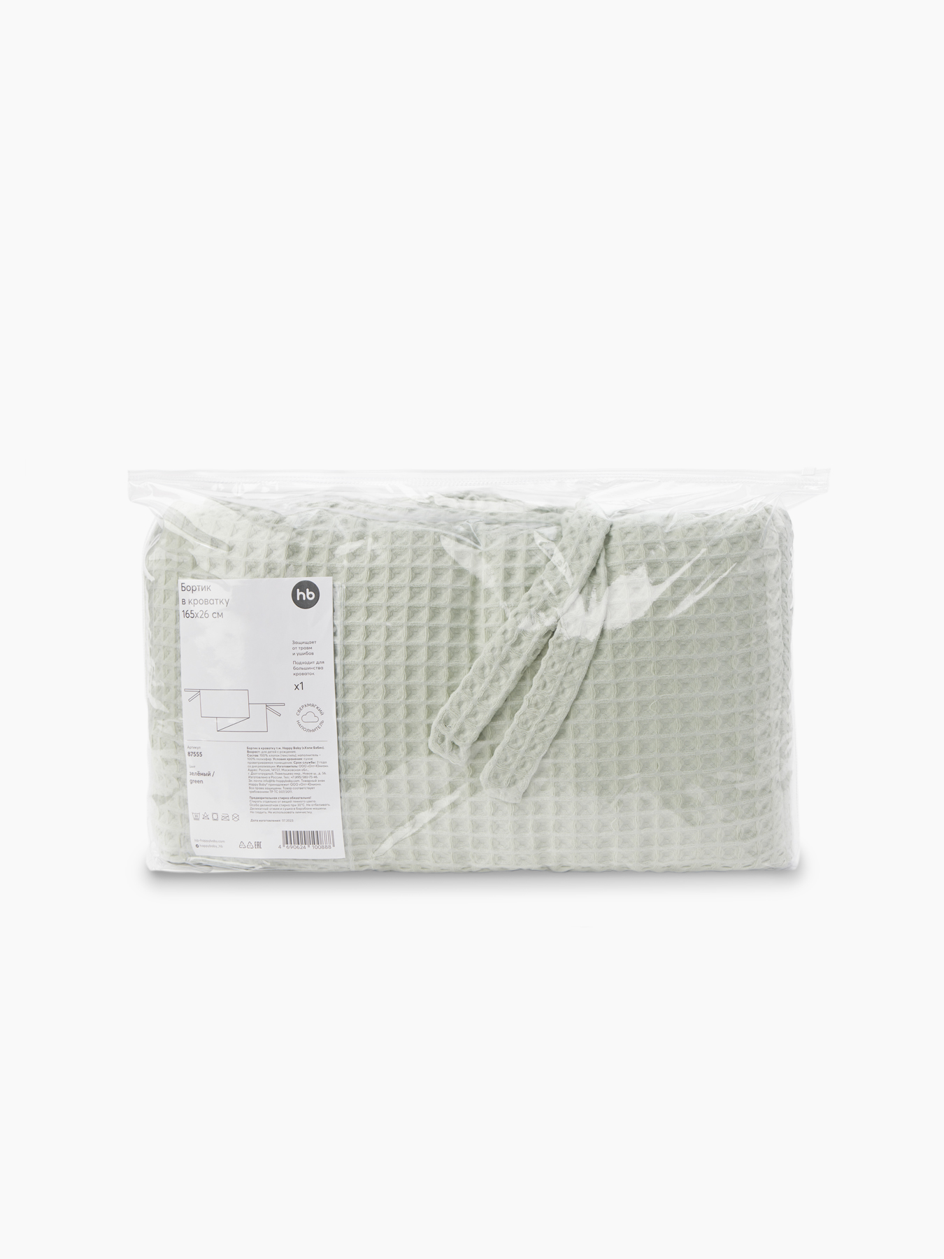 Бортик в кроватку необходим для безопасности и комфорта малыша. Мы создали мягкий и лёгкий бортик с безопасным плотным наполнителем, чтобы защитить кроху от травм, ушибов и застревания в перегородках. Выполнен из 100% хлопка. Натуральный материал гигроскопичен, не нагревается в жару и сохраняет тепло в холодное время. Наполнитель – 100% полиэфир – гибкий, упругий, дышащий и хорошо переносит стирку. Бортик надёжно крепится к стенкам с помощью завязок.