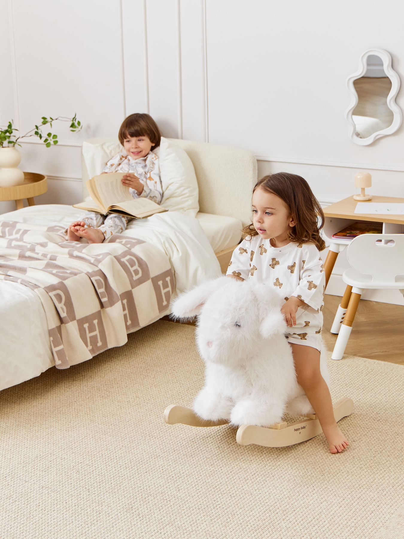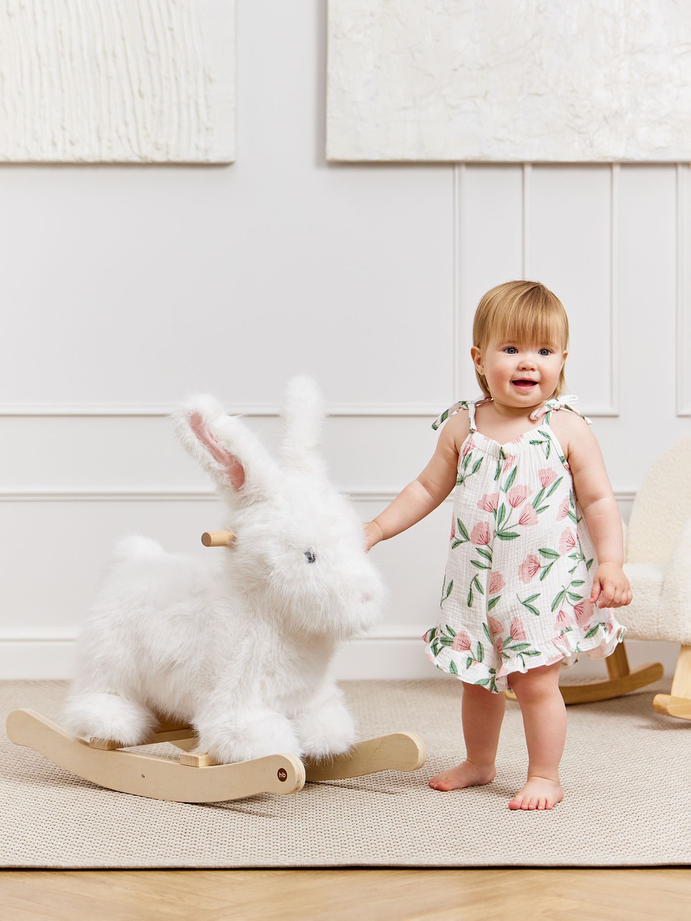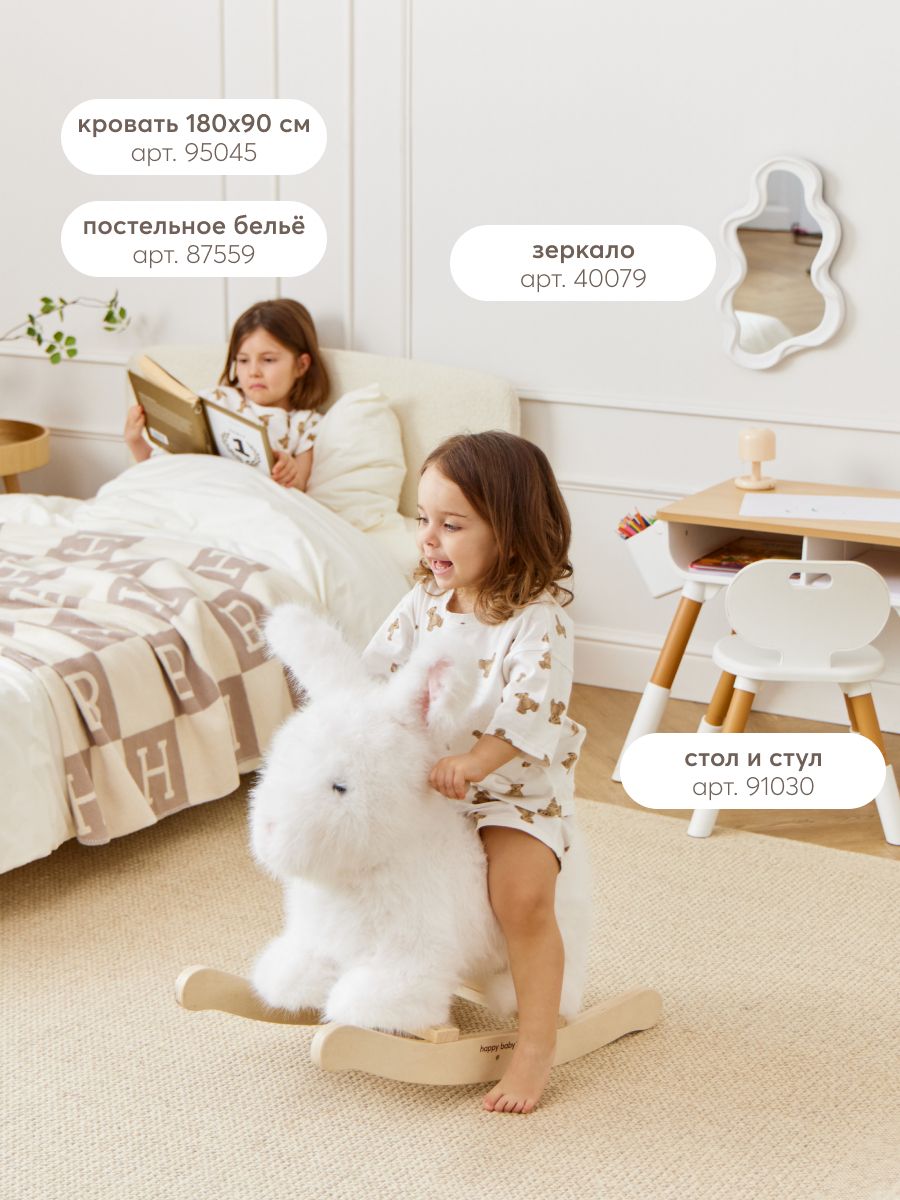 Игрушка-качалка Bunny позволит малышам весело проводить время и украсит интерьер. Мягкая поверхность приятно касается кожи. Удобное сиденье и ручки из дерева гарантируют комфорт. Устойчивая игрушка не перевернется и не раскачается слишком сильно. Натуральное дерево, из которого сделан каркас – натуральный материал. Все детали тщательно обработаны, а конструкция не имеет острых углов, что идеально для детской комнаты.