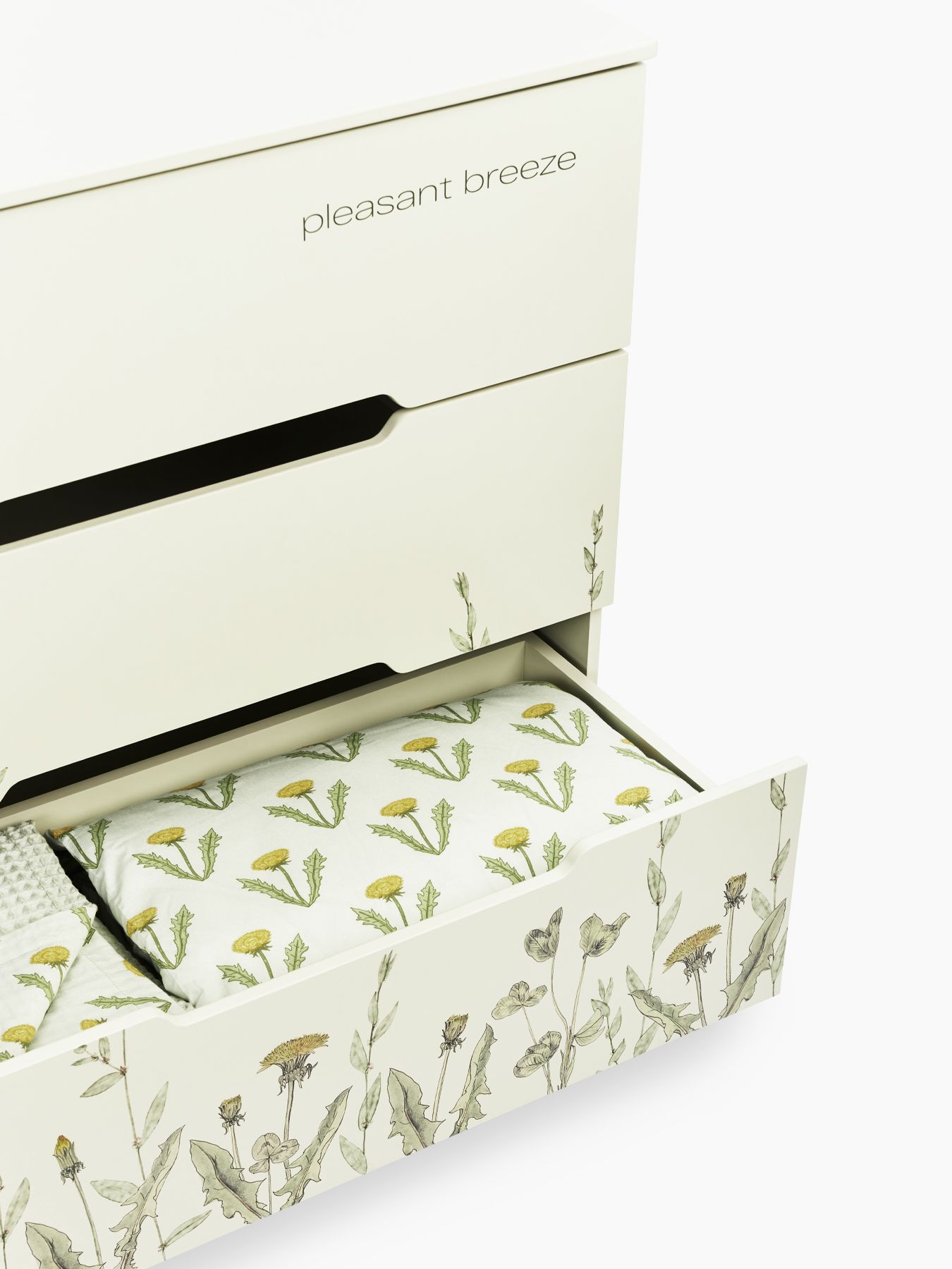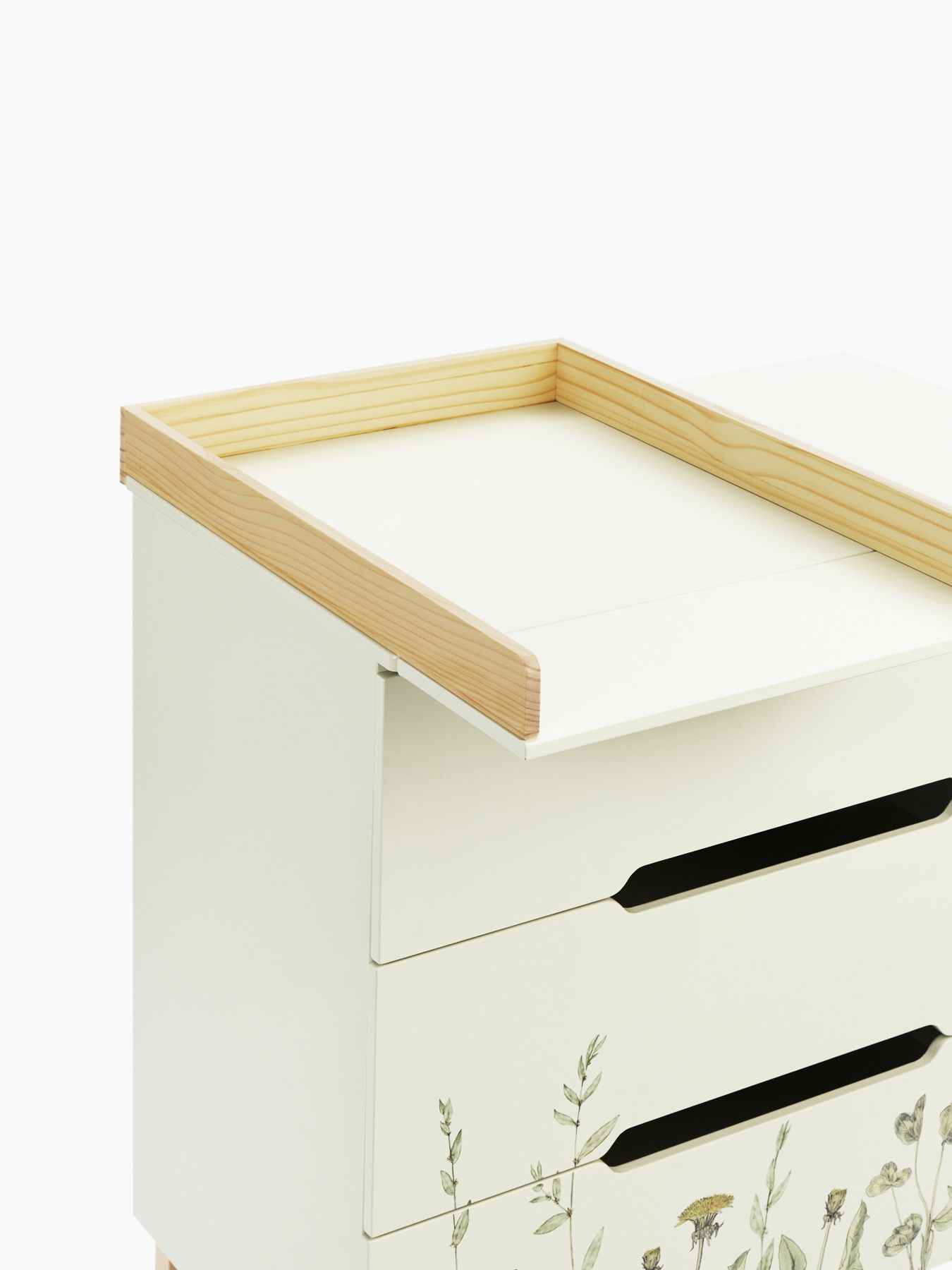 Комод Fioki станет важной частью вашей детской комнаты. Просторные ящики обеспечат хранение всех необходимых вещей для малыша: средств по уходу, пелёнок, одежды и постельного белья. Ящики легко открываются, не нарушая сон ребёнка, а ножки из натурального дерева придают комоду дополнительную устойчивость. Съемный пеленальный столик делает уход за малышом еще проще и удобнее, а его бортики обеспечивают дополнительную безопасность.