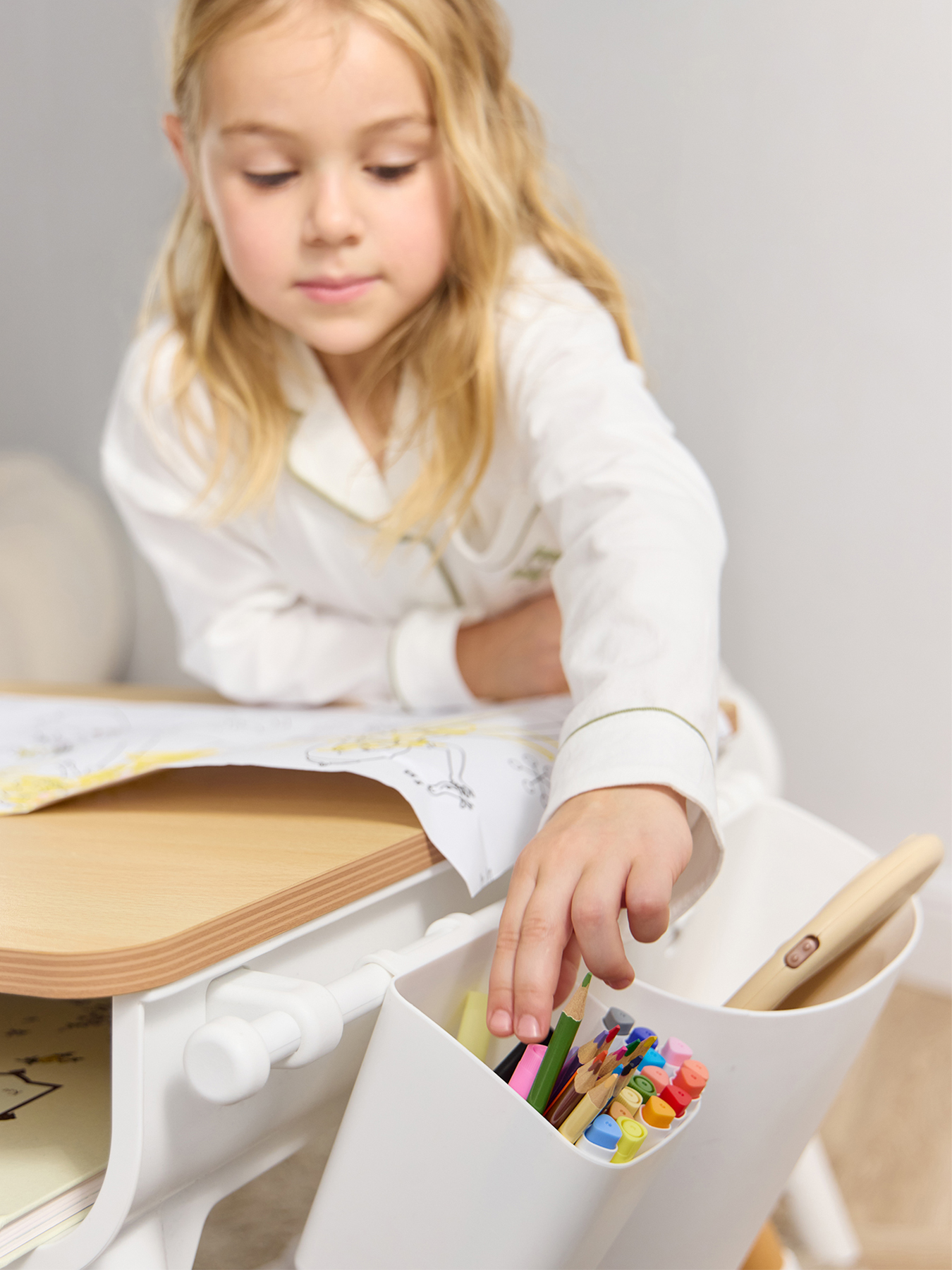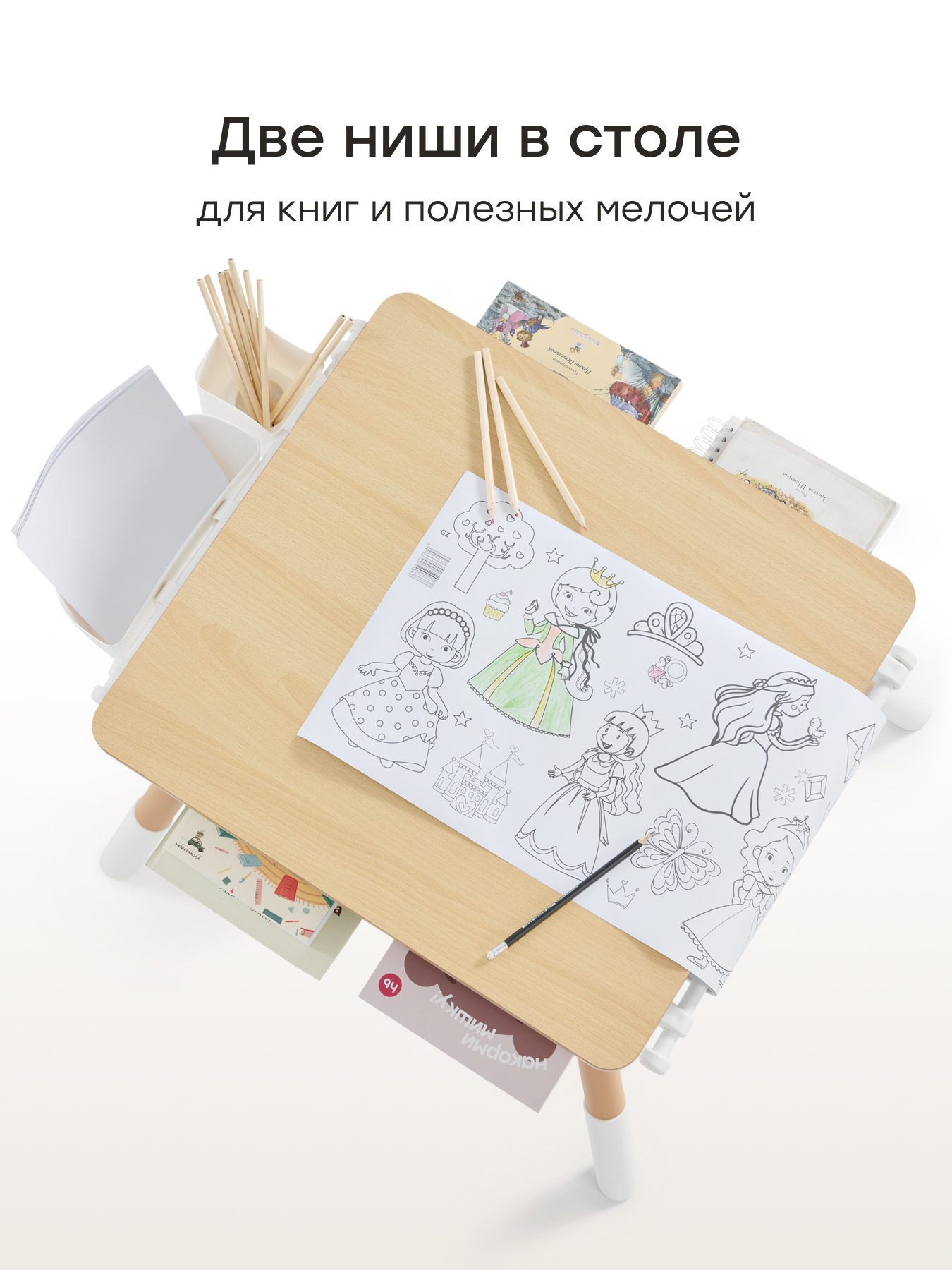 • Для творчества и учебы - встроенный держатель для рулона бумаги и органайзер для канцелярии