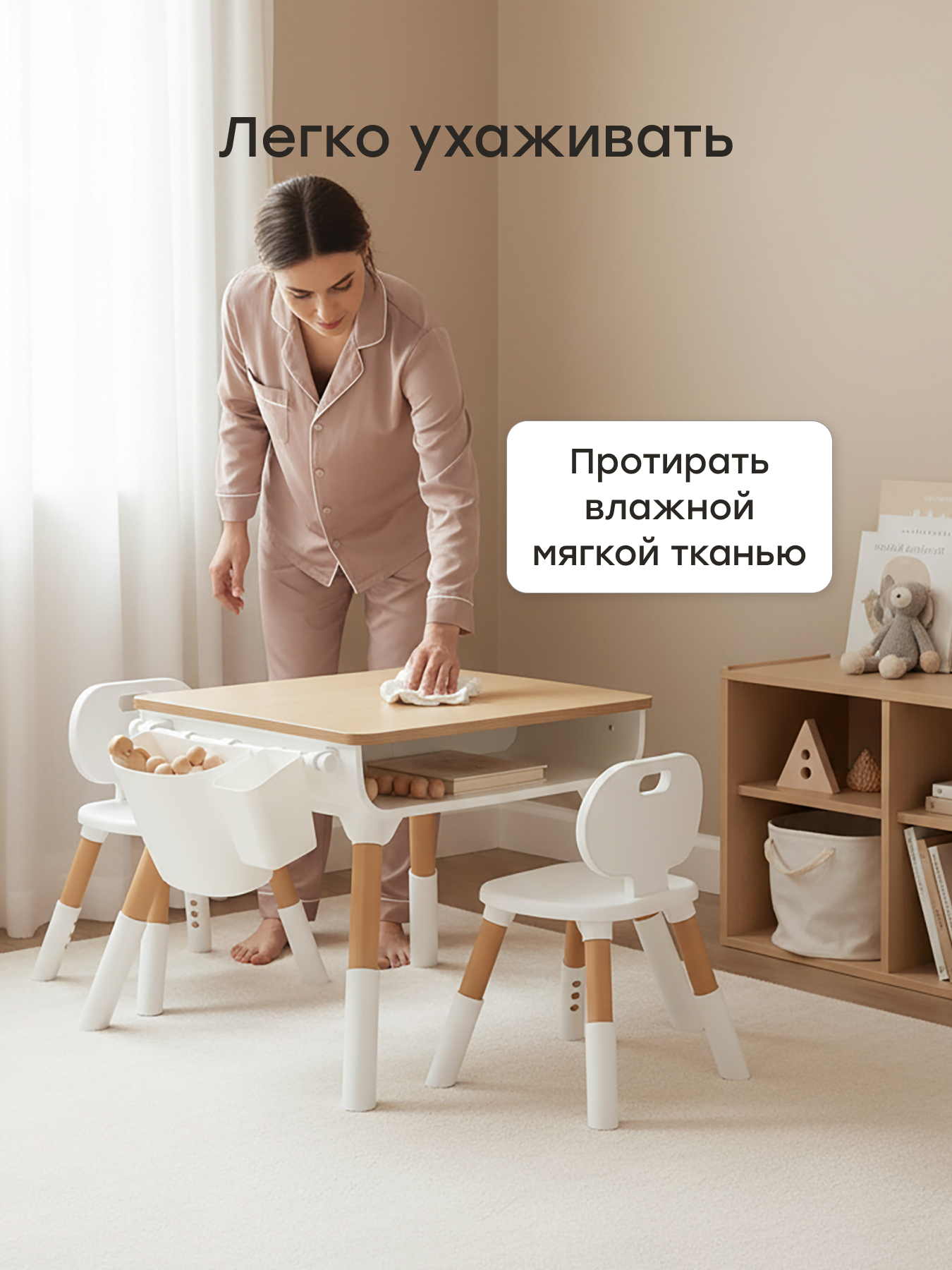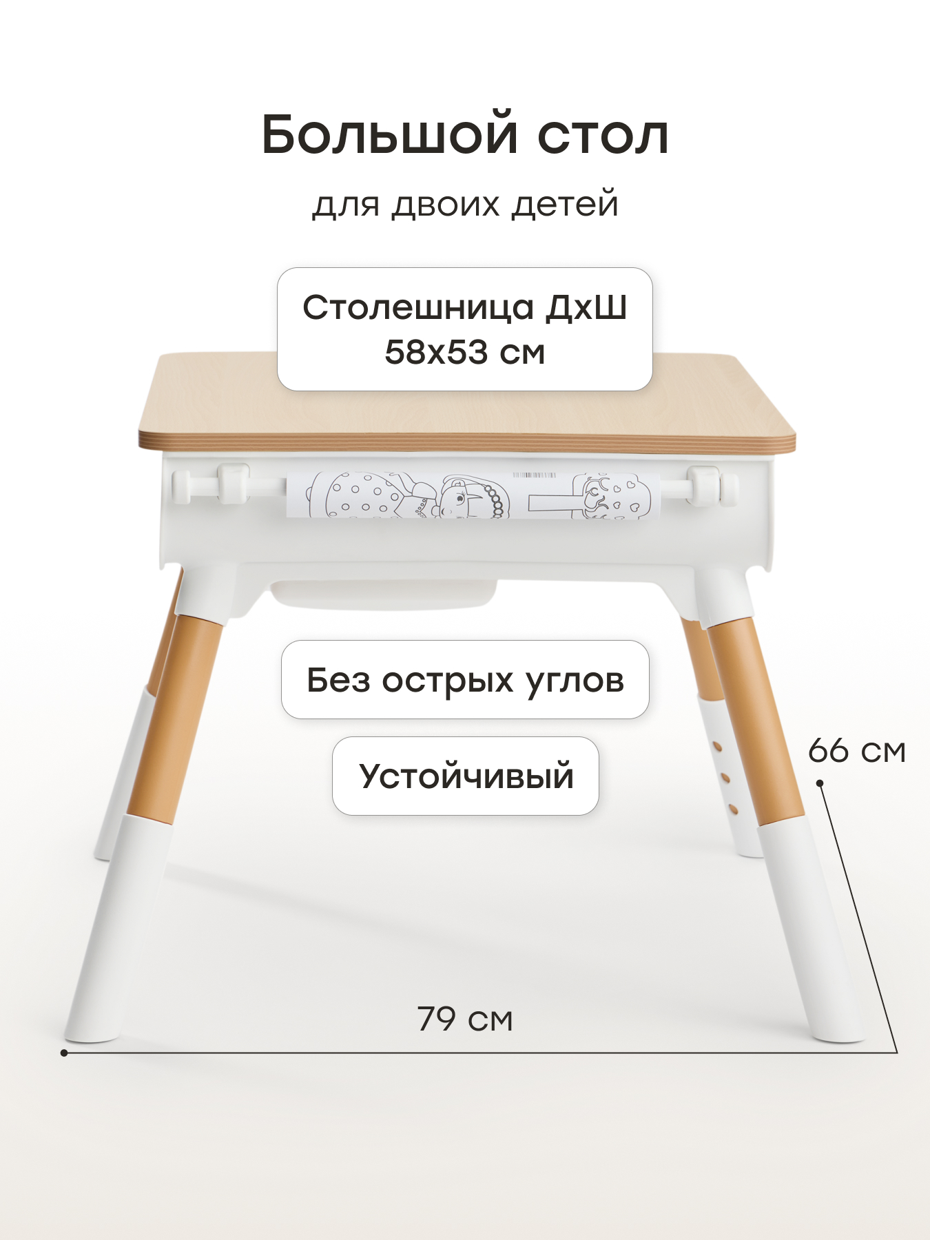 • Безопасность и комфорт - прочный пластиковый каркас и столешница без острых углов