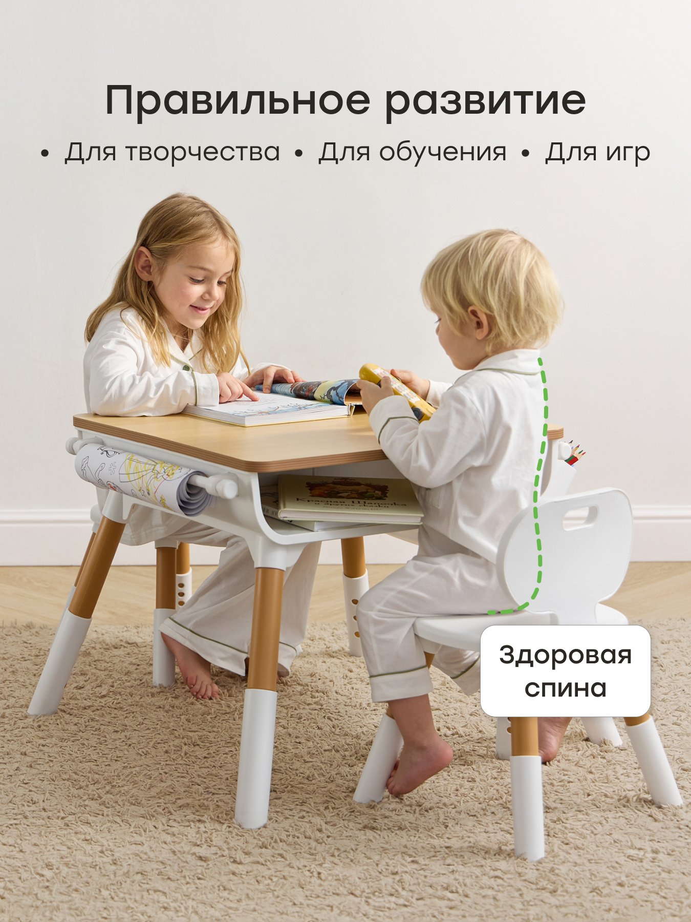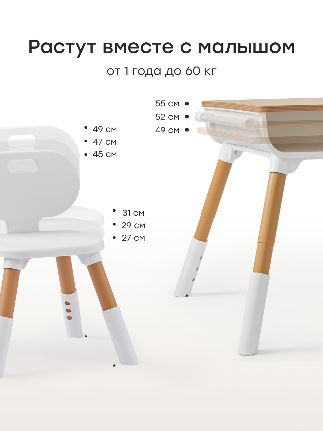 • Растет вместе с ребенком - регулировка высоты обеспечивает правильную посадку и поддерживает осанку