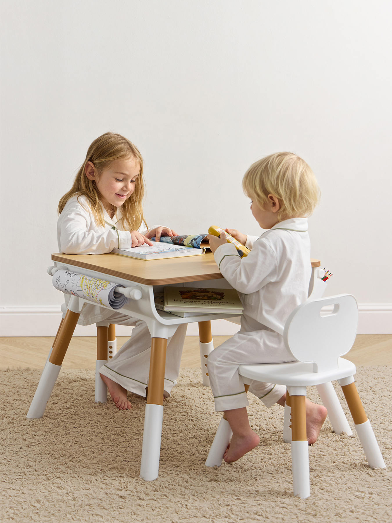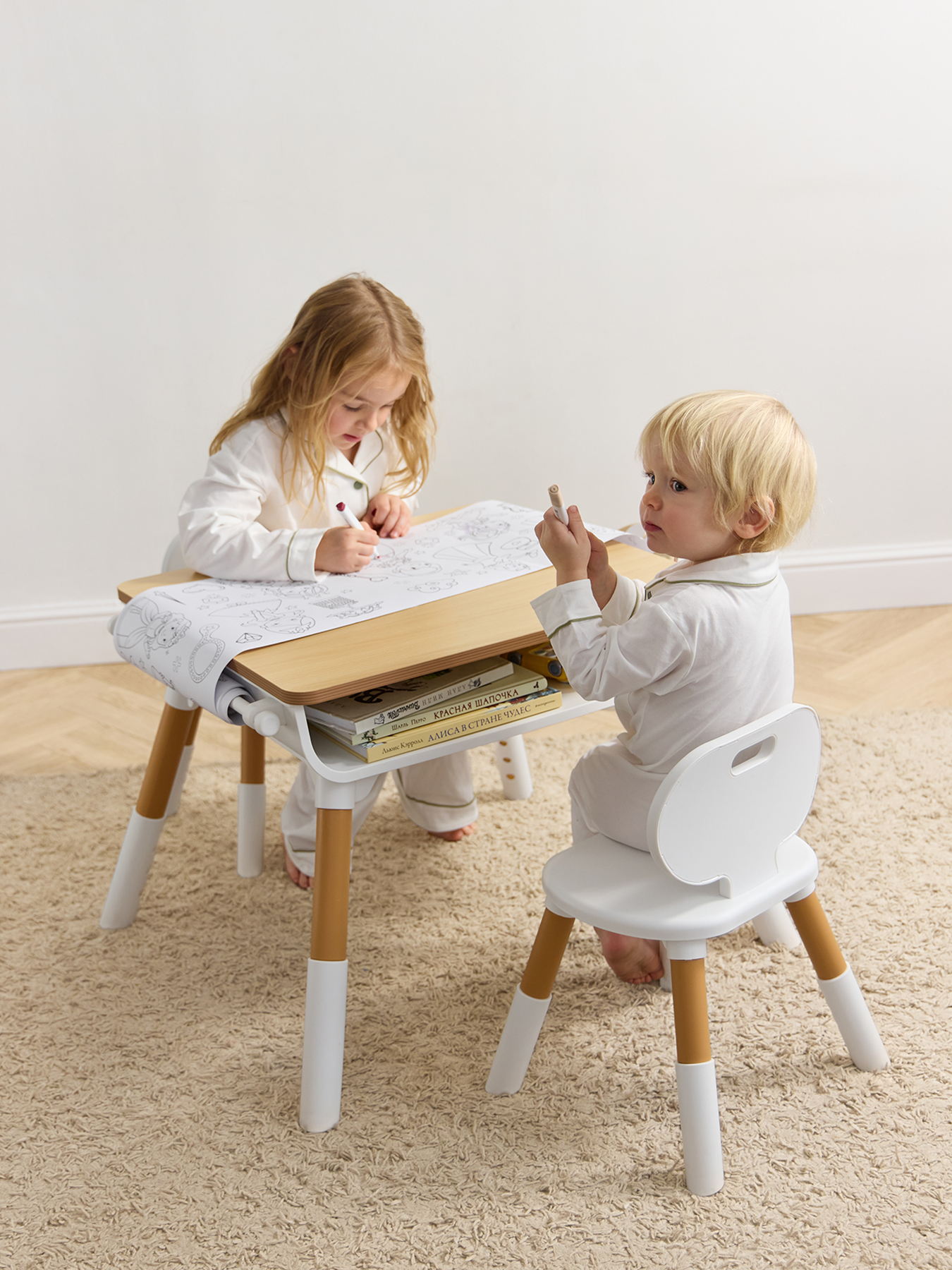 Детский комплект LITEN DUO — растущий стол и два стула для детей от 1 года. Мебель регулируется по высоте, обеспечивая правильную осанку. Стол оснащен органайзером, держателем для рулона бумаги и безопасной столешницей без острых углов. Компактный и прочный дизайн идеально впишется в любую комнату. Особенностью комплекта является то, что им могут пользоваться одновременно двое детей. Для удобства под столешницей предусмотрены две открытые ниши с двух противоположных сторон: для каждого ребёнка своя отдельная зона для хранения вещей.