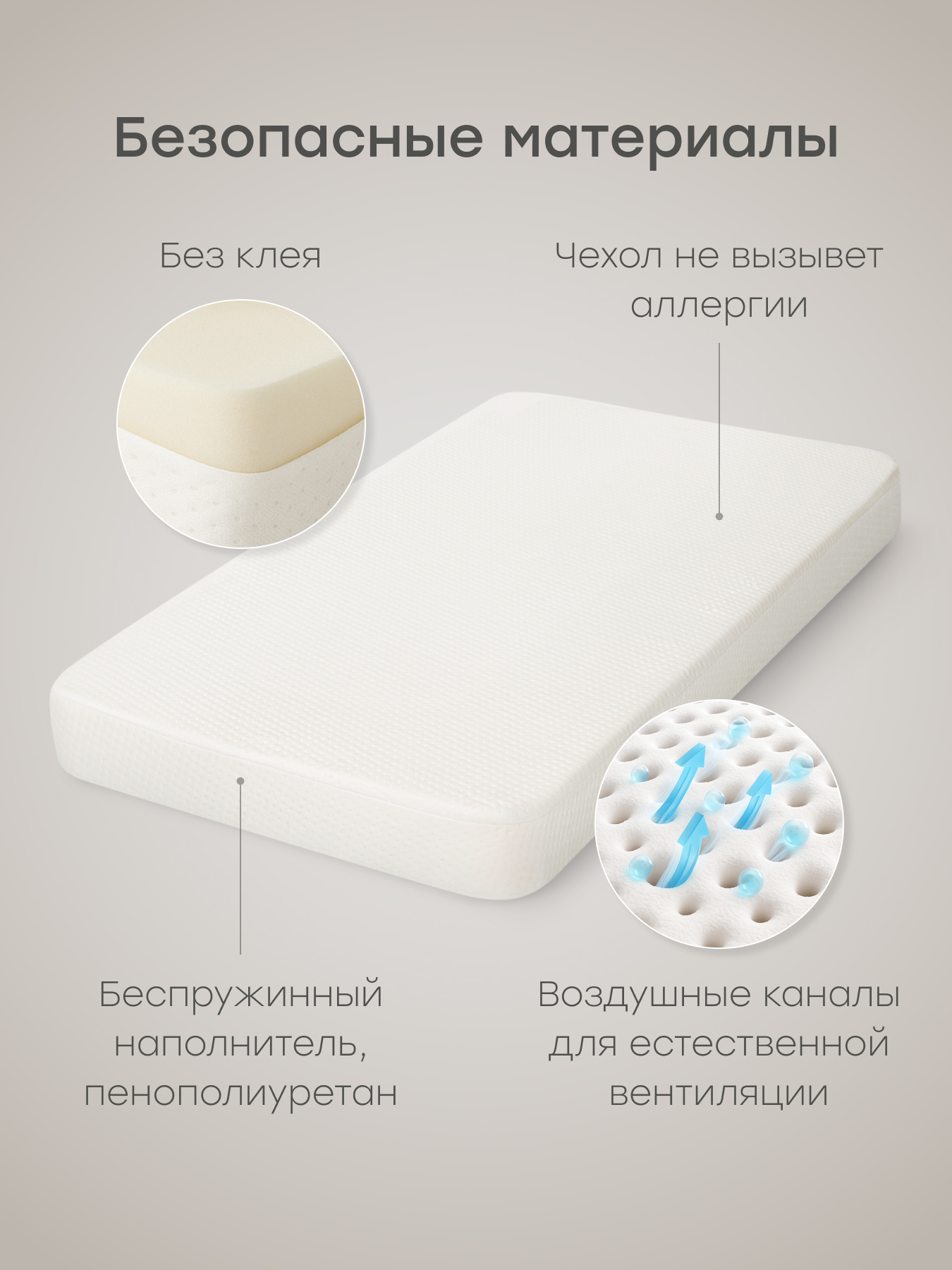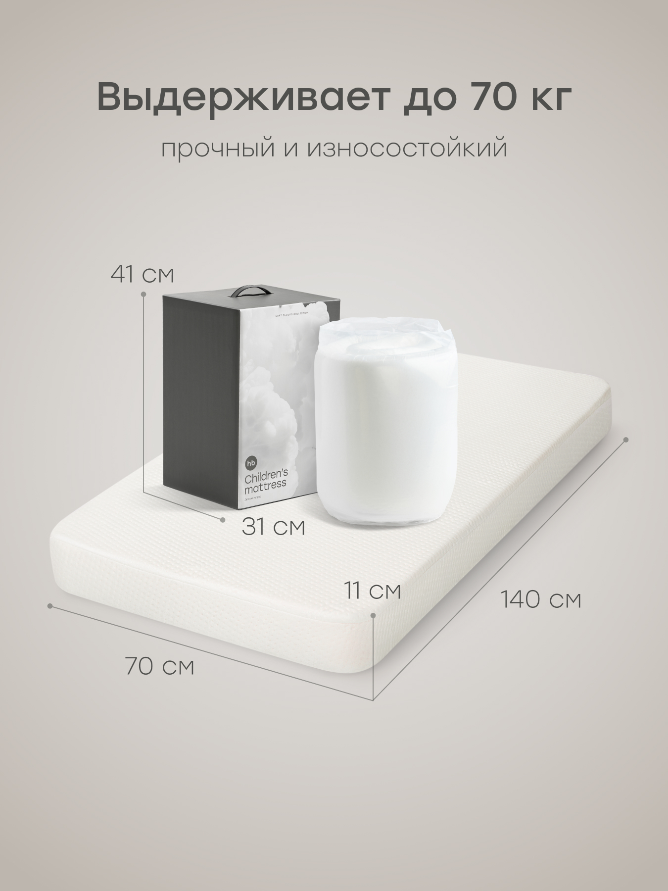 Детский матрас 140х70 см от Happy Baby идеально подходит для новорожденных и детей постарше. Размер матраса 140х70х11 см обеспечивает удобную укладку в стандартную детскую кроватку. Оптимальная толщина - 11 см - гарантирует высокий уровень комфорта и анатомическую поддержку тела во время сна. Матрас детский обладает средней жёсткостью, что особенно важно для правильного формирования осанки ребёнка. Наполнитель из 100 пенополиуретана с пористой структурой обеспечивает упругость, воздухообмен и равномерное распределение нагрузки. Съёмный чехол на молнии легко снимается и стирается, что делает матрас практичным и гигиеничным в использовании. Максимальная нагрузка до 70 кг позволяет использовать матрас на протяжении нескольких лет. Высокое качество материалов, долговечность и безопасность делают этот матрас в детскую кроватку отличным выбором для здоровья вашего ребёнка.