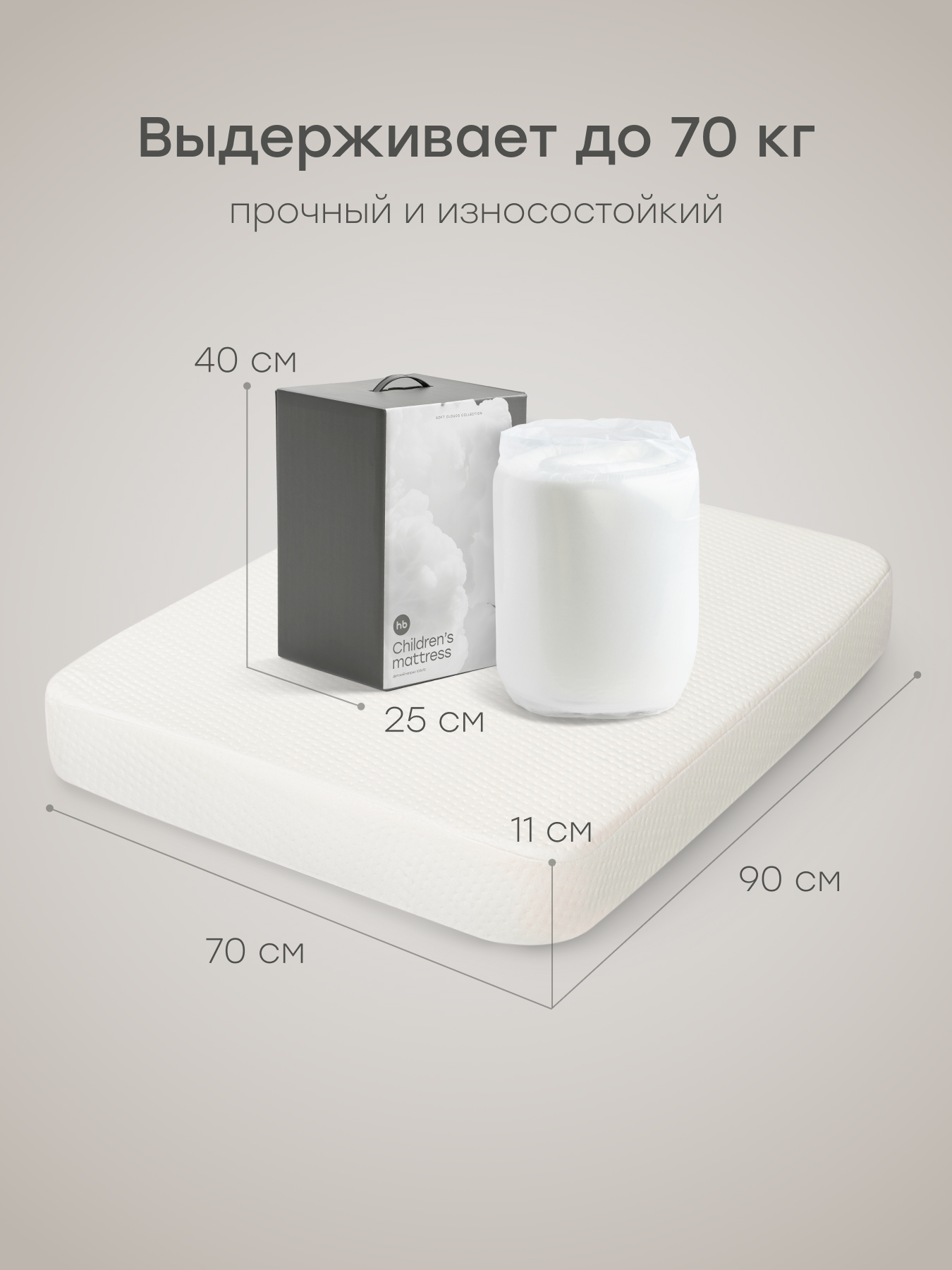 Детский матрас 90х70 см от Happy Baby идеально подходит для новорожденных и детей постарше. Размер матраса 90х70х11 см обеспечивает удобную укладку в стандартную детскую кроватку. Оптимальная толщина - 11 см - гарантирует высокий уровень комфорта и анатомическую поддержку тела во время сна. Матрас детский обладает средней жёсткостью, что особенно важно для правильного формирования осанки ребёнка. Наполнитель из 100 пенополиуретана с пористой структурой обеспечивает упругость, воздухообмен и равномерное распределение нагрузки. Съёмный чехол на молнии легко снимается и стирается, что делает матрас практичным и гигиеничным в использовании. Максимальная нагрузка до 70 кг позволяет использовать матрас на протяжении нескольких лет. Высокое качество материалов, долговечность и безопасность делают этот матрас в детскую кроватку отличным выбором для здоровья вашего ребёнка.