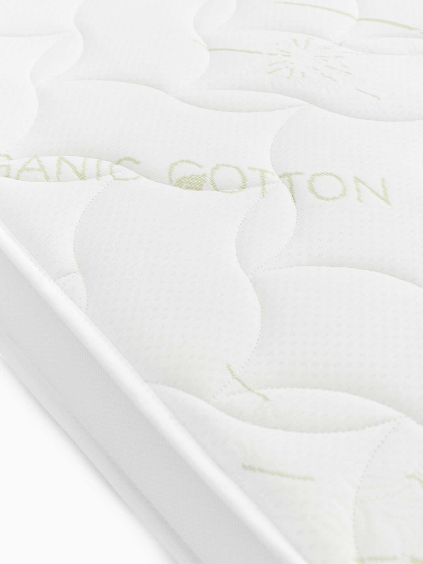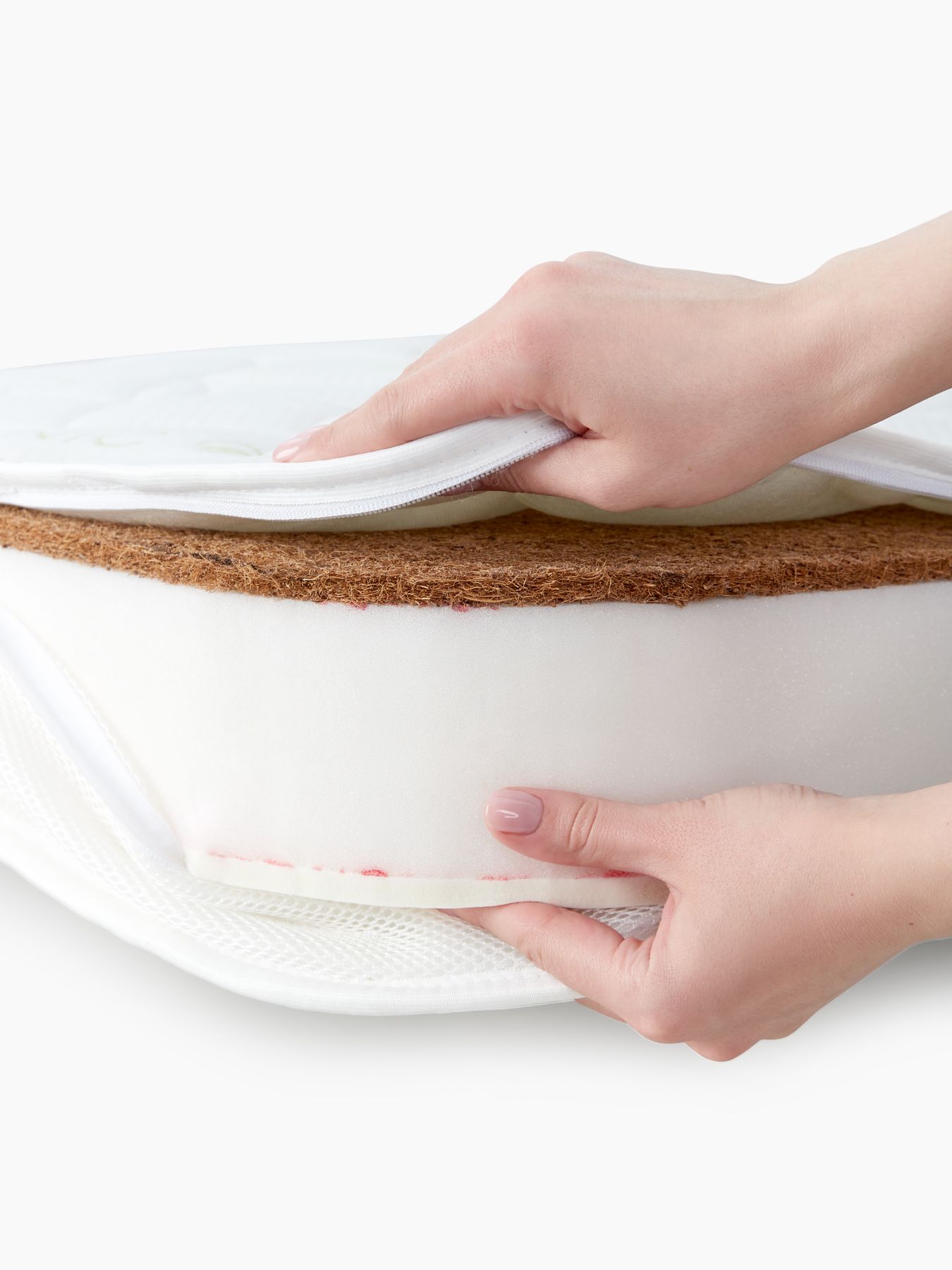 Матрас Happy Baby идеально подходит для малышей с самого рождения и соответствует всем требованиям для правильного развития и здорового сна ребенка: он жесткий, без пружин, изготовлен из качественных материалов и имеет оптимальную толщину 110 мм. Модель двусторонняя. Одна из поверхностей покрыта слоем кокосовой койры для максимального ортопедического эффекта, необходимого новорожденному (толщина 10 мм, жесткость 4 из 5). Вторая — слоем натурального латекса. Природный эластичный материал подарит ребенку особый комфорт и обладает анатомическим эффектом благодаря точечному распределению нагрузки. На этой стороне мы рекомендуем спать детям после года (слой 10 мм, жесткость 3 из 5). В основе матраса 90 мм высокоэластичного пенополиуретана. Он имеет пористую структуру, обеспечивая хорошую циркуляцию воздуха и здоровый микроклимат для сна. Обладает высокой точечной эластичностью, хорошо поддерживает тело ребенка, не прогибаясь. Матрас предназначен для кроваток Happy Baby 140х70 см.