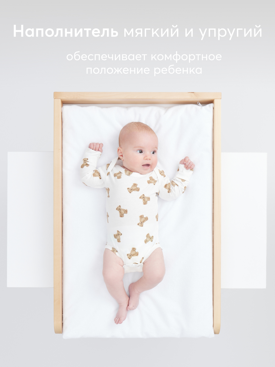 Пеленальный матрасик сделает гигиенические процедуры, массаж, подготовку к купанию и переодевания более комфортными и приятными для малыша. Внутри мягкий наполнитель, а сверху – съемный чехол из нежной ткани, который можно стирать в машинке. Чехол быстро сохнет, после чего снова готов к использованию. Матрас оптимального размера, его удобно хранить, а также брать с собой в поездки.