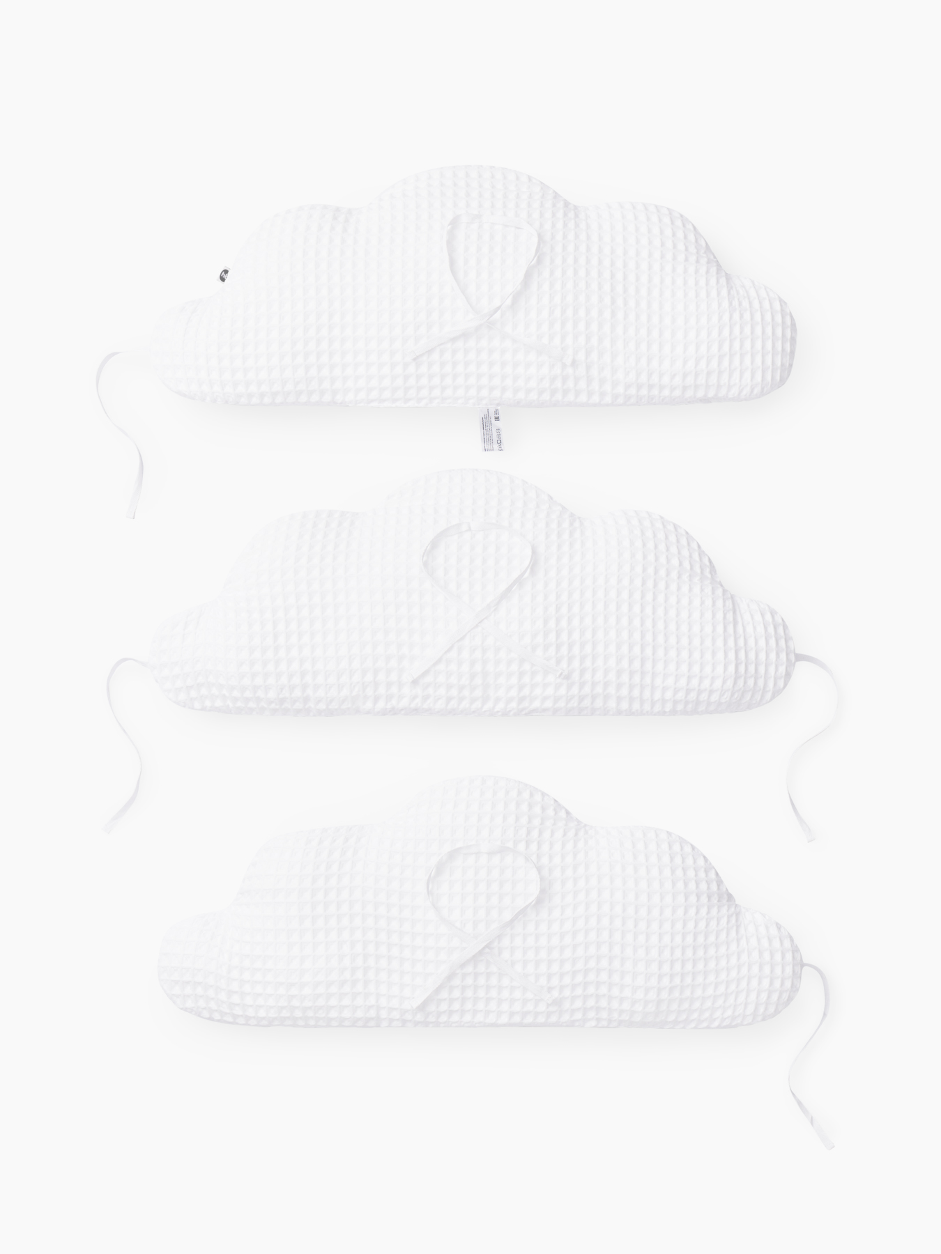 Безопасность малыша крайне важна не только во время дневных игр, но также и во время его сна. В этом вам поможет мягкий бортик, который крепится по периметру кроватки, обеспечивая малыша защитой и комфортом. Выполненный в виде легких воздушных облаков бортик заинтересует кроху как игровой элемент и добавит уюта, а его супермягкая форма защитит от травм, ушибов и не даст провалиться или застрять в перегородках. Благодаря такому аксессуару кроватка станет безопасным и уютным местом для игр и сна вашего малыша.