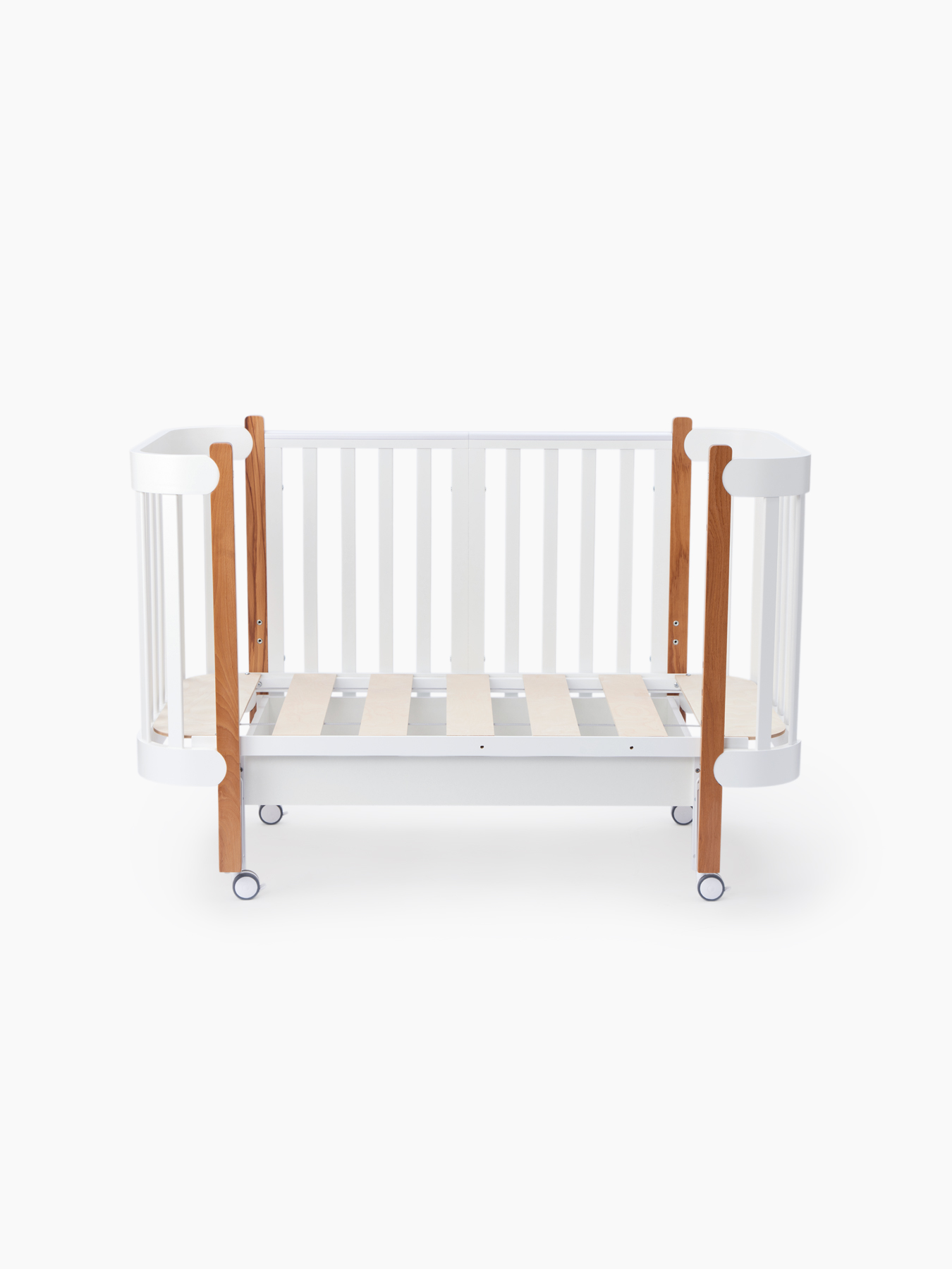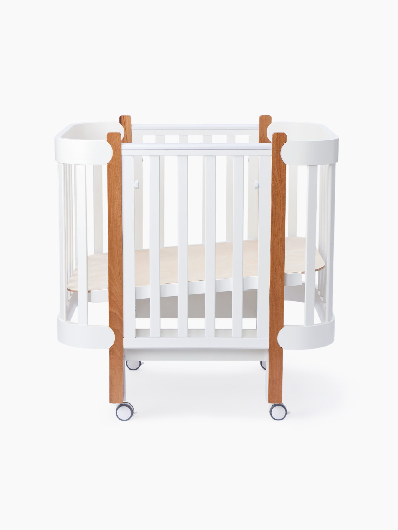 Комплект расширения позволяет увеличить люльку до полноразмерной детской кроватки. Бортики оборудованы полипропиленовыми накладками для защиты малыша и кроватки в период прорезывания зубов.