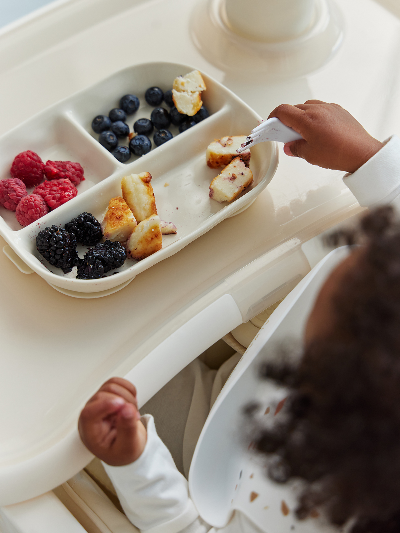 Порционная силиконовая тарелка идеально подходит для первых самостоятельных приемов пищи малыша. Разделена на три секции: это позволяет удобно раскладывать разные виды продуктов, избегая их смешивания. Благодаря надежной присоске тарелка прочно фиксируется на поверхности, предотвращая переворачивание и разливы. Тарелка легко моется как вручную, так и в посудомоечной машине. Компактная форма и современный дизайн делают её удобной для ежедневного использования.