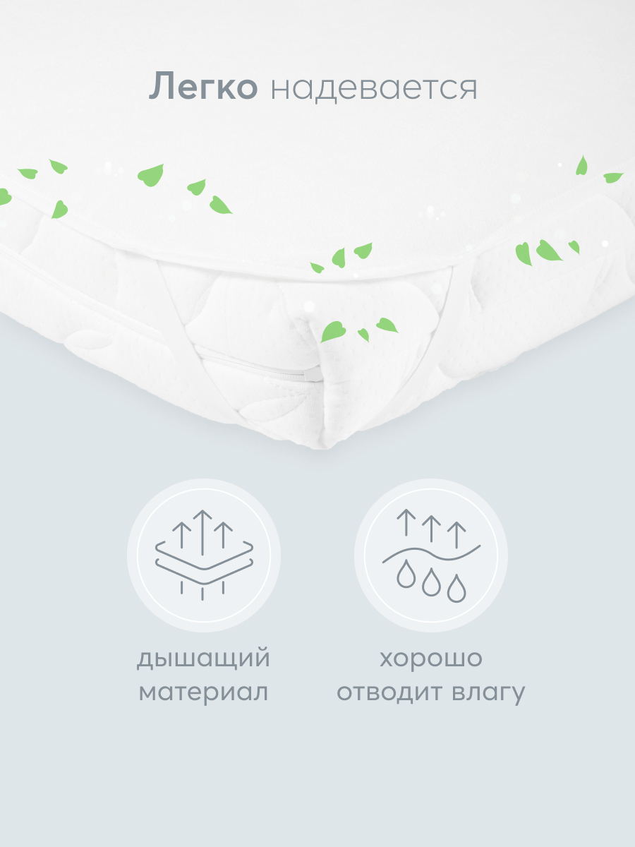 Непромокаемый наматрасник Happy Baby надежно защитит детский матрас и продлит срок его службы. Нижняя часть выполнена из дышащей мембраны Ultrasoft, которая не только гарантирует уверенную защиту от влаги, но и обеспечивает вентиляцию. Верхний слой выполнен из бархатистой бамбуковой ткани Bamboo – материала, состоящего из приятного на ощупь бамбукового волокна. Такая мягкая поверхность идеальна для нежной детской кожи и создает дополнительный уют во время сна и отдыха. Инновационные материалы просты в уходе: отлично отстирываются в машинке и быстро сохнут. Наматрасник легко надевается и фиксируется благодаря упругим резинкам по углам.