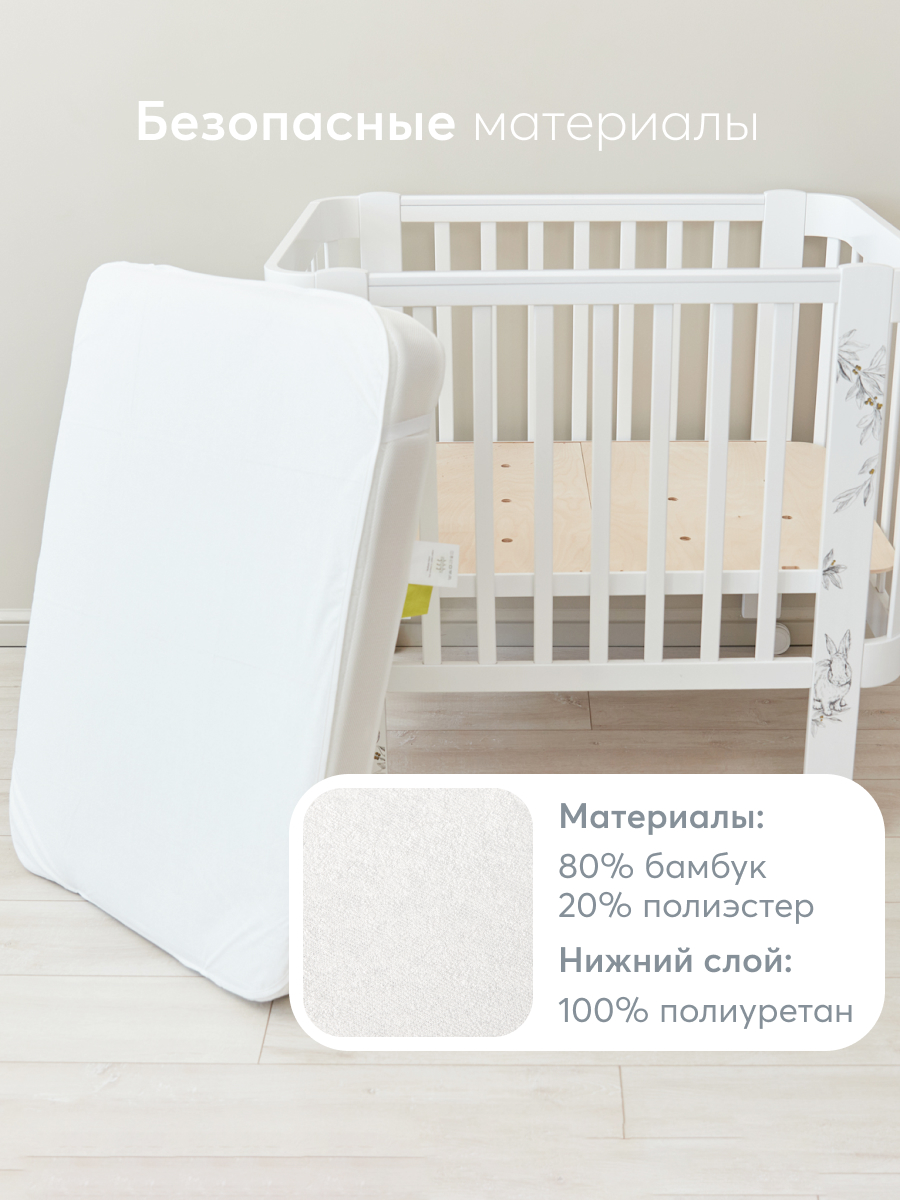 Непромокаемый наматрасник Happy Baby надежно защитит детский матрас и продлит срок его службы. Нижняя часть выполнена из дышащей мембраны Ultrasoft, которая не только гарантирует уверенную защиту от влаги, но и обеспечивает вентиляцию. Верхний слой выполнен из бархатистой бамбуковой ткани Bamboo – материала, состоящего из приятного на ощупь бамбукового волокна. Такая мягкая поверхность идеальна для нежной детской кожи и создает дополнительный уют во время сна и отдыха. Инновационные материалы просты в уходе: отлично отстирываются в машинке и быстро сохнут. Наматрасник легко надевается и фиксируется благодаря упругим резинкам по углам.