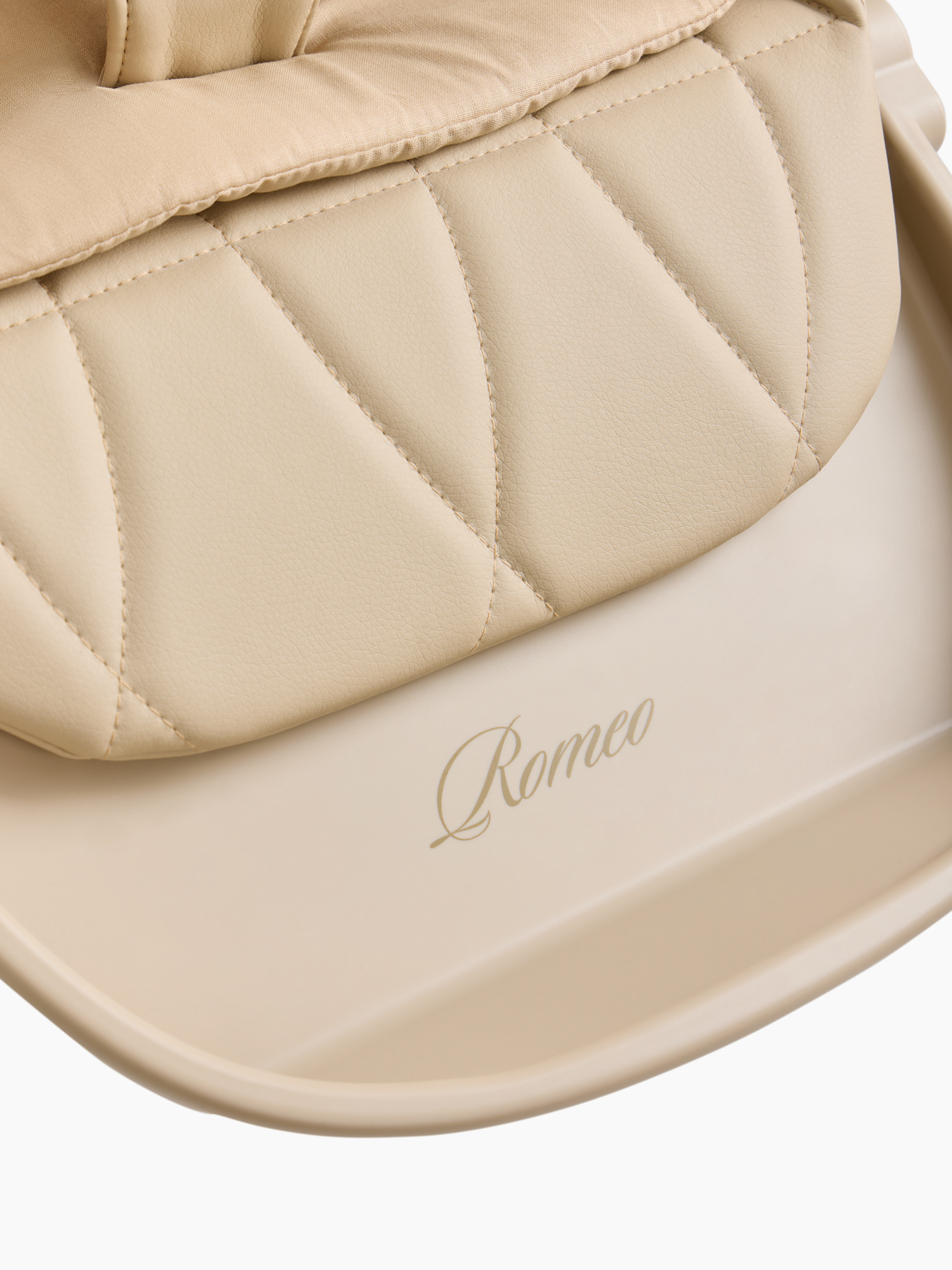 Стульчик для кормления ROMEO – это удобный и стильный стул для кормления ребенка, который можно использовать как шезлонг и как растущий комплект мебели для детей, благодаря 2 уровням высоты спинки. Стул для кормления подходит для мальчиков и девочек – спинка имеет 3 угла наклона, подножка – 3. Поворотное сиденье на 360° градусов позволяет легко менять положение ребенка — к столу или к родителю. Детский стульчик имеет съёмные столик и поднос, а также мягкий вкладыш-матрасик из хлопка. Съёмный поднос со столиком можно легко мыть после приема пищи. Столик снимается одним движением и компактно крепится на задние ножки. Стул детский для кормления ROMEO легко складывается, компактен при хранении.
