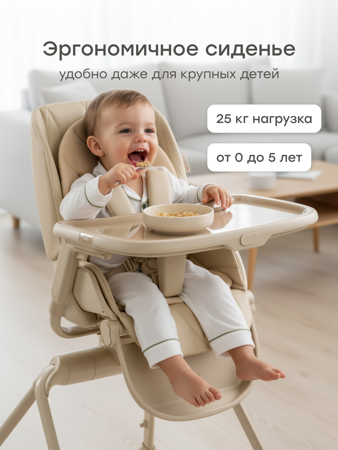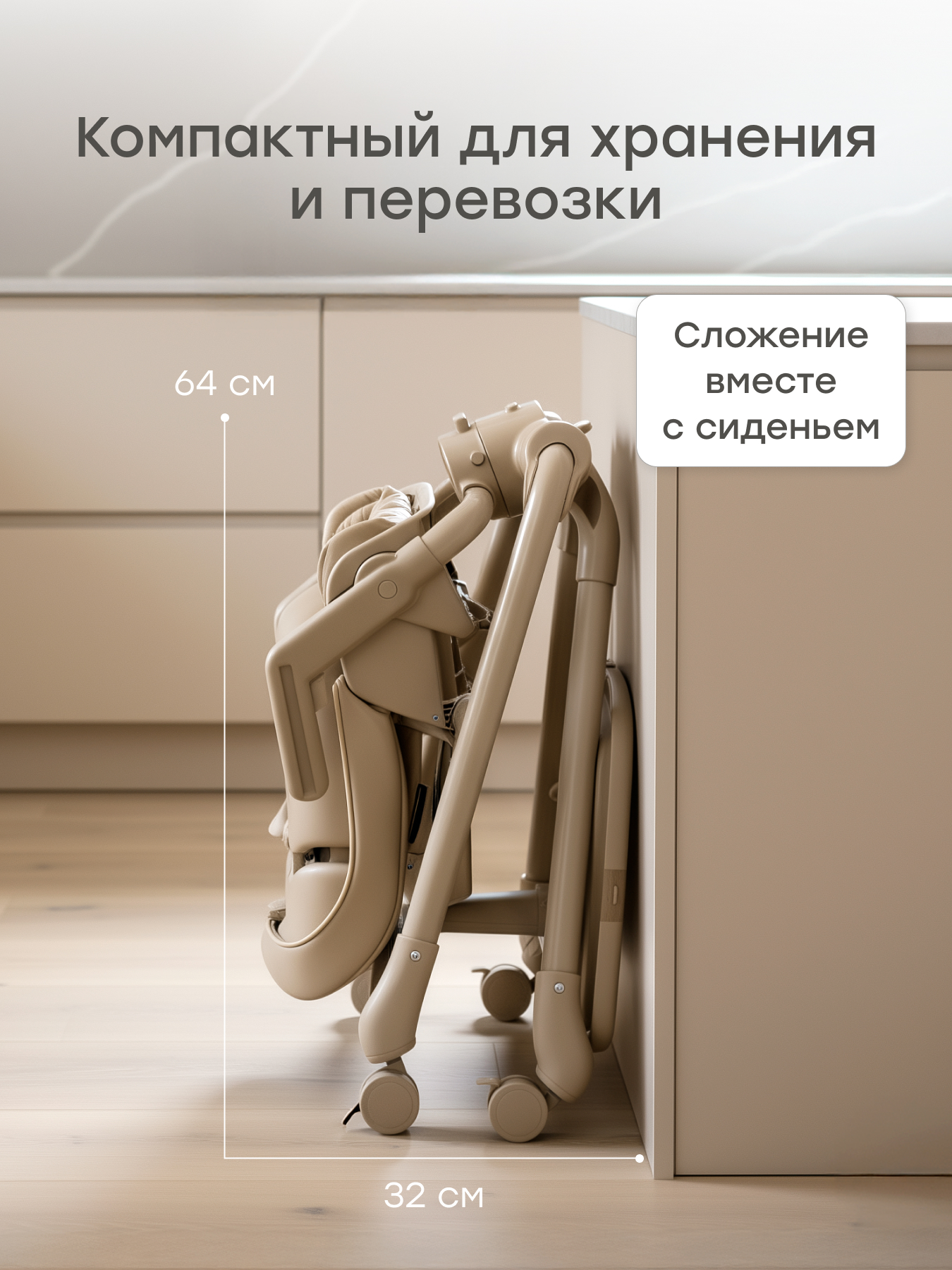 • Компактность и мобильность – стул для кормления легко складывается, экономя место в доме