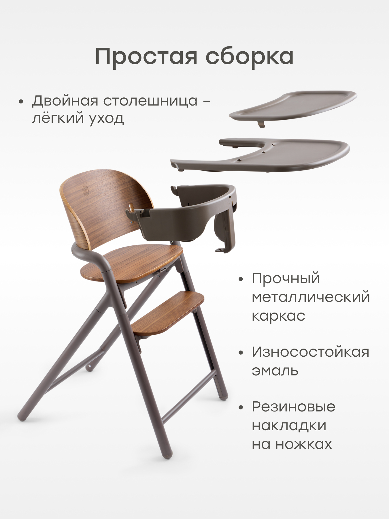 • Съемные столешница и поднос – просты в уходе и позволяют сажать ребенка за общий стол