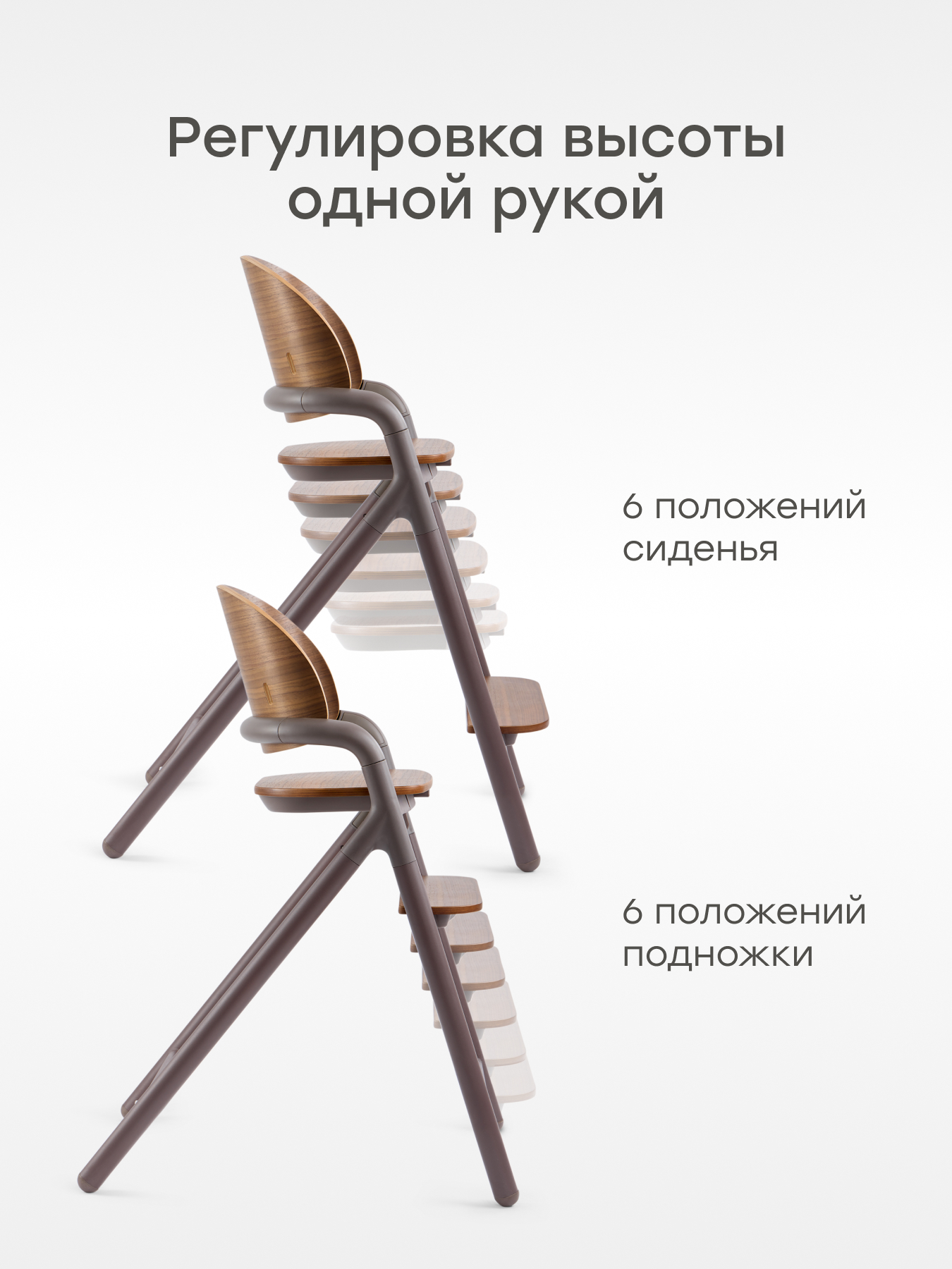 • 6 уровней высоты сиденья – позволяют выбрать комфортное положение для кормления, игр и отдыха