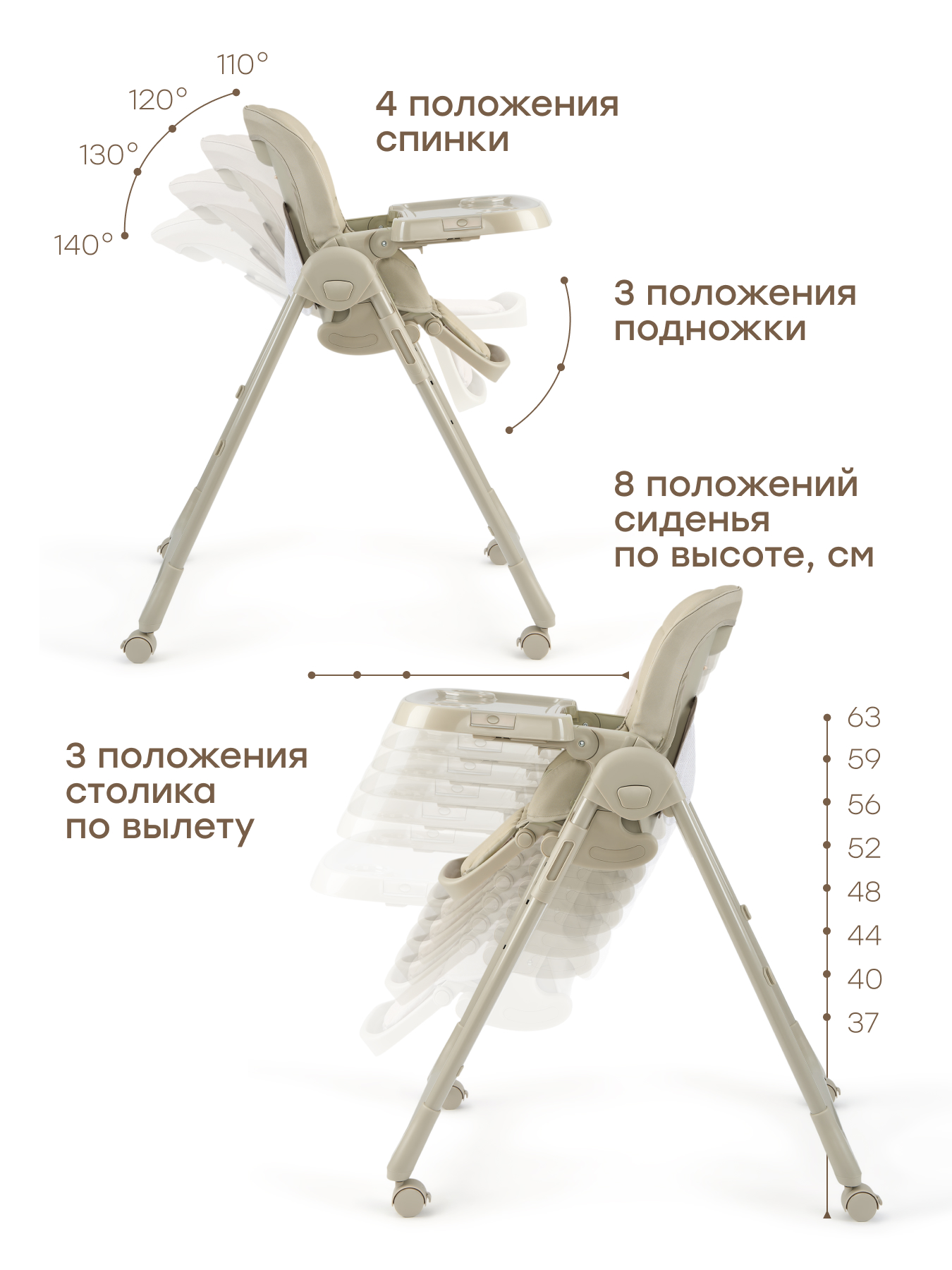 Стульчик для кормления WILLIAM PRO – это стильный внешний вид и супер-характеристики. Подходит для самых маленьких – спинка из вертикального положения раскладывается в горизонтальное. Всего у спинки и подножки – 3 угла наклона. У съёмной столешницы 3 положения по длине – еда будет падать на накладной поднос, а не на одежду ребёнка. Столешница оснащена складной подставкой для планшета – стульчик удобно использовать не только для еды, но и для занятий и развлечения. Съёмный поднос можно мыть в посудомоечной машине. WILLIAM PRO максимально мобилен – все 4 колеса поворотные и снабжены тормозами. Легко складывается, компактен при хранении.