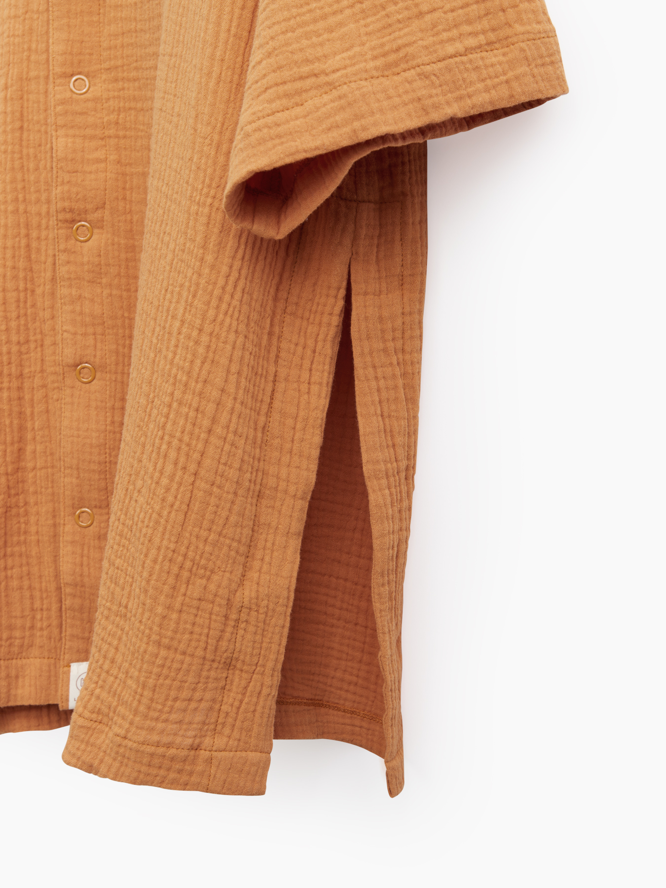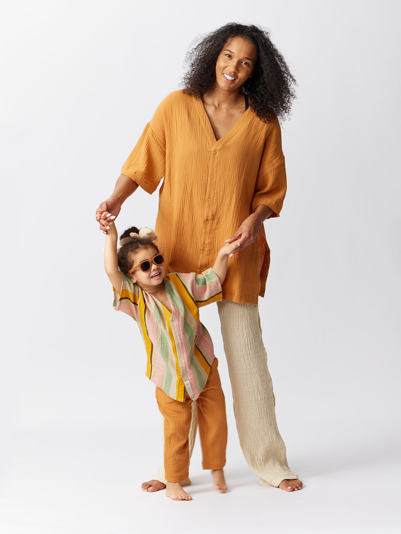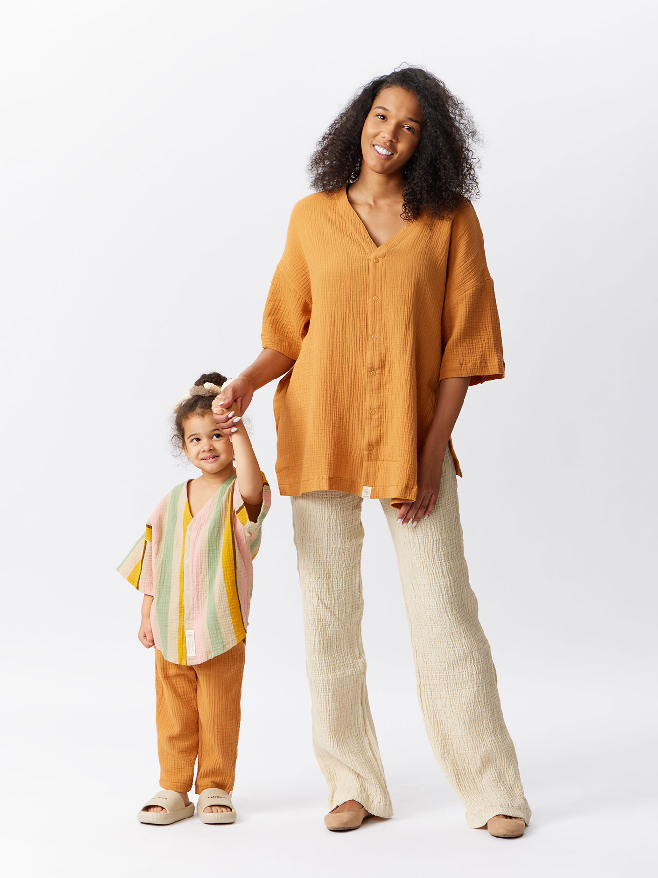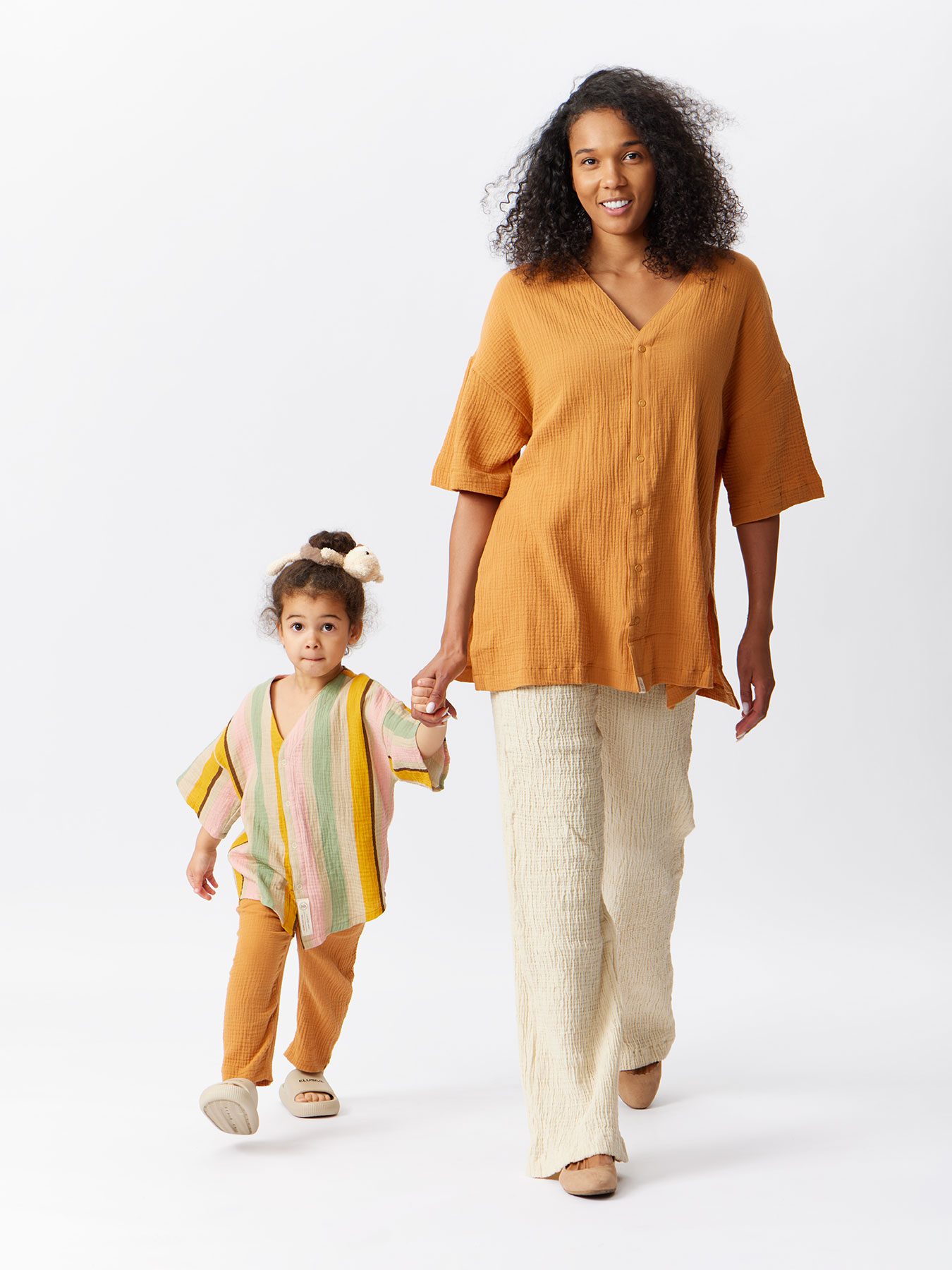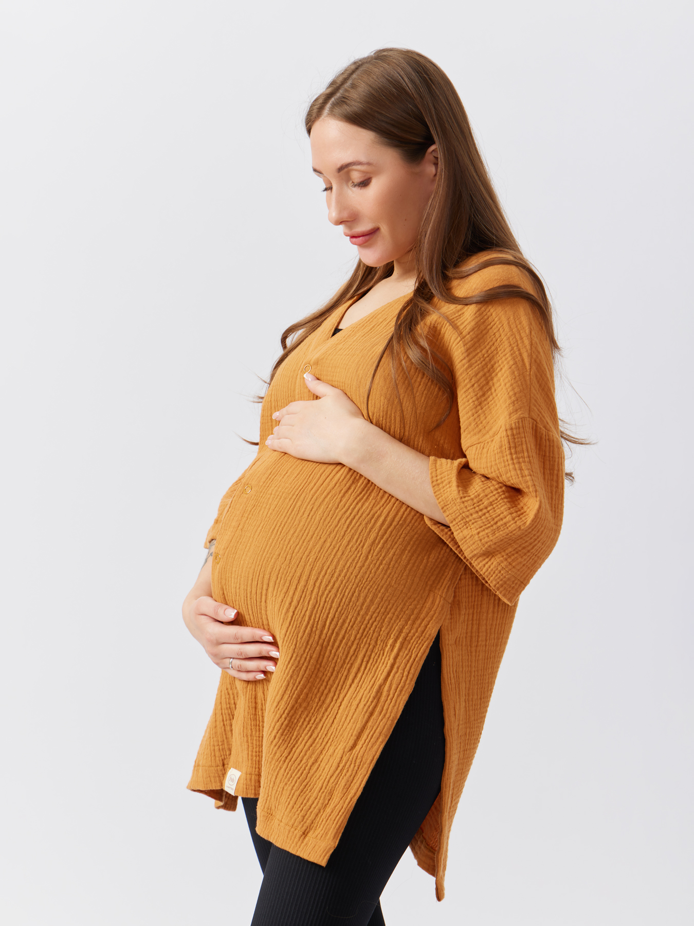 Стильная рубашка станет основой трендовых образов во время беременности и после родов. Благодаря актуальному крою оверсайз и разрезам по бокам изделие подойдет мамам с разным типом фигуры и на всех сроках ожидания малыша. Вещь из 100% хлопка подарит комфорт женщине и ребёнку. Модель «кимоно» пригодится в городе, в офисе, на пляже, как верхний слой на футболку или майку, а также может использоваться как халат. Рубашка отлично сочетается с легинсами, шортами, брюками, юбками, купальниками. Благодаря лаконичному дизайну и классическим цветам изделие легко вписать в гардероб.