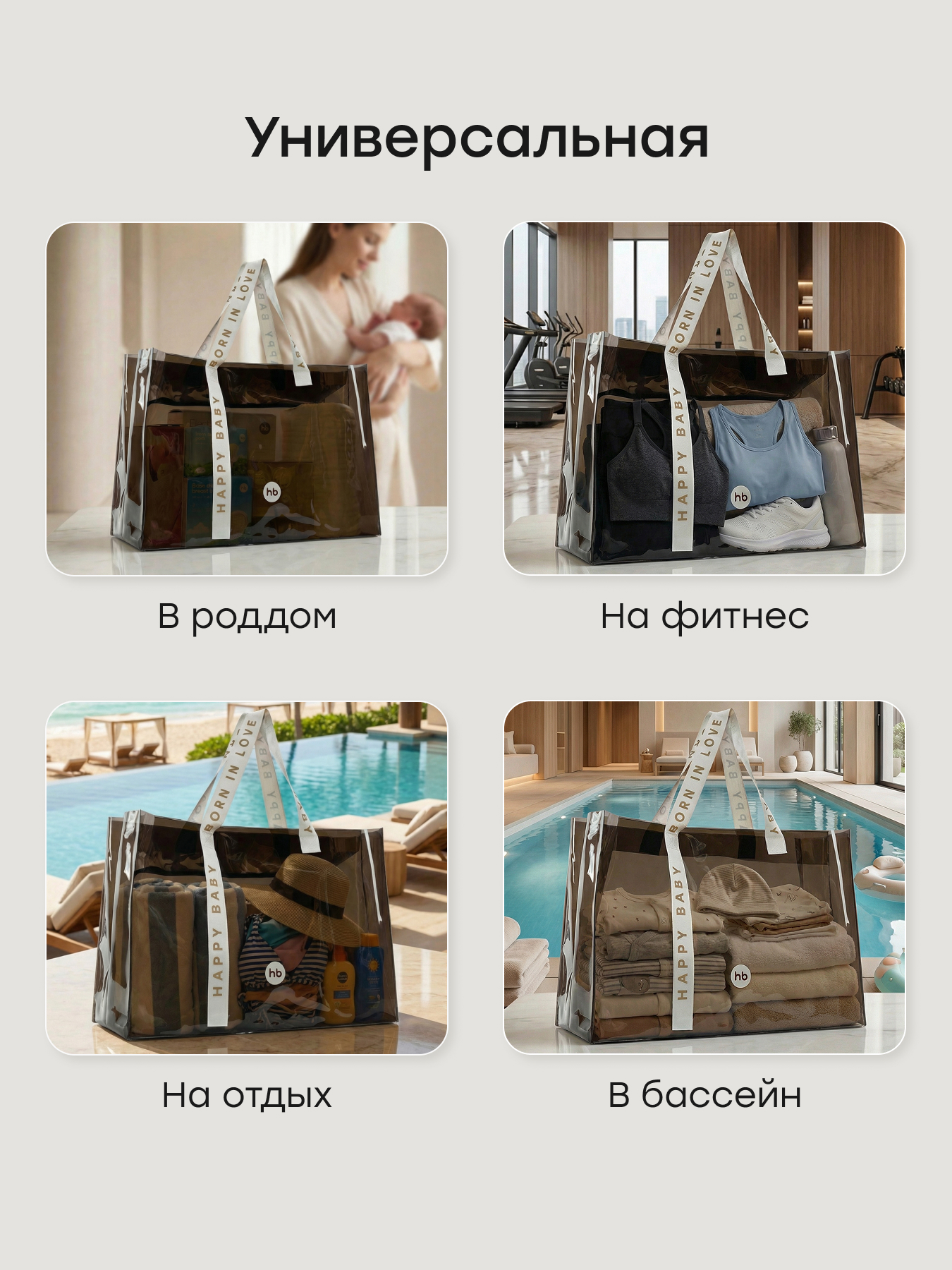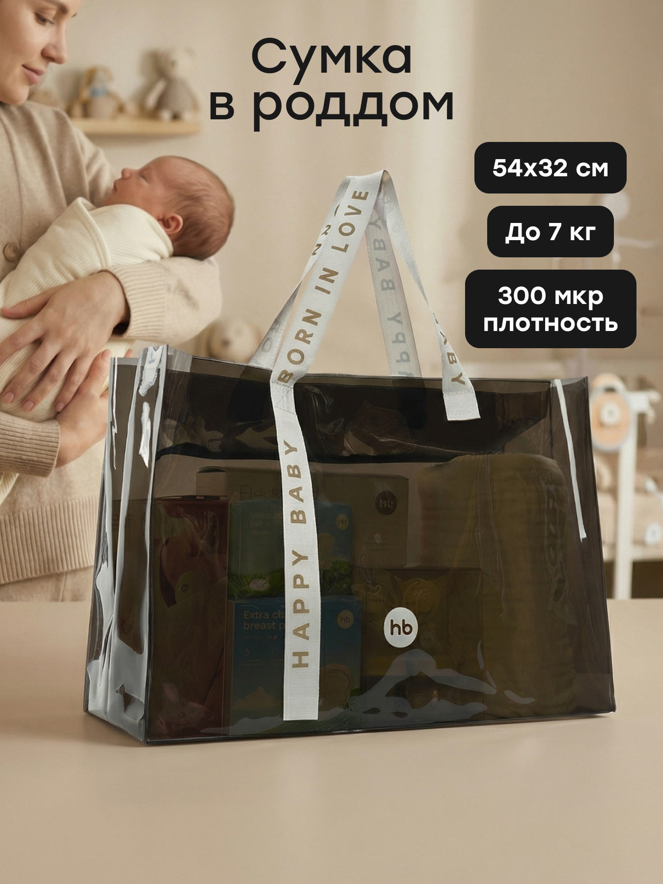 Сумка в роддом прозрачная — это стильное и практичное решение для мам. Сумка для мамы и ребенка размером 54х20х32 см и объемом 35 литров вмещает все необходимое. Прочный материал и продуманная форма обеспечивают долгий срок службы. Женская сумка для беременных избавляет от хлопот при сборах в самый ответственный момент, помогая быстро найти нужные вещи. Универсальная сумка станет отличным помощником для мам, подарком на выписку и подойдет для повседневных прогулок или шопинга.