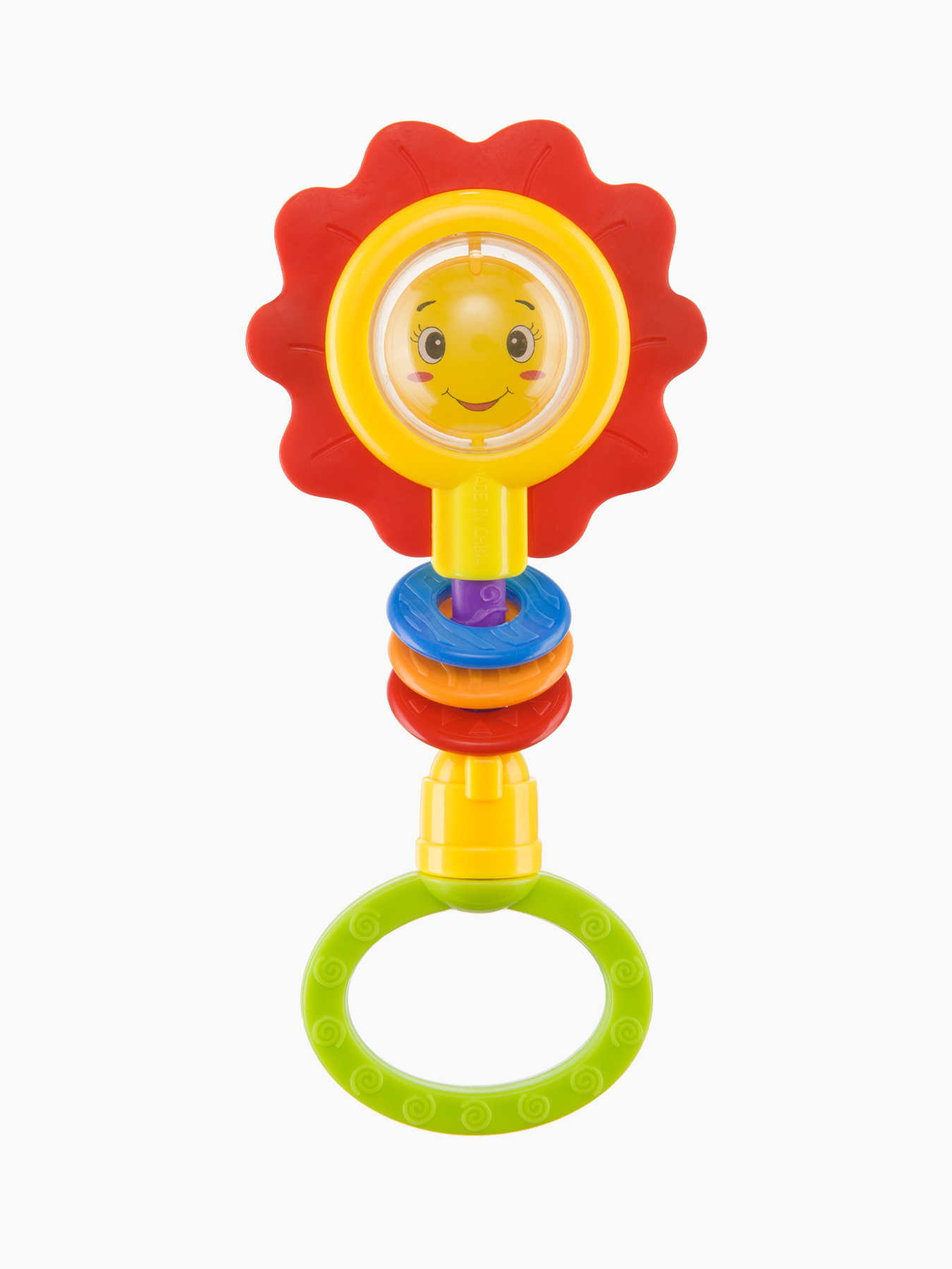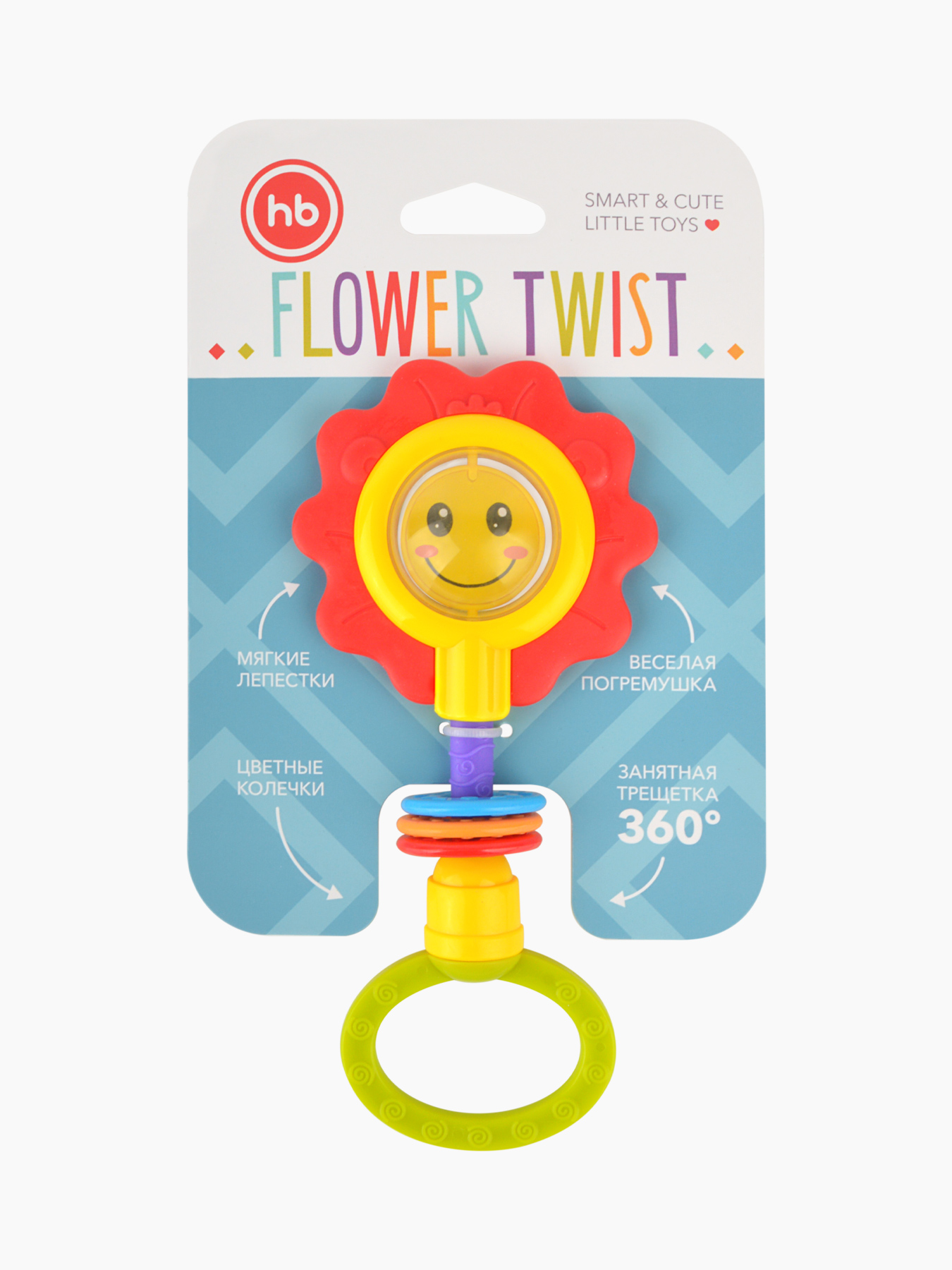 Погремушка FLOWER TWIST – это прекрасный подарок ребёнку с самого раннего возраста. Погремушка в виде милого цветочка с улыбающейся мордашкой не оставит равнодушным Вашего малыша. Цветочек представляет собой обрамлённую яркими рифлёными лепестками прозрачную серединку-шарик с изображением дружелюбного личика внутри. Весёлая мордашка привлечёт внимание малыша и вызовет положительные эмоции. Так и хочется улыбнуться цветочку в ответ! Внутри шарика перекатываются бусинки, которые создают шумовой эффект и привлекают внимание к игрушке. Яркие лепесточки сделаны из мягкого безопасного материала, малыш будет их покусывать в период прорезывания зубов: прорезыватель массирует дёсны и снимает болевые ощущения.