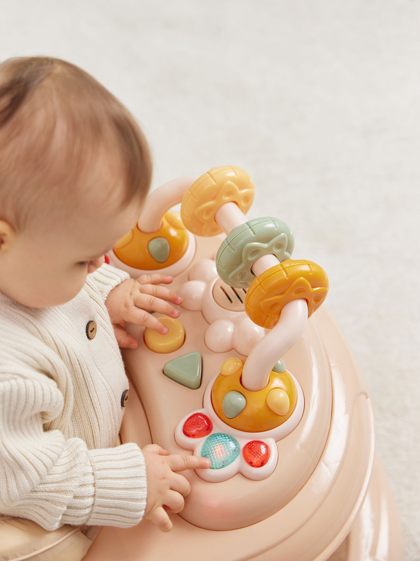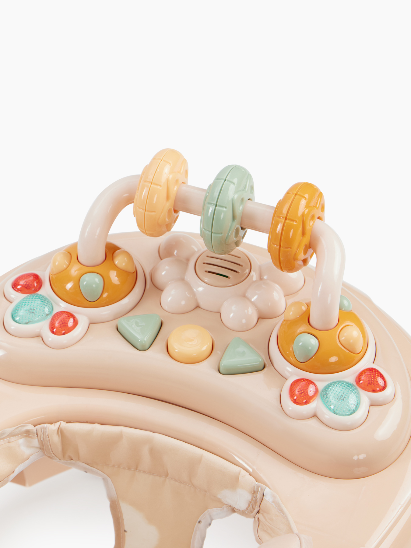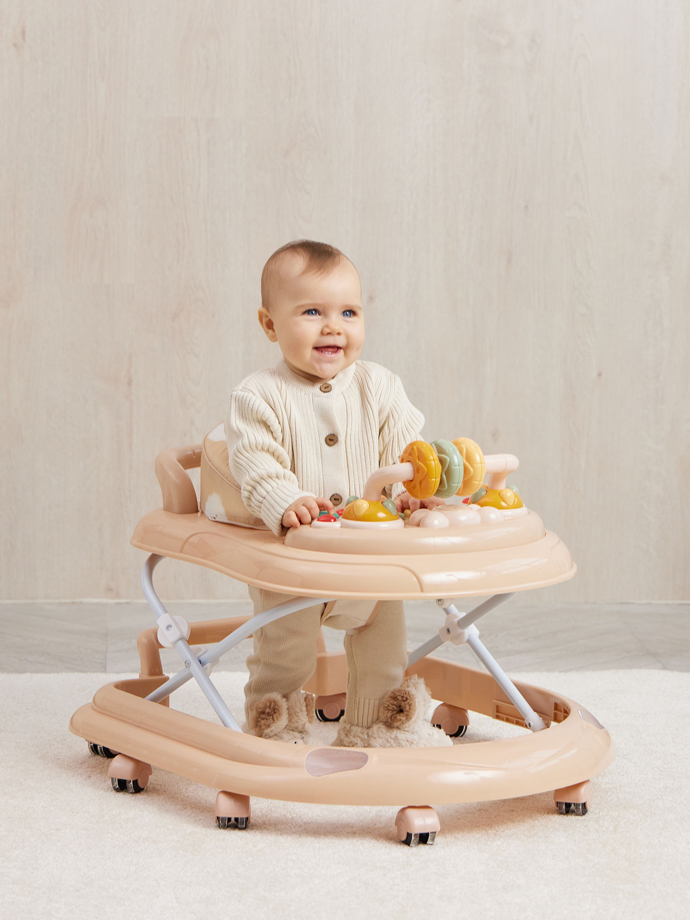 Артикул: smiley v2 Кол-во в наборе: 1 Цвет: бежевый Возраст: 7м+ Состав: каркас: металл с элементами из пластмассы; тканые материалы: 100% полиэстер; колеса: силикон