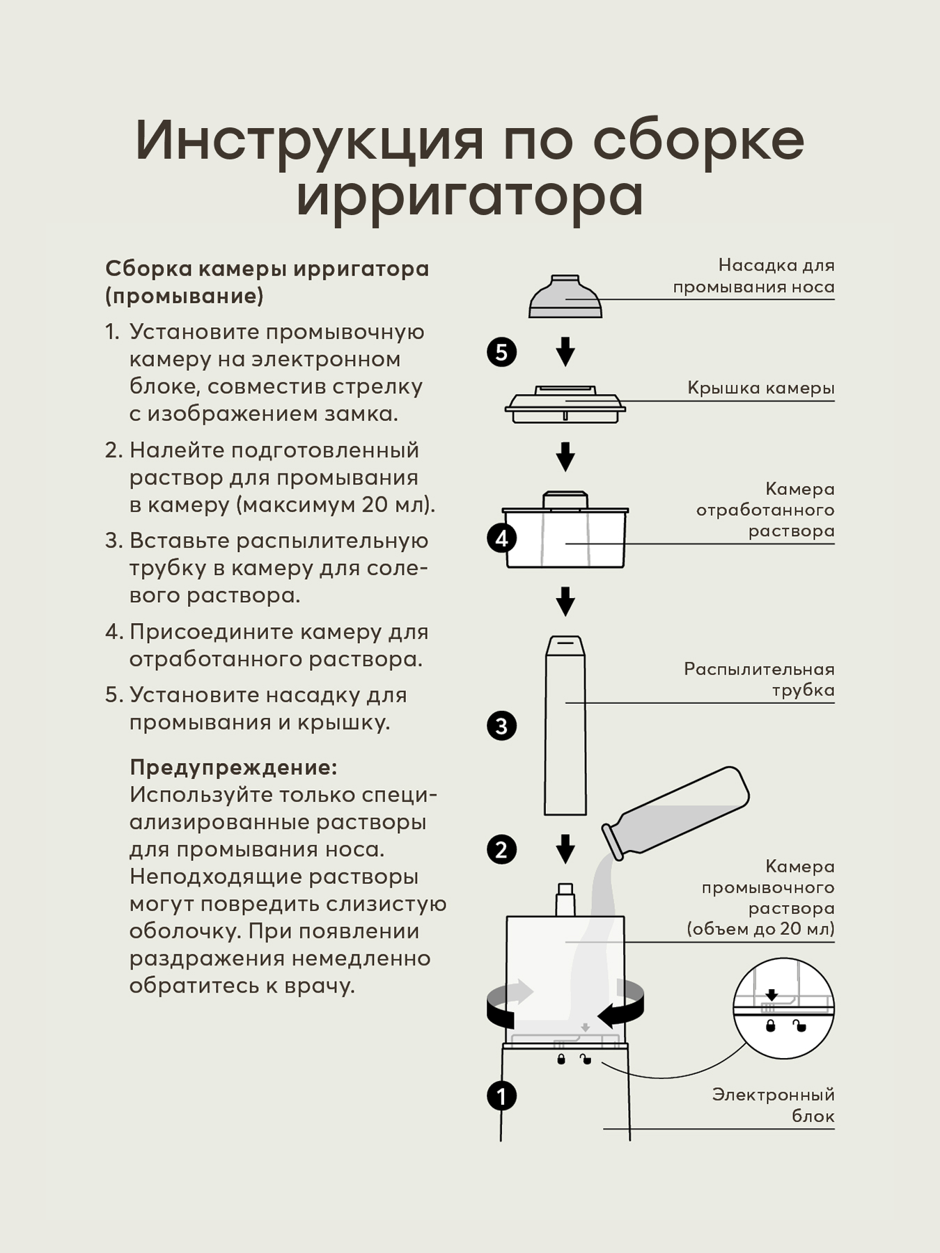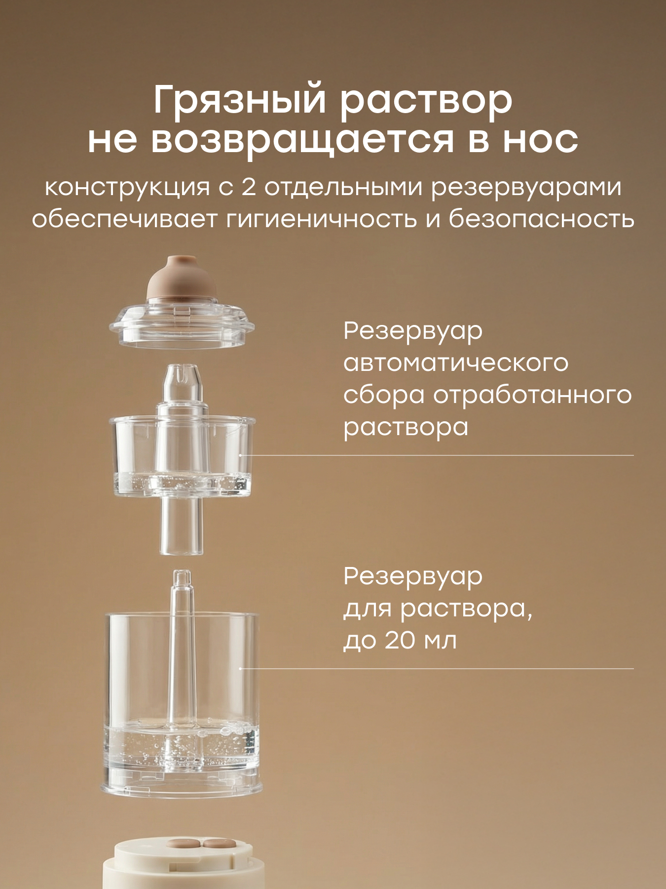 • Простота и удобство — все детали назального ирригатора легко разбираются и моются, обеспечивая чистоту прибора после каждого использования, а низкий уровень шума не потревожит и не напугает малыша при процедурах