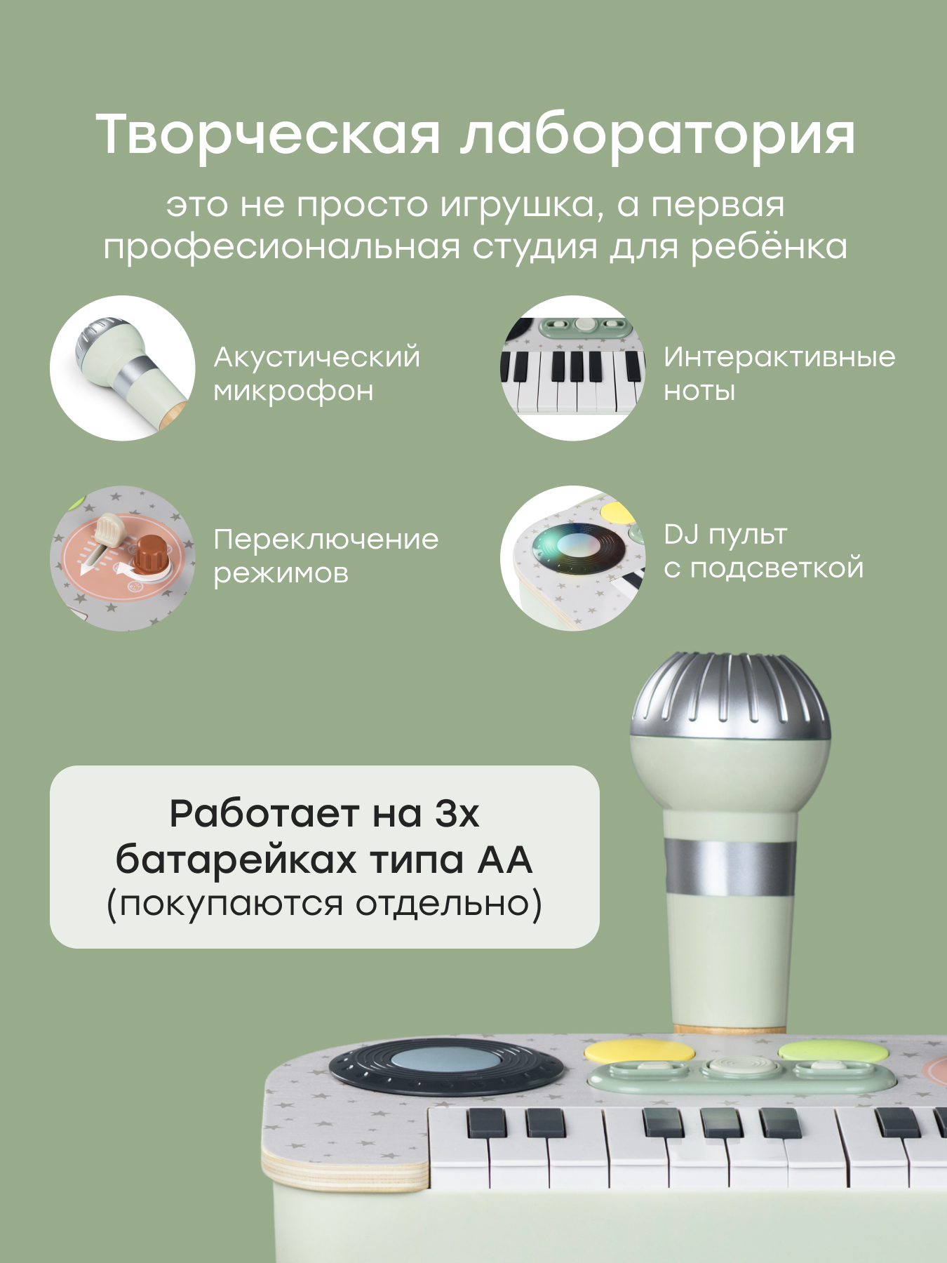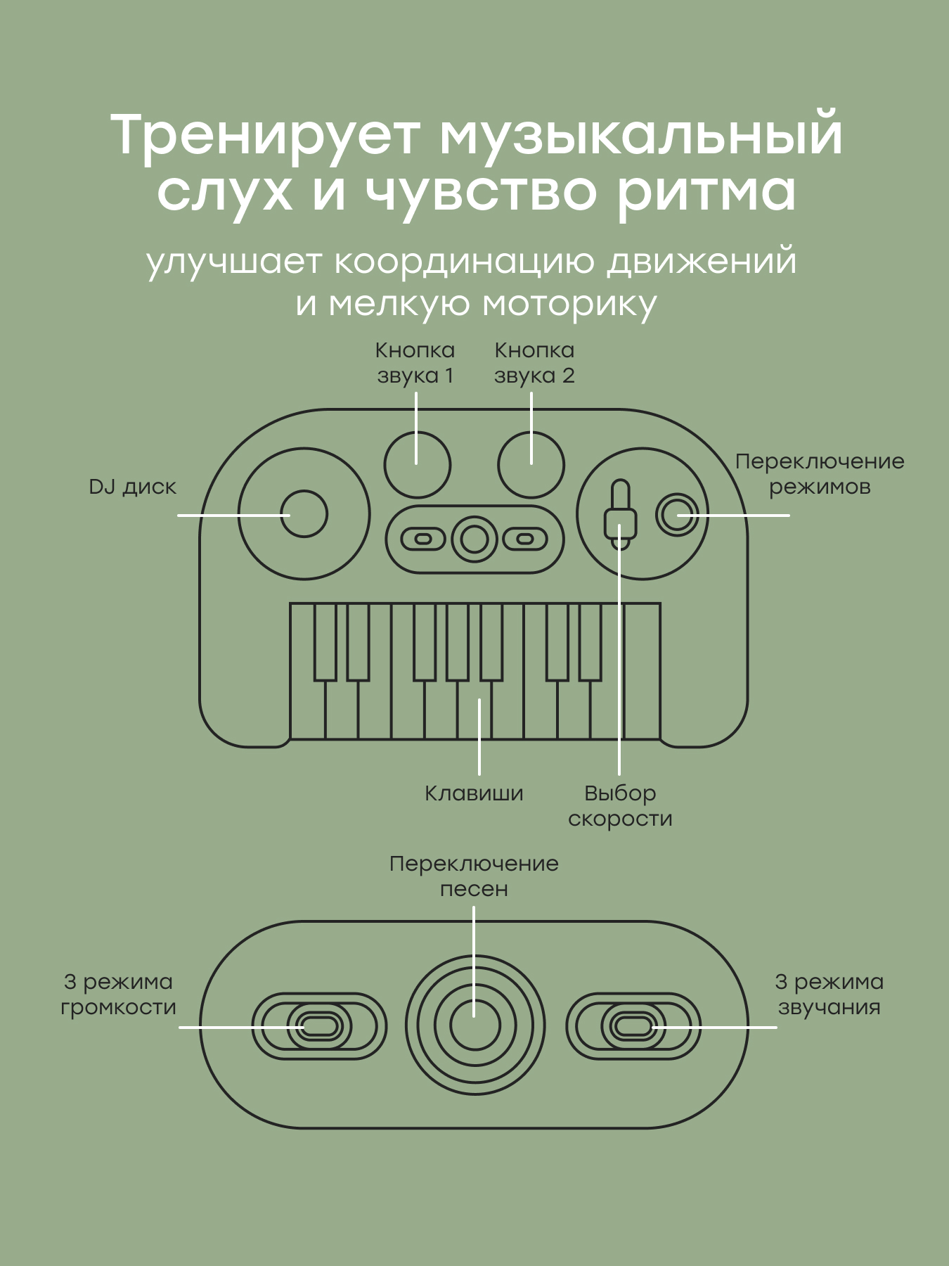 • Музыкальный функционал – синтезатор детский сочетает простые DJ-элементы, микрофон детский и светомузыку, позволяя ребёнку пробовать себя в роли музыканта, певца и диджея