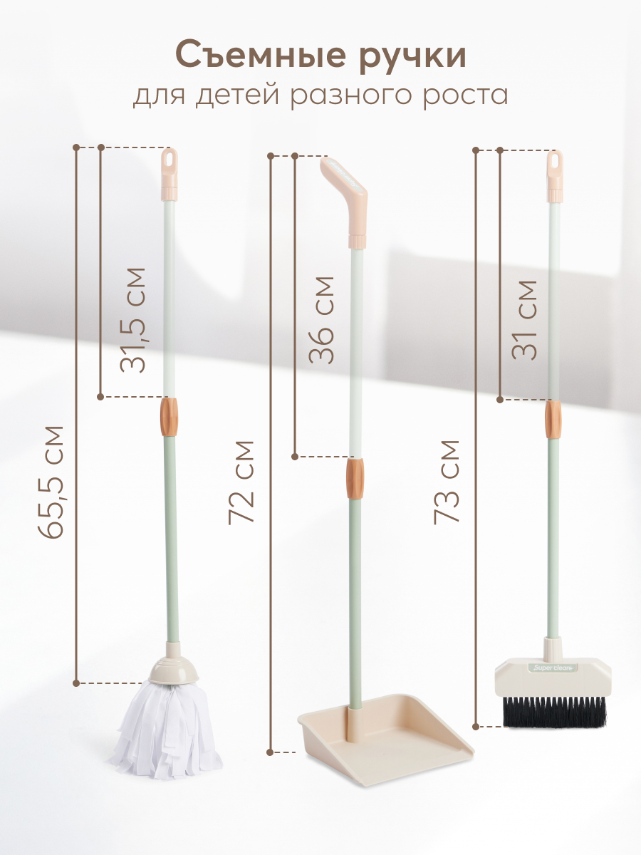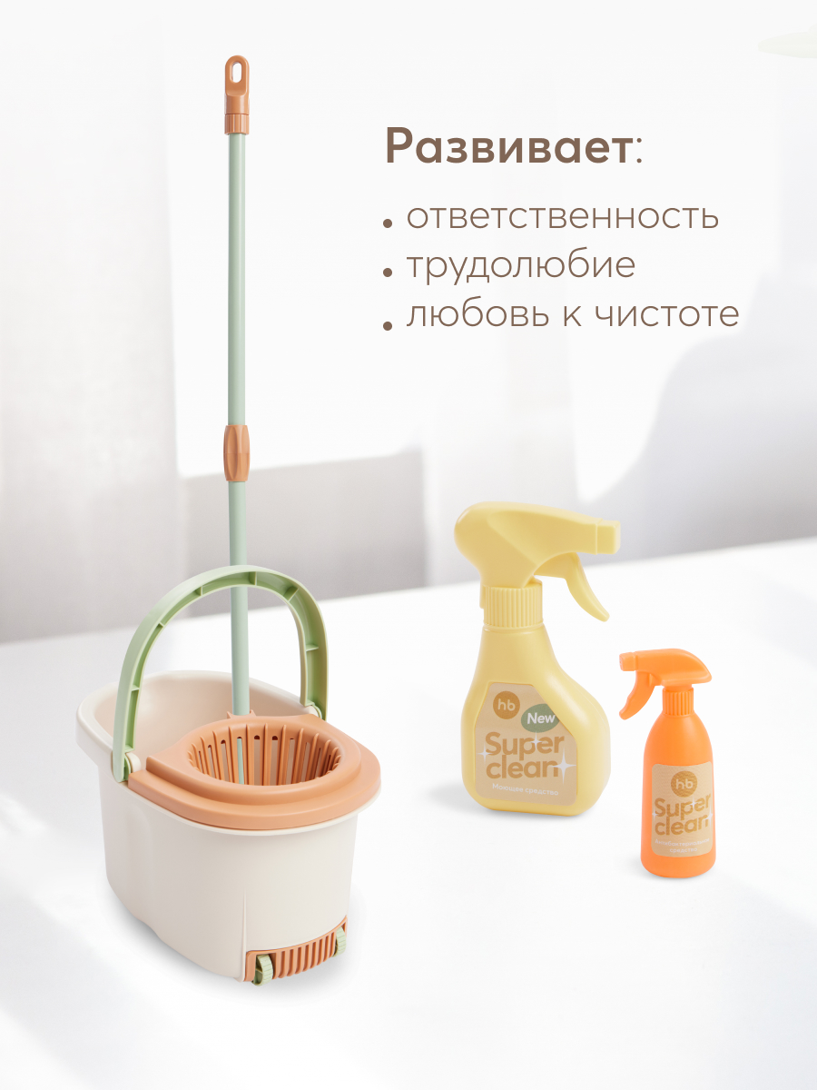 Помощники будут в восторге. Набор для уборки совсем, как настоящий, только компактного размера – специально для самых маленьких. В комплекте ведро, швабра, веник, тряпка из микрофибры, распылитель, губка и перчатки – всё, что нужно для полноценной уборки помещения. Мамы смогут быстрее и спокойнее выполнять домашние дела вместе с малышом – теперь у него тоже есть занятие во время уборки. Дети любят игры с водой – они успокаивают, помогают изучать свойства природных материалов. Набор поможет развить ответственность и самостоятельность, привить любовь к чистоте, ответственность за порядок в своей комнате.