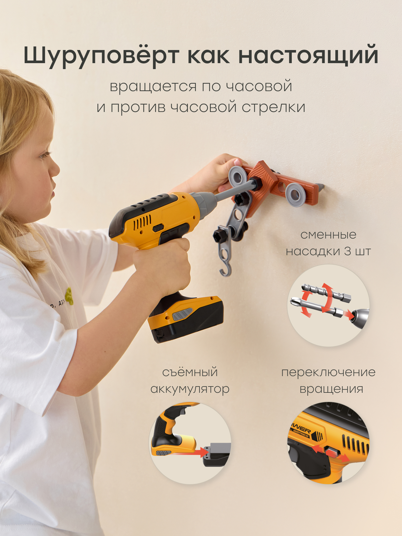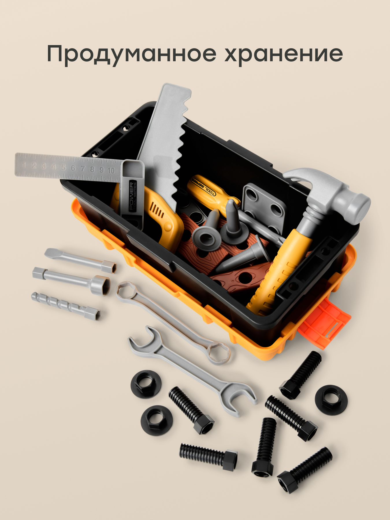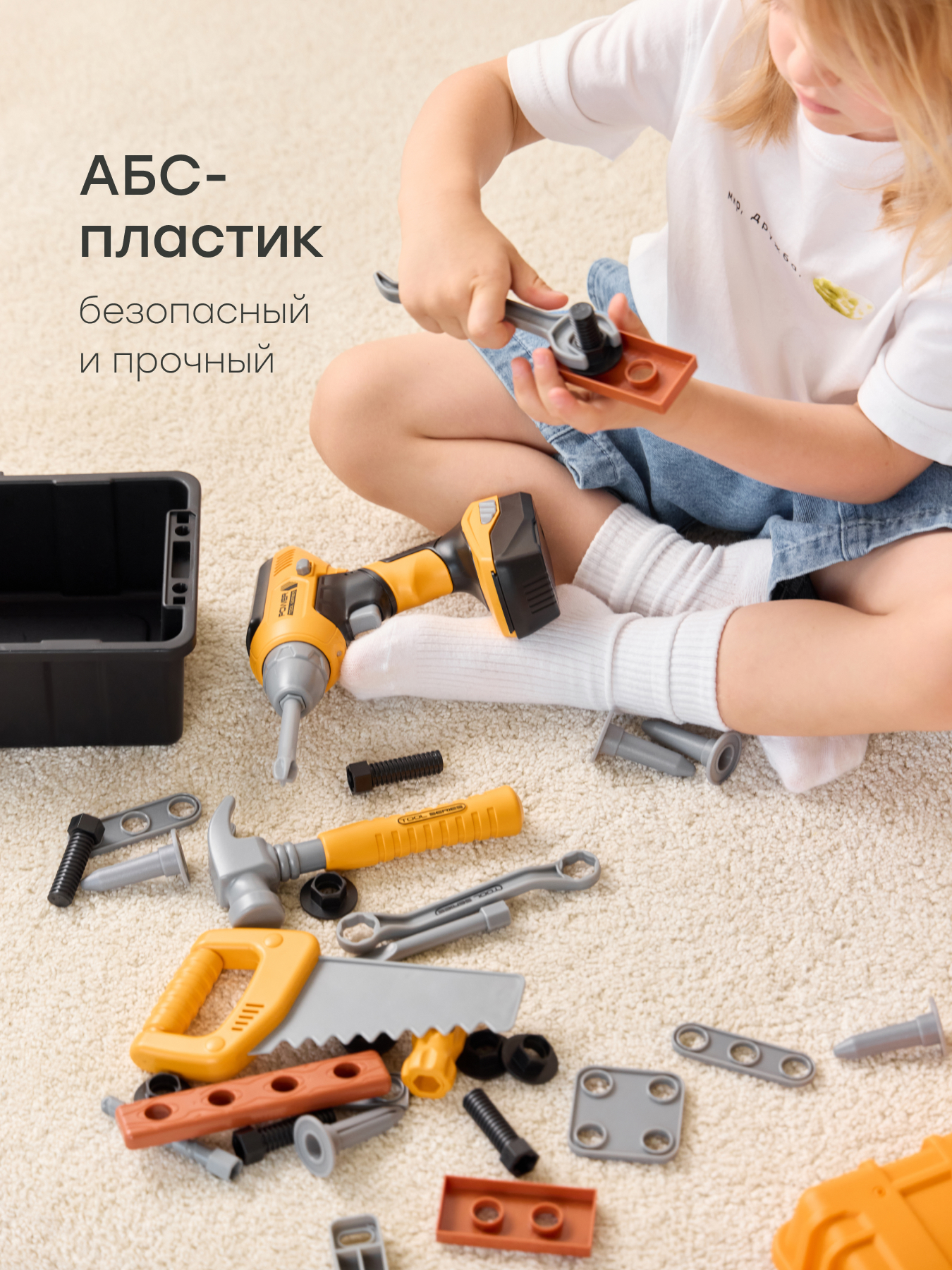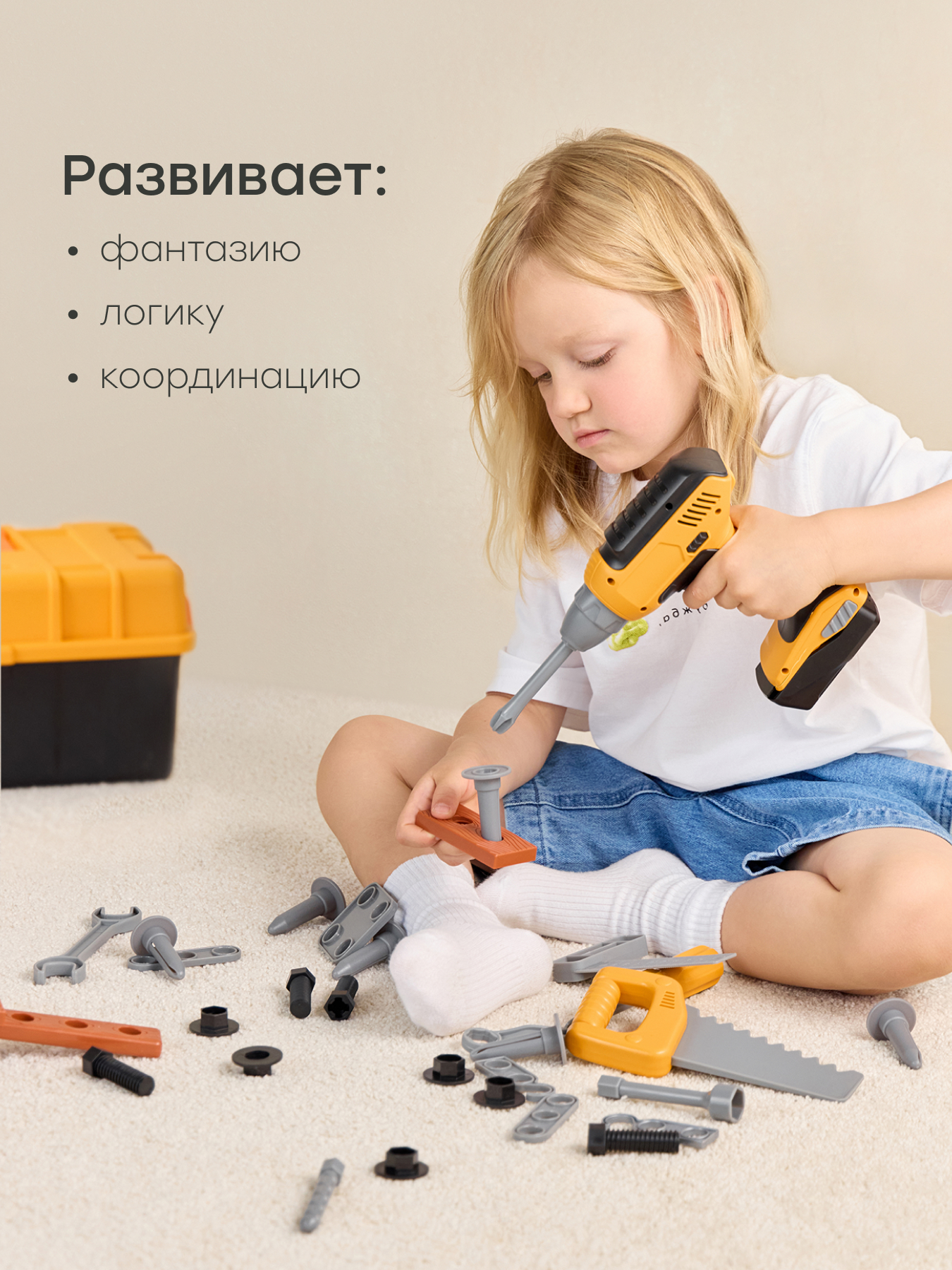 Набор инструментов детский от бренда Happy Baby "Happy Toolkit" — идеальный подарок для мальчика, который с удовольствием откроет для себя мир творчества и веселья. Этот набор строителя создан с реалистичным дизайном, который не только привлекает внимание, но и помогает освоить первые навыки работы с инструментами. Игры с таким набором развивают логику, улучшают координацию движений и стимулируют фантазию, превращая простое времяпрепровождение в полезное обучение. Увлекательные игры с игрушечными инструментами способствуют развитию образного мышления и самостоятельности. Такой игровой набор станет отличным выбором для детей, ведь он не просто развлекает, а развивает необходимые навыки и уверенность в своих силах с ранних лет. Качество каждого элемента — инструменты детские выполнены из безопасных материалов, которые выдержат активные игры и будут радовать вашего малыша долгое время. Набор инструментов станет не просто игрушкой, а первым помощником в развитии важных навыков. Развиваясь играючи, ваш ребенок получит настоящее удовольствие от игрового процесса, а также обретет важные умения!