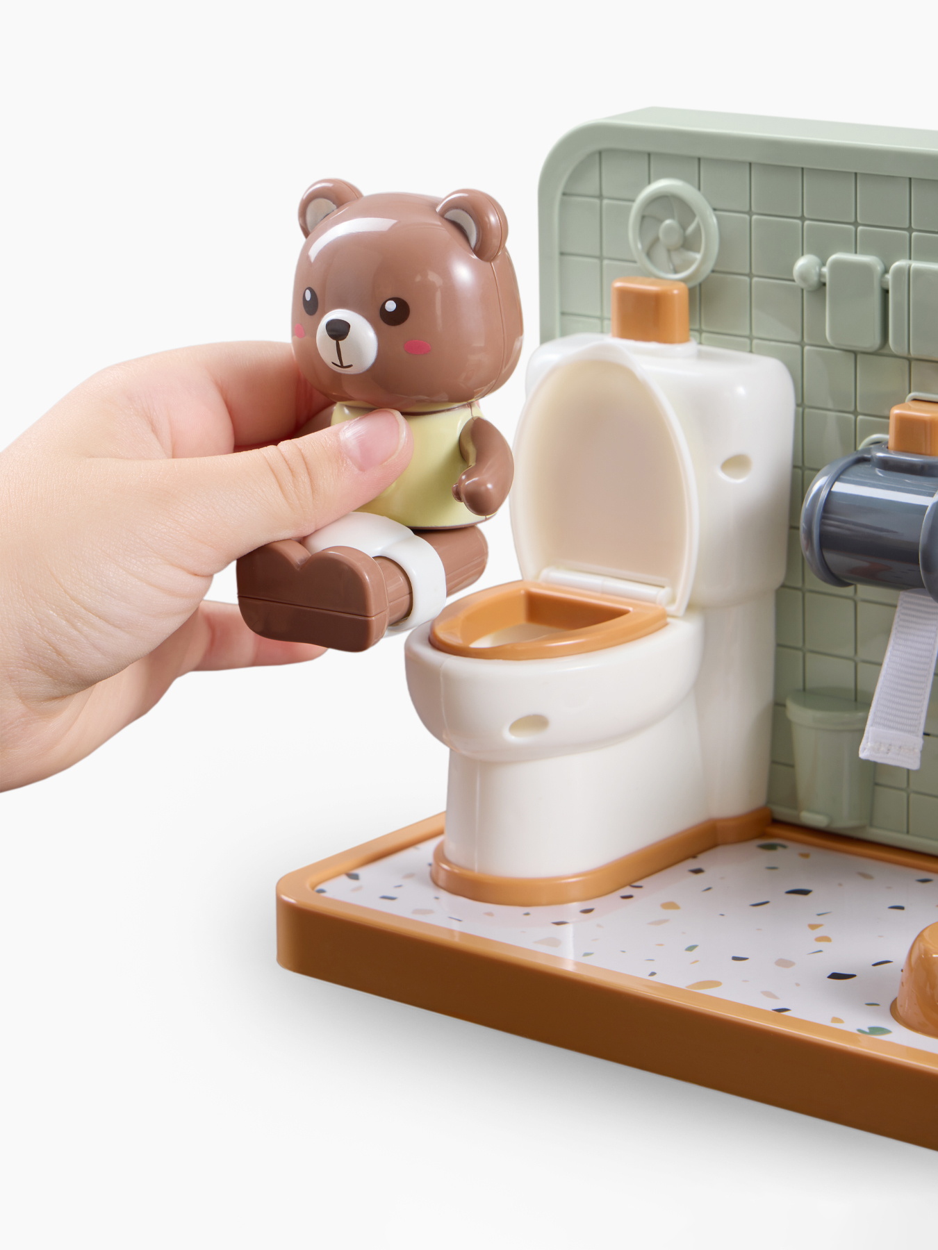 Игрушечный набор Happy Bathroom — это увлекательная и развивающая игра для мальчиков и девочек, которая научит ребёнка основам гигиены и самостоятельным походам в туалет. В процессе игры дети легко запомнят и усвоят правильный порядок всех необходимых действий после посещения туалета.