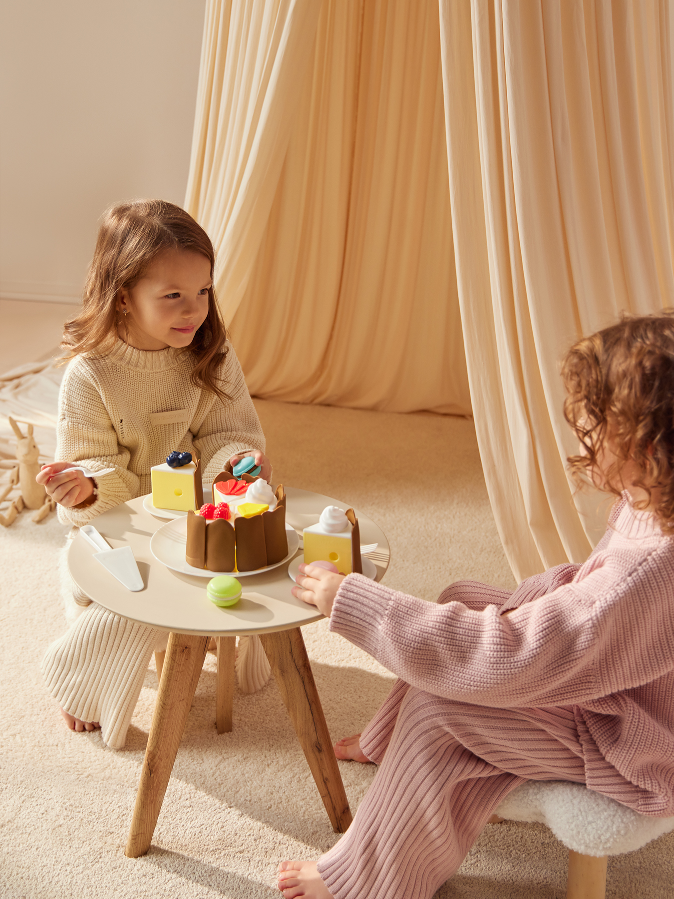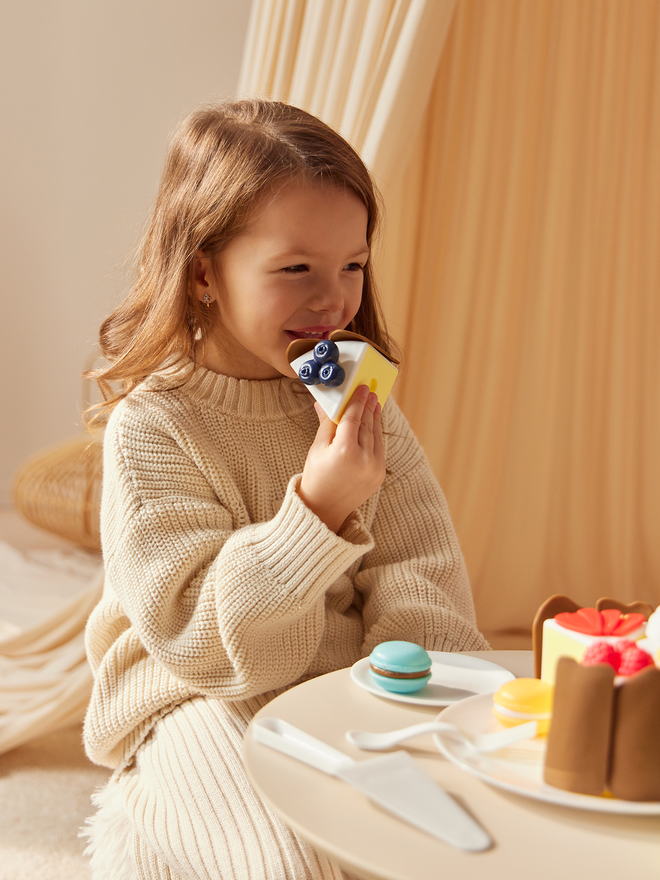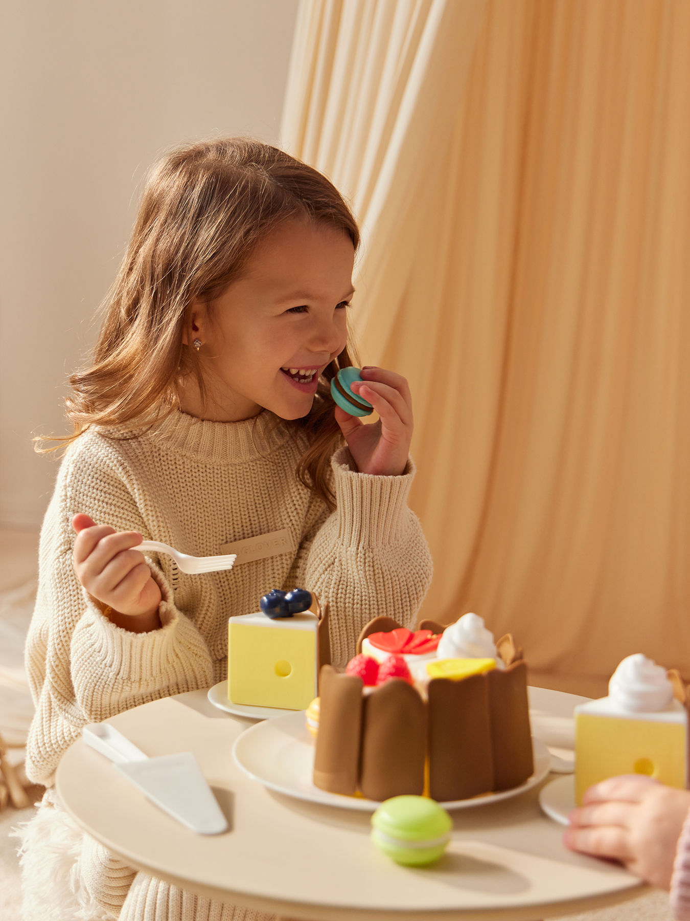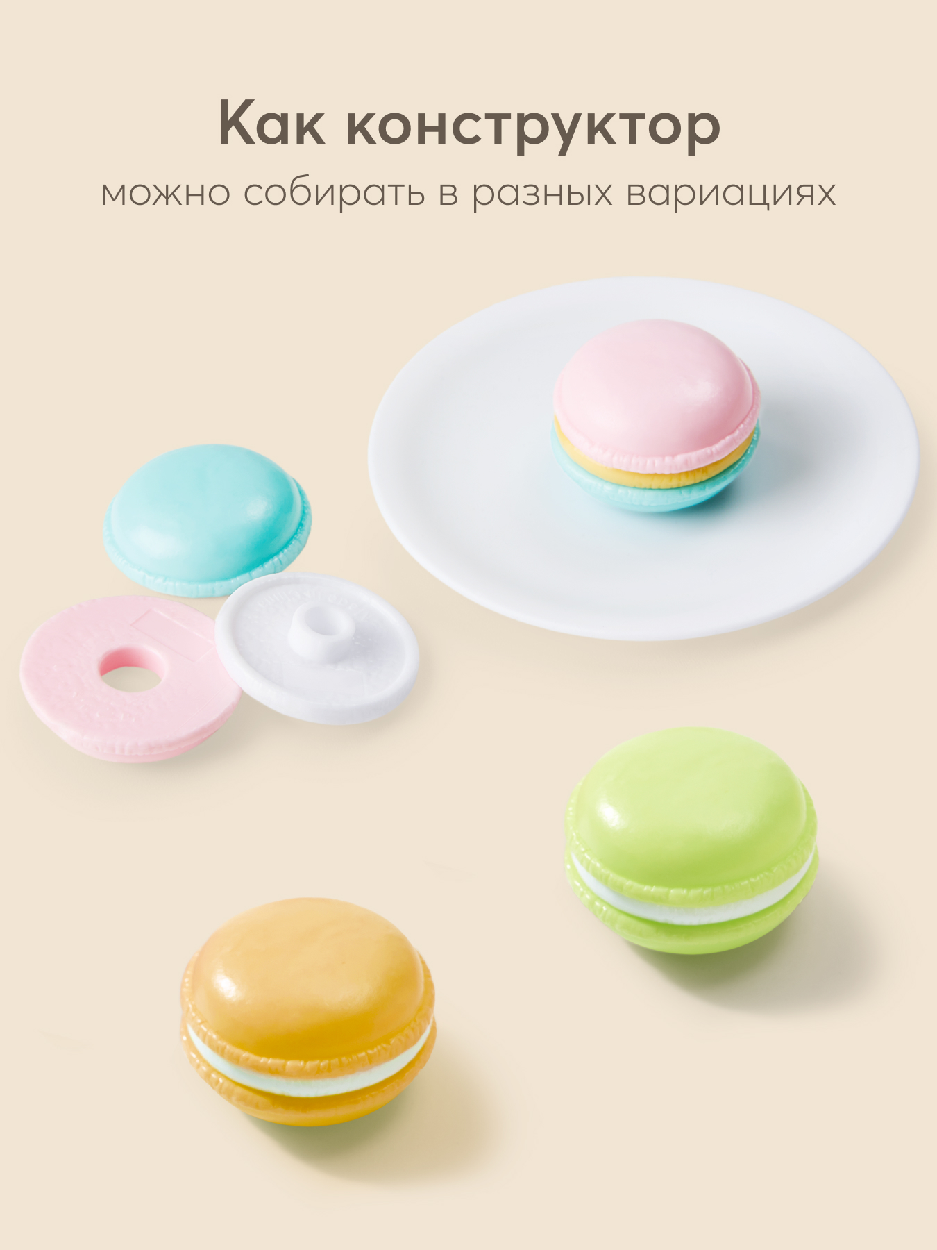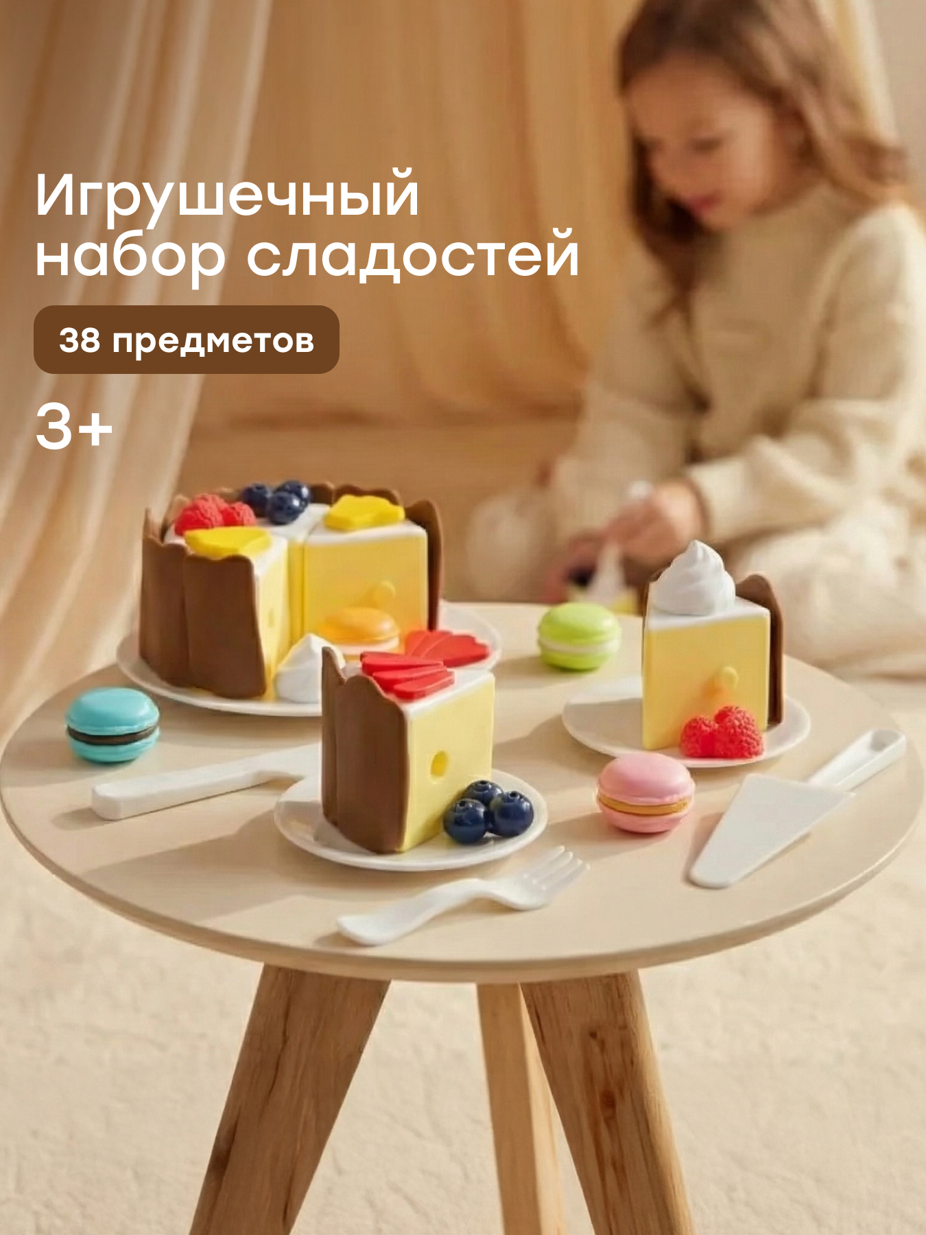 • Конструкция - каждый кусочек торта снабжен замочками для легкого объединения частей в единую композицию. Это не только удобно для игры, но и помогает развивать мелкую моторику рук