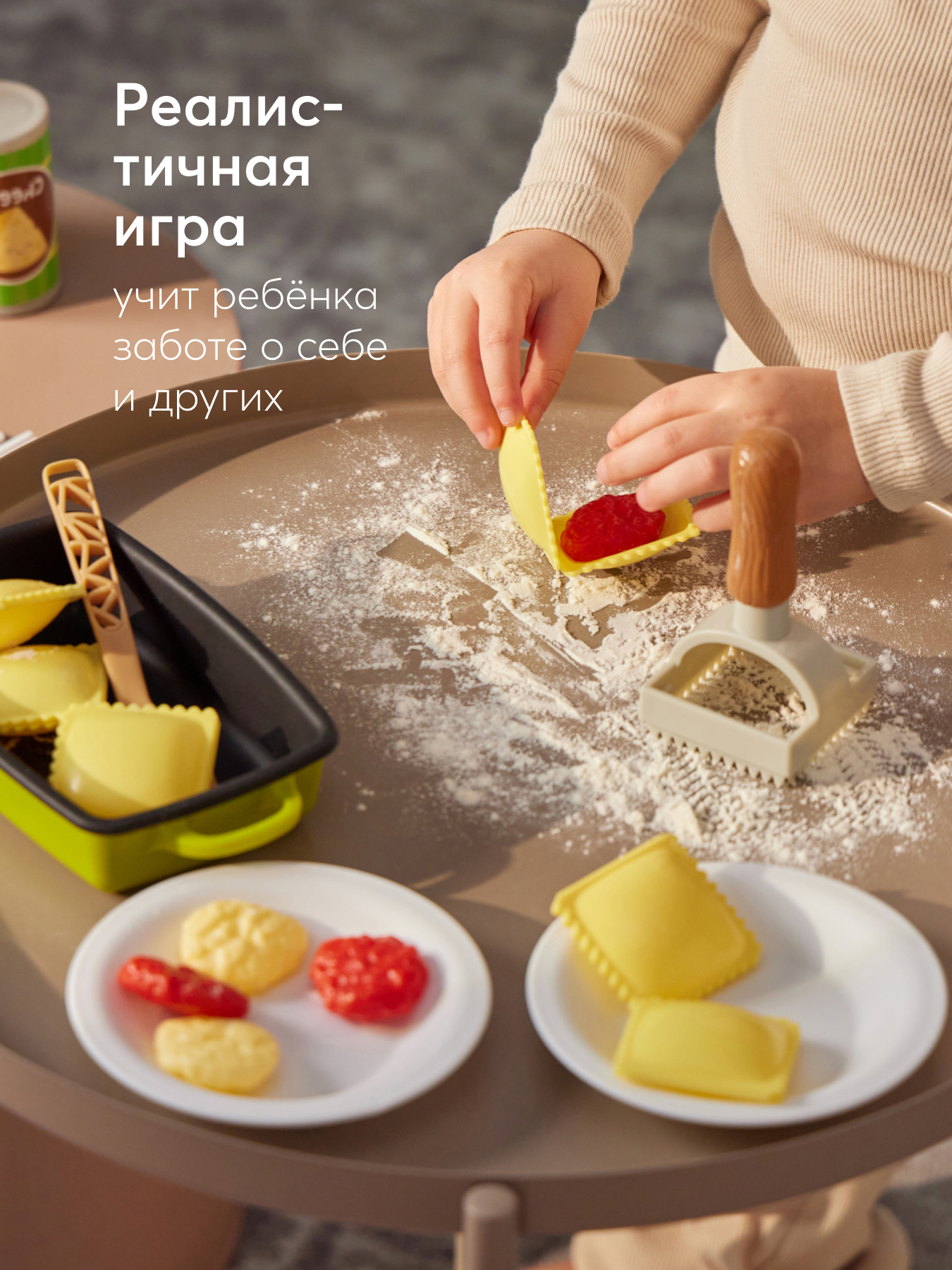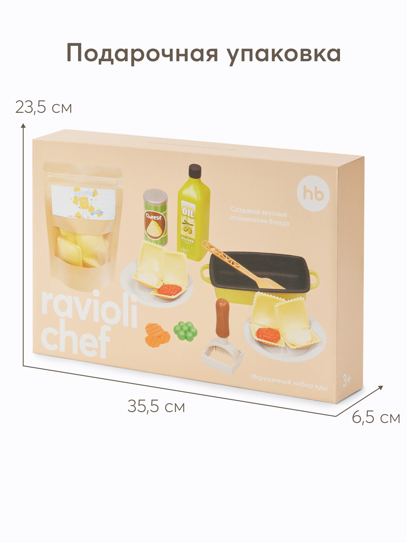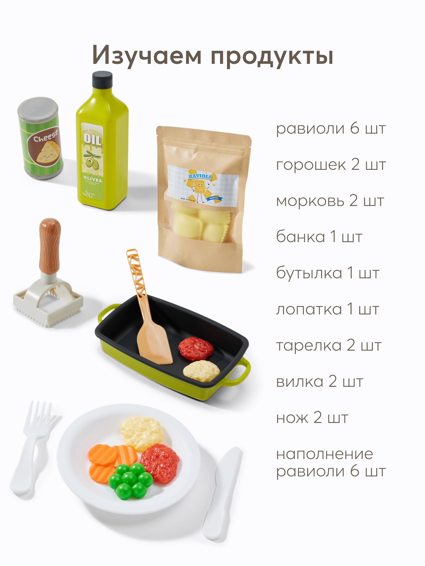 Игровой набор RAVIOLI CHEF — отличный способ познакомить ребёнка с кулинарией и подарить часы увлекательной игры. Набор включает всё необходимое для создания итальянских блюд: фигурки равиоли, бутылочку с оливковым маслом, баночку пармезана, кастрюлю с лопаткой, тарелки, овощи и форму для лепки равиоли. Ребёнок будет разыгрывать процесс готовки, сервировки и подачи еды, развивая мелкую моторику, логику и воображение. Набор поможет освоить основы приготовления пищи, воспитать ответственность и заботу о близких. Поставляется в красочной подарочной упаковке. Создавайте вкусные итальянские блюда вместе с ребёнком и дарите яркие эмоции!