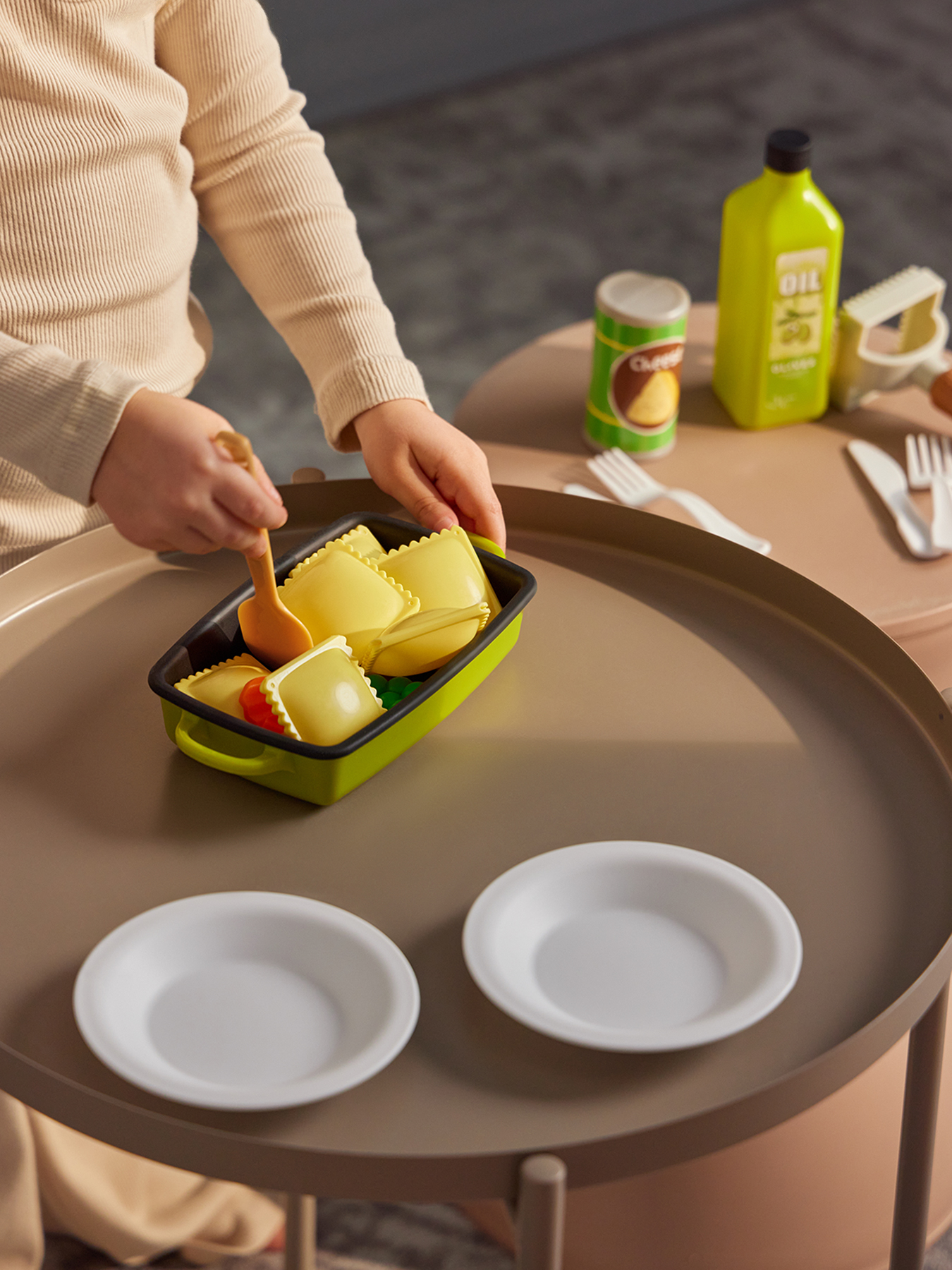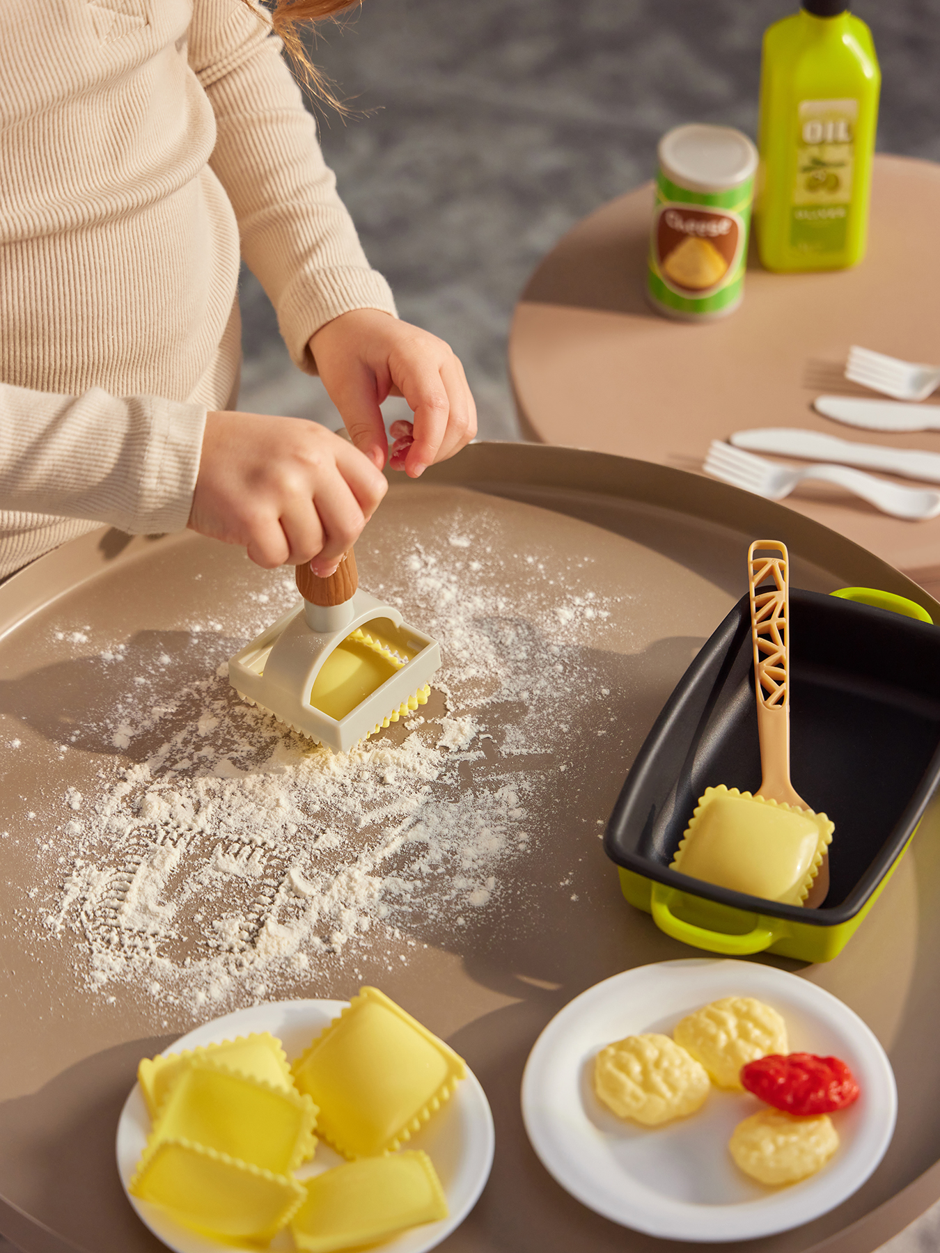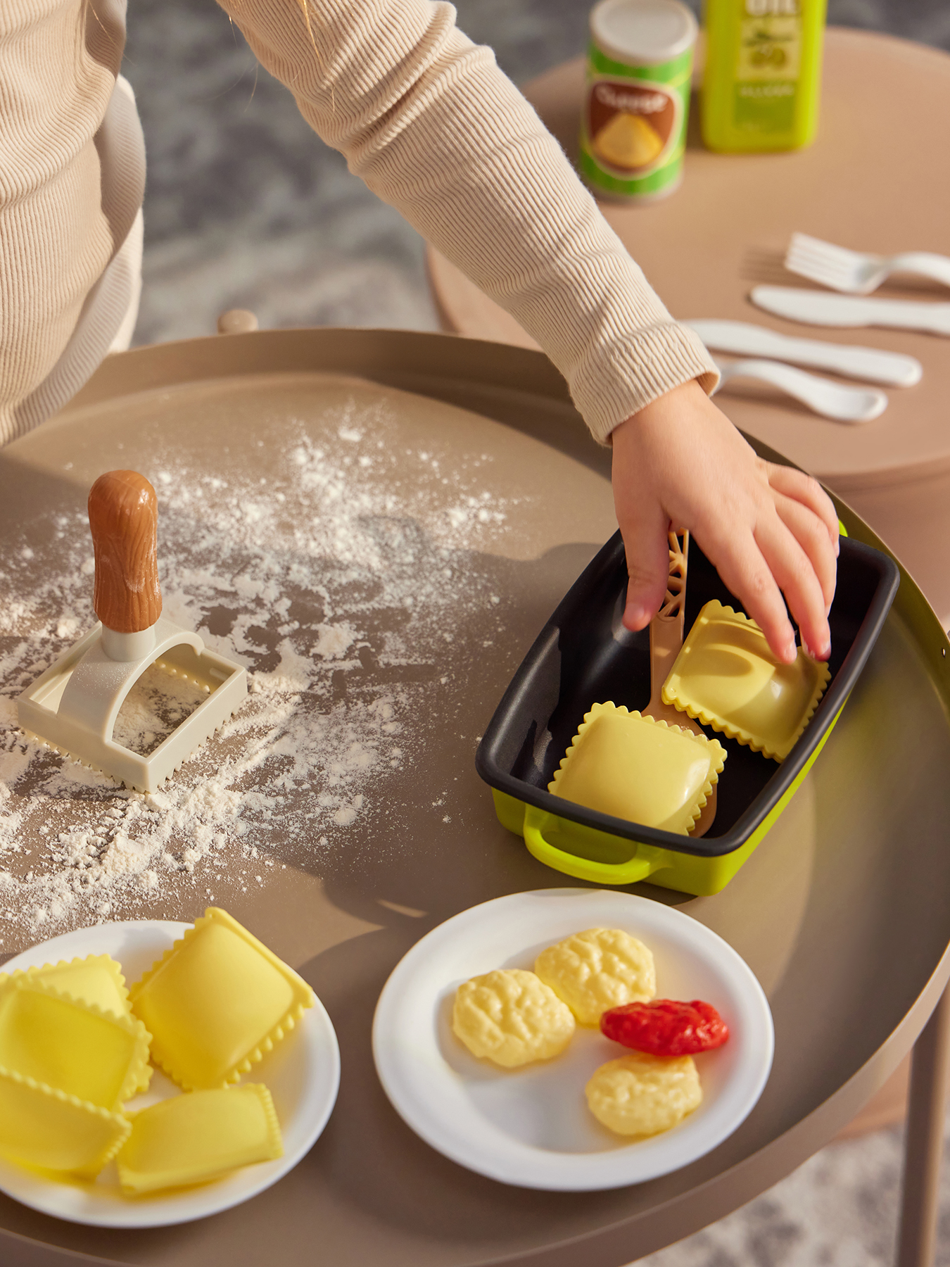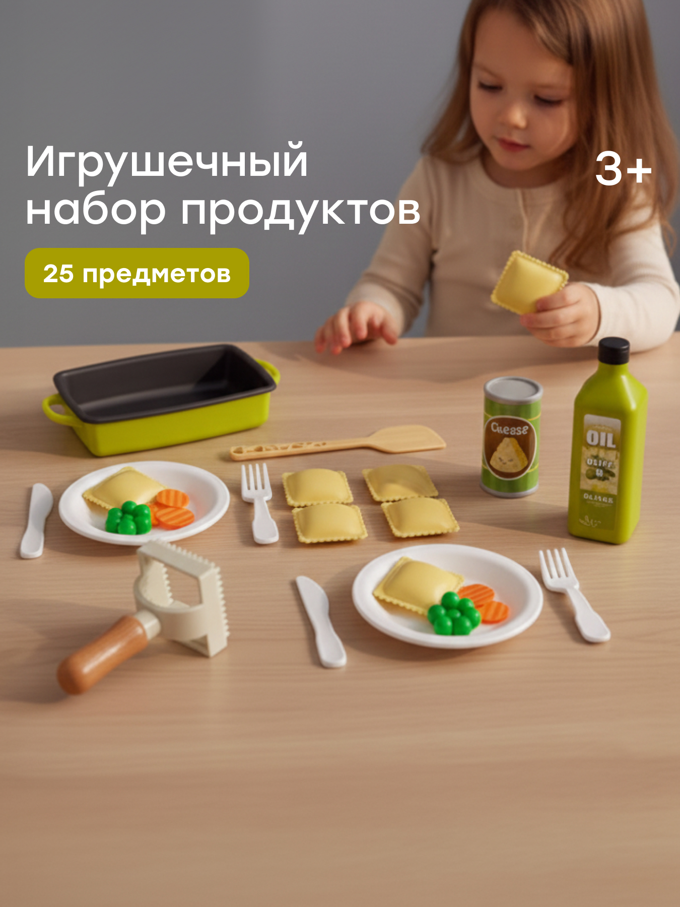 Игровой набор RAVIOLI CHEF — отличный способ познакомить ребёнка с кулинарией и подарить часы увлекательной игры. Набор включает всё необходимое для создания итальянских блюд: фигурки равиоли, бутылочку с оливковым маслом, баночку пармезана, кастрюлю с лопаткой, тарелки, овощи и форму для лепки равиоли. Ребёнок будет разыгрывать процесс готовки, сервировки и подачи еды, развивая мелкую моторику, логику и воображение. Набор поможет освоить основы приготовления пищи, воспитать ответственность и заботу о близких. Поставляется в красочной подарочной упаковке. Создавайте вкусные итальянские блюда вместе с ребёнком и дарите яркие эмоции!