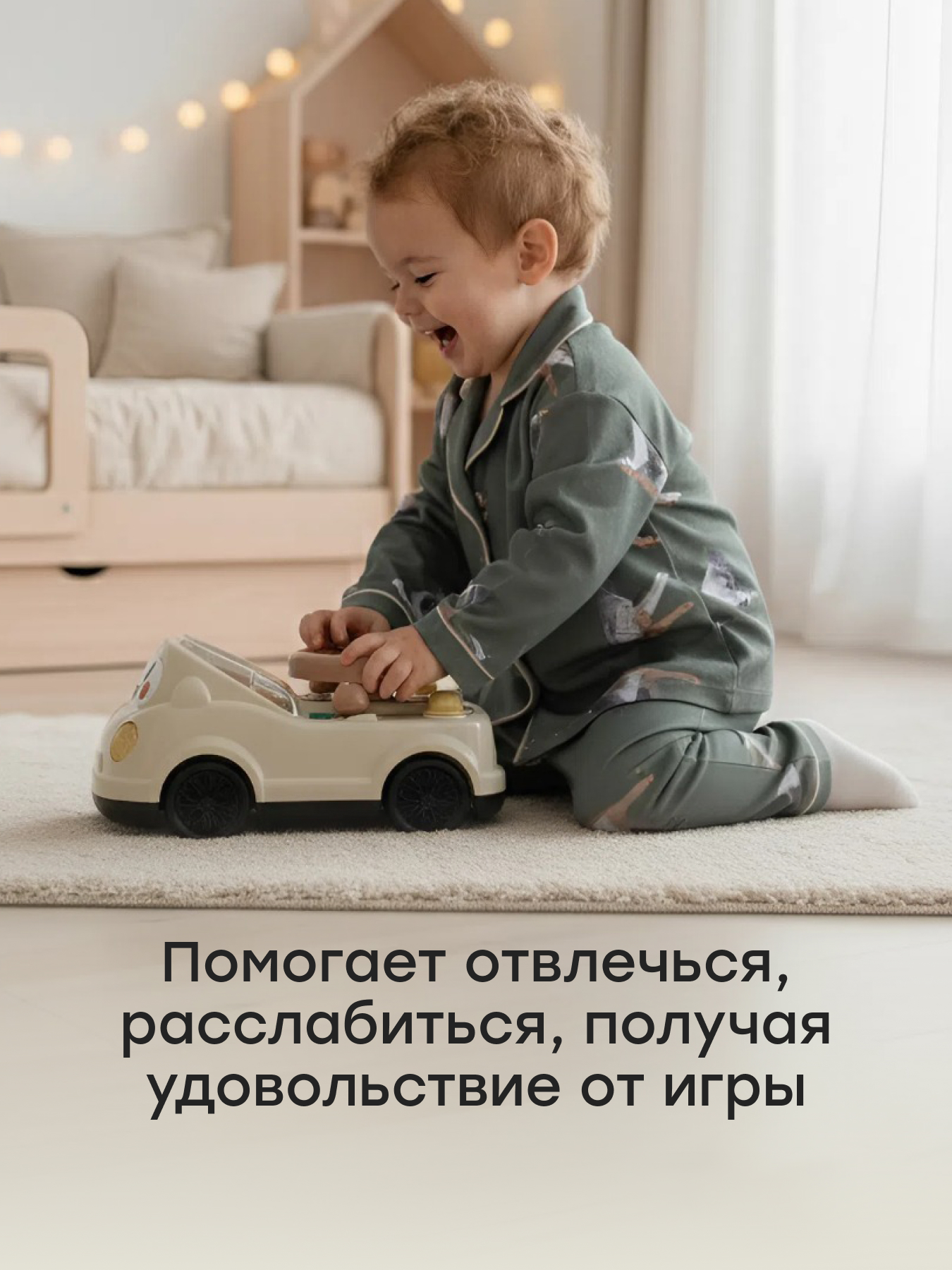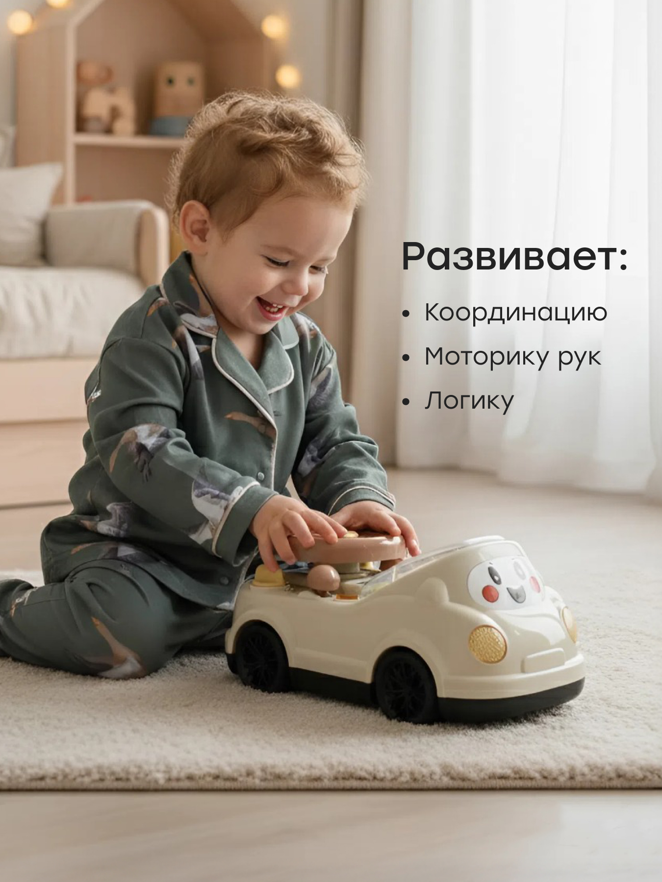 • Машинка изготовлена из прочных безопасных материалов с эргономичной формой, удобной для детских рук.