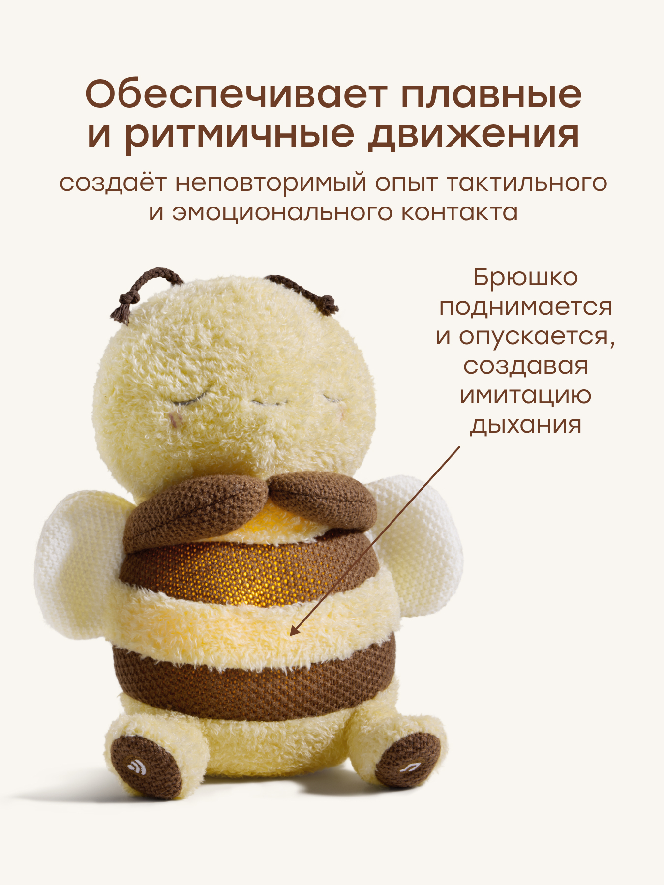 • Реалистичная имитация дыхания — настраивает на сон, мягко убаюкивая и снижая тревожность при засыпании