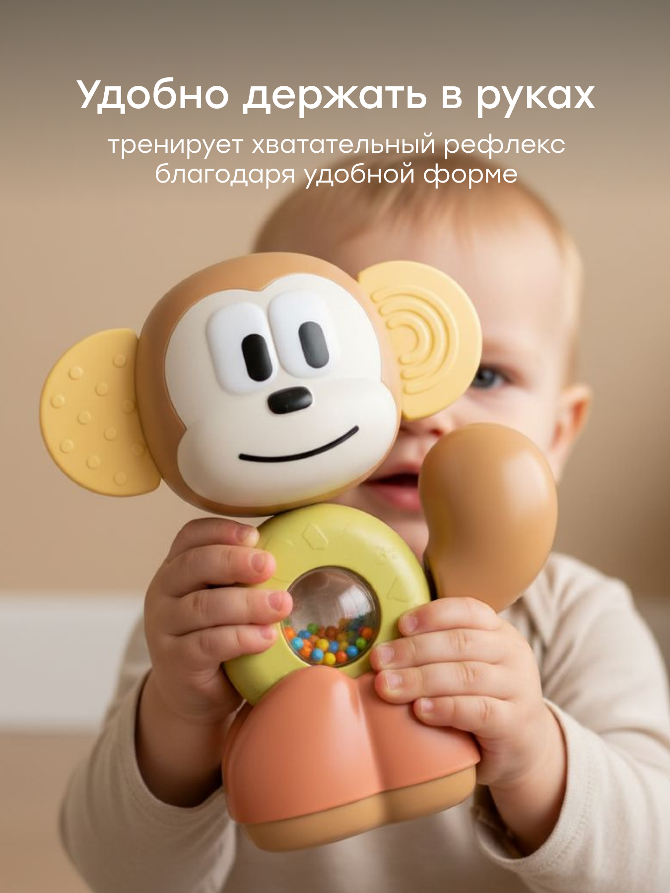 Эта интерактивная погремушка прорезыватель для мальчиков и девочек в виде весёлой обезьянки создана для всестороннего развития малышей с самого рождения. Её эргономичная форма и яркий дизайн привлекут внимание и подарят положительные эмоции.