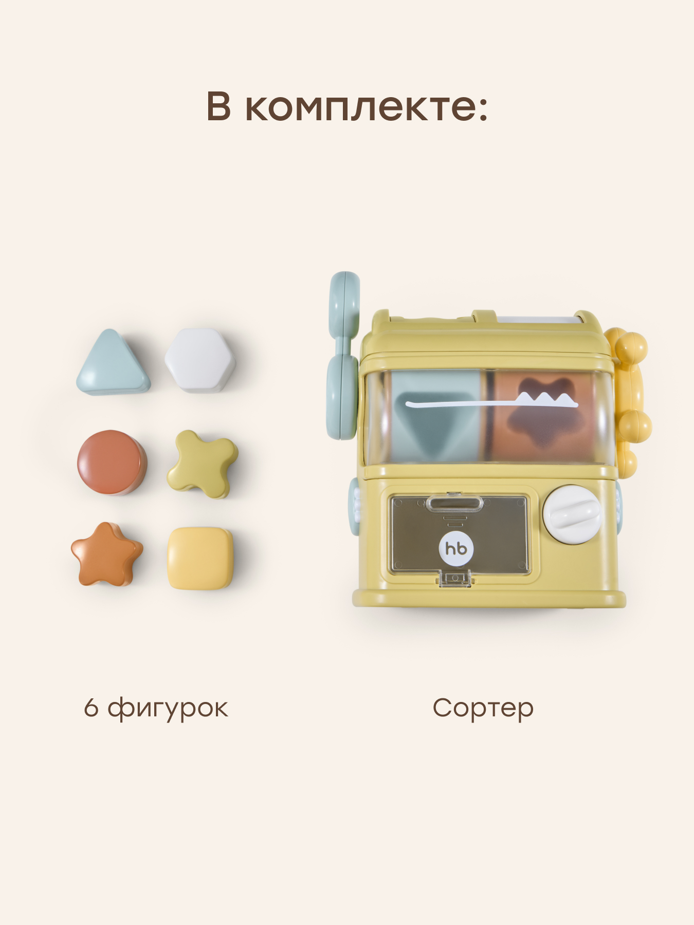 • Комплектация сортер 1 шт, фигурки 6 шт