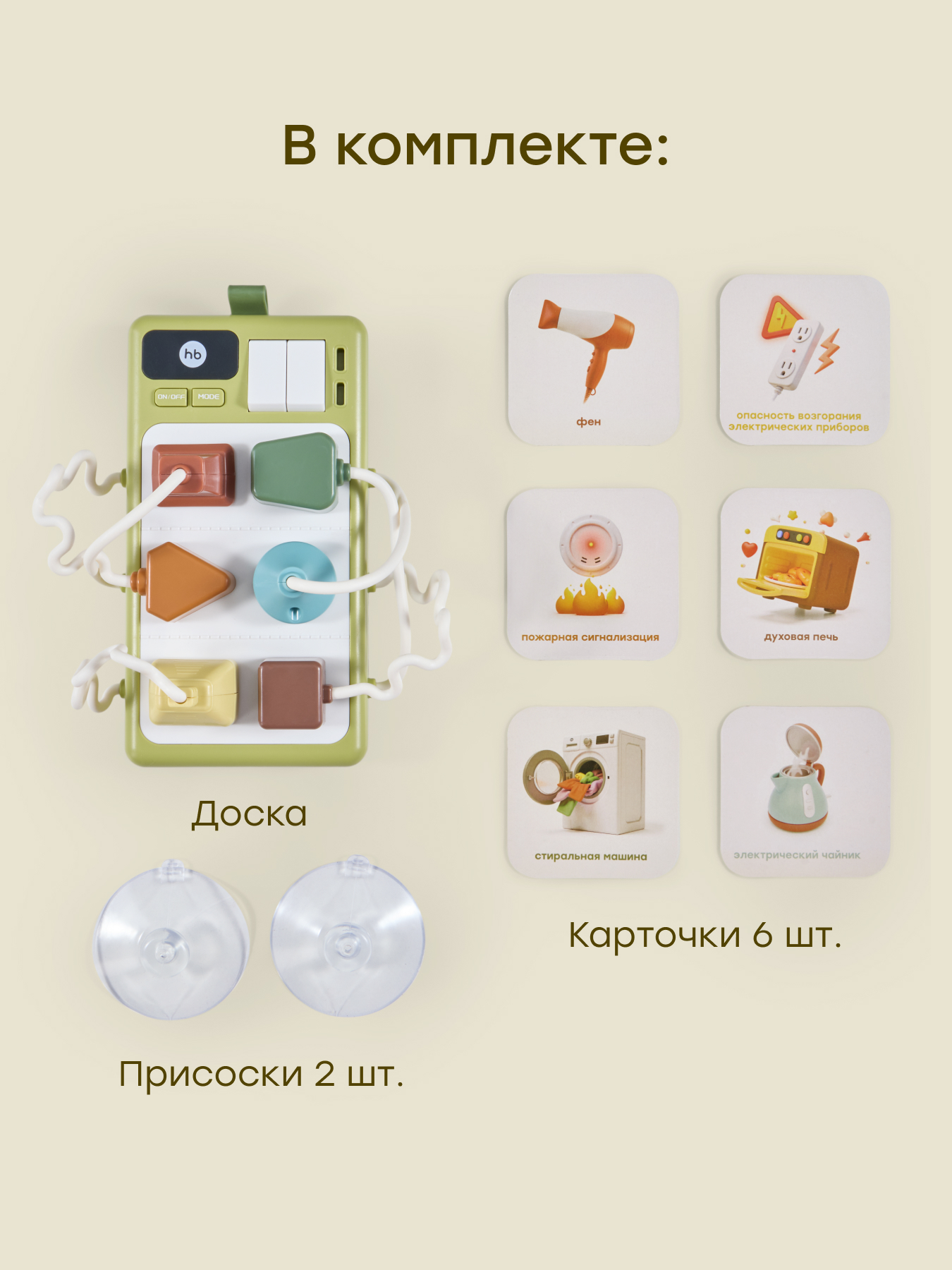• Комплектация доска 1 шт., карточки 6 шт., присоски 2 шт.