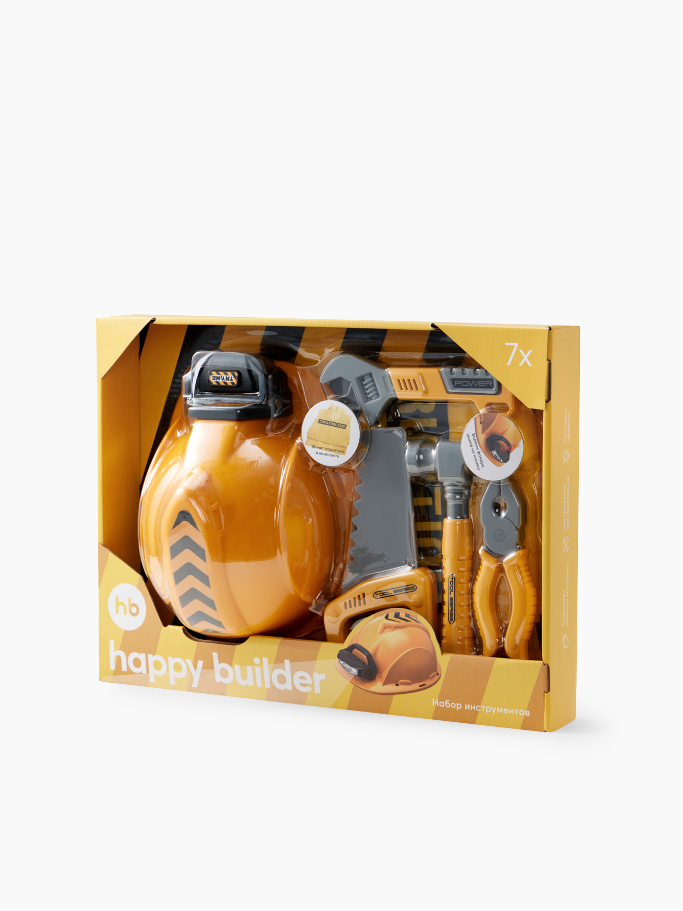 Набор инструментов от Happy Baby "HAPPY BUILDER" для мальчиков - это идеальное решение для маленьких мастеров. Ярко-желтый дизайн привлекает внимание и вдохновляет на творчество. Эти игрушки для мальчиков помогут укрепить координацию движений.