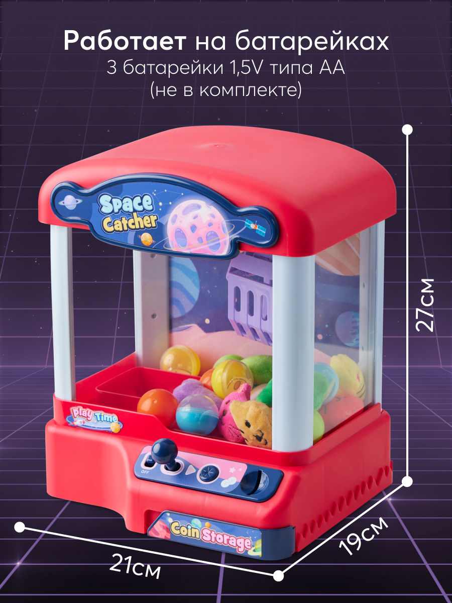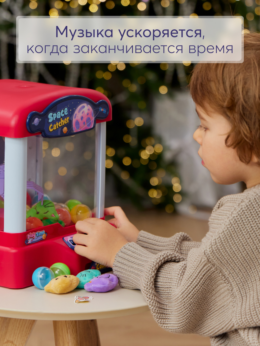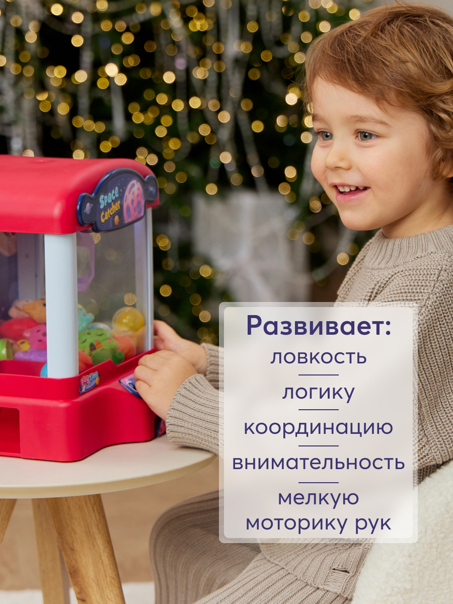 Детский игровой автомат с игрушками от Happy Baby представляет собой настоящую находку для маленьких исследователей и веселье для всей семьи. Игровой автомат имеет яркие огоньки и звуковые эффекты, которые делают его привлекательным для детей. Когда малыш играет в свой собственный автомат с игрушками он будет испытывать настоящую радость от выловленного приза и победы. Это не просто игрушка, а настоящее развлечение, которое принесет радость детям и взрослым. Играя с этим увлекательным устройством, ребенок не только получает удовольствие. Он развивает свои навыки логики, внимательности и ловкости рук. А также координацию движений и мелкую моторику. Мини игровой автомат поставляется в комплекте с игрушечными призами и монетками, что делает игру еще более интересной. Ребенок должен использовать рычаг управления, чтобы выбрать и достать краном с ковшом свой приз. Внутри автомата скрыты пластмассовые контейнеры с веселыми наклейками и маленькие мягкие игрушки. Этот игрушка-автомат обладает светящимися элементами, а во время игры звучит музыка. Музыкальная мелодия ускоряется, когда время заканчивается. Боковая панель аппарата открывается, так что вы можете заполнить его другими призами, заменив игрушки на сладости или конфеты.