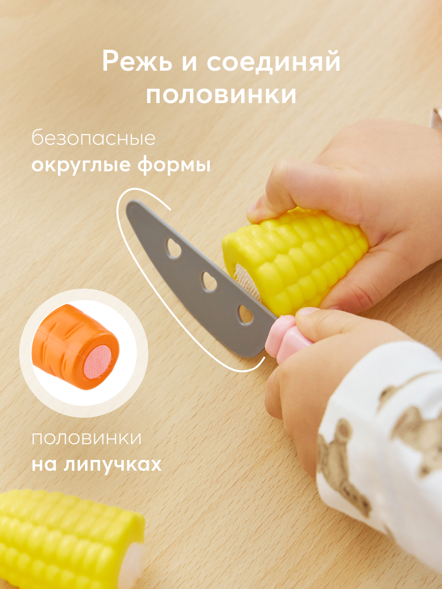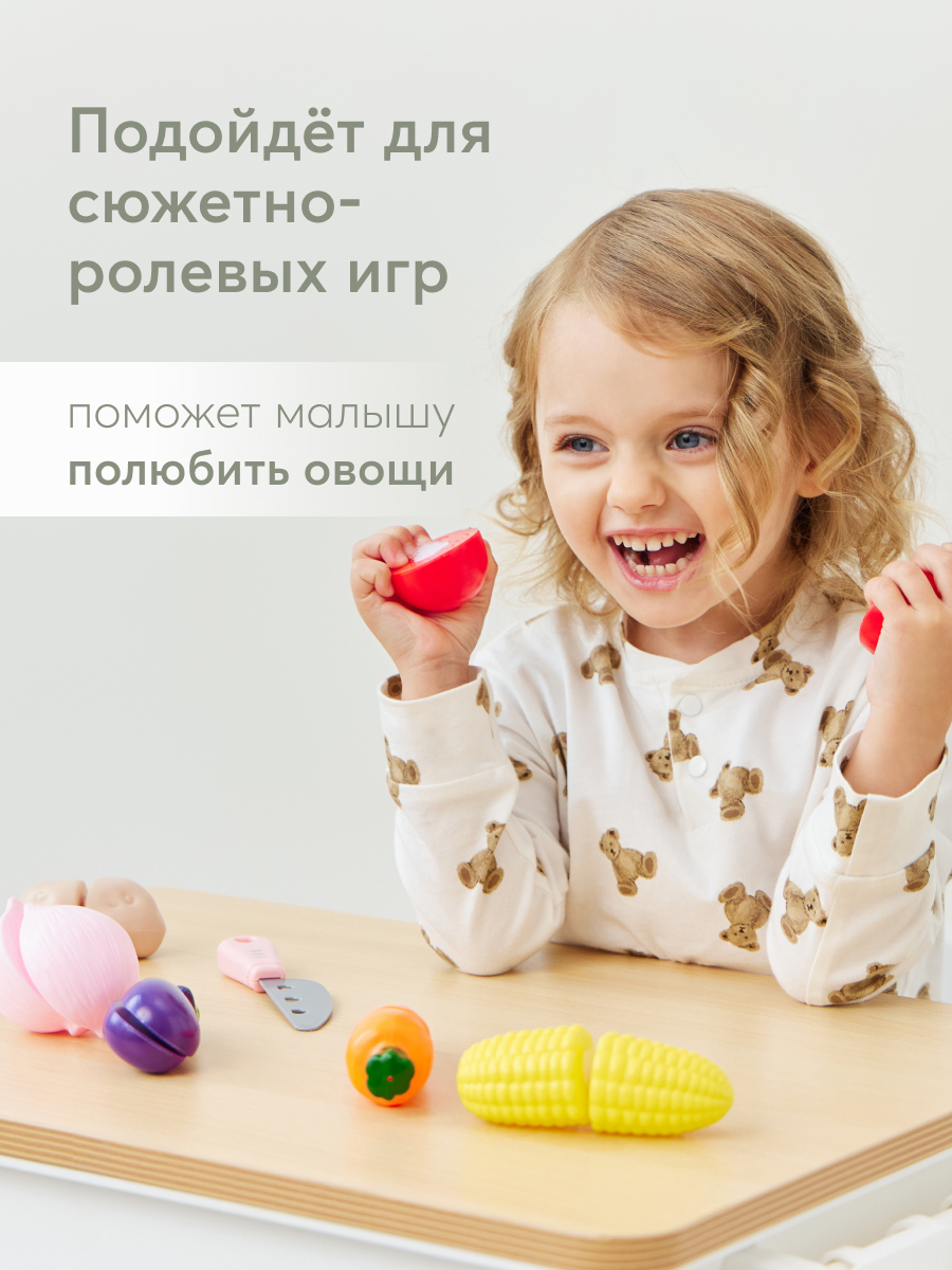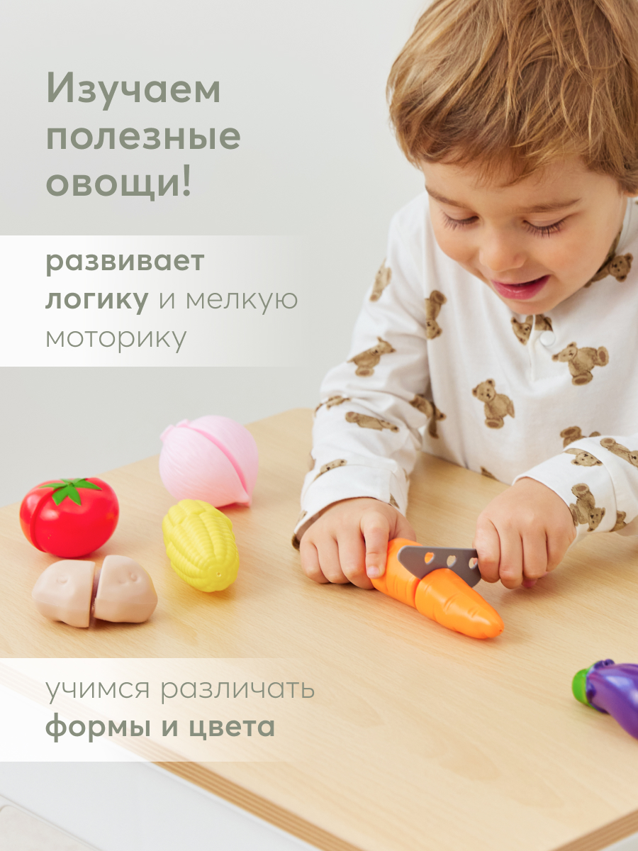 Набор HAPPY VEGEBOX – развивающая игра для малышей и детей постарше. Самые маленькие благодаря игрушке смогут выучить цвета, а также названия и внешний вид разных овощей. В процессе разрезания половинок ножиком ребенок развивает ловкость и мелкую моторику. Когда части овоща, наоборот, нужно соединить, ребенок учится сравнивать предметы, находить сходства и различия, тем самым тренируя логику и интеллект. Дети постарше с радостью будут использовать игрушку в сюжетно-ролевых играх. Игрушка отлично сочетается с наборами посуды и кукольной бытовой техникой от Happy Baby.