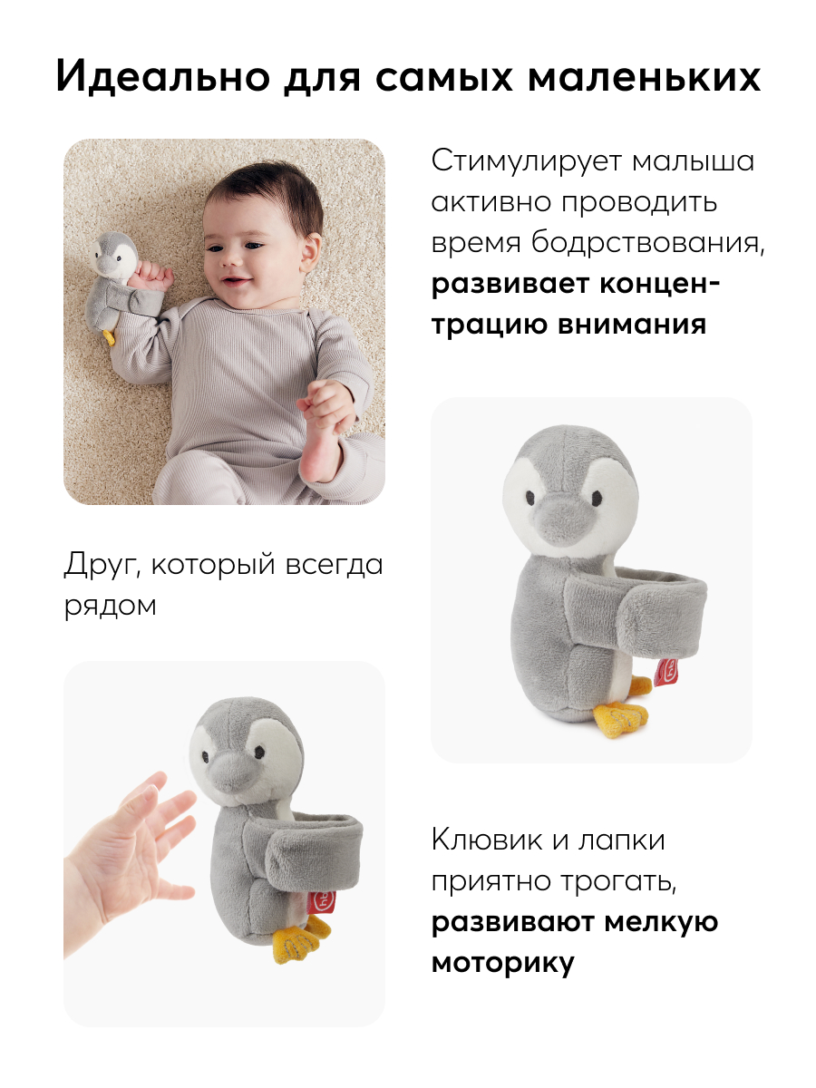 Благодаря браслету с малышом всегда рядом мягкий улыбчивый друг. Браслет нежно фиксируется на запястье. Игрушка стимулирует малыша двигать руками, активно проводить время бодрствования и учиться сознательно управлять своим телом. Идеально подходит для детей, которые ещё не умеют держать предметы.