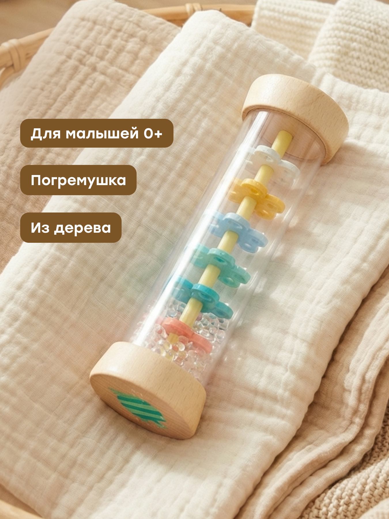 Игрушка увлечет малыша и поможет ему развиваться. Наблюдая за движением внутри стеклянной колбы, ребенок развивает зрение и внимание, цветовое восприятие. Мягкий звук, издаваемый механизмом, развивает слух. Игрушку удобно держать в детских ладошках.