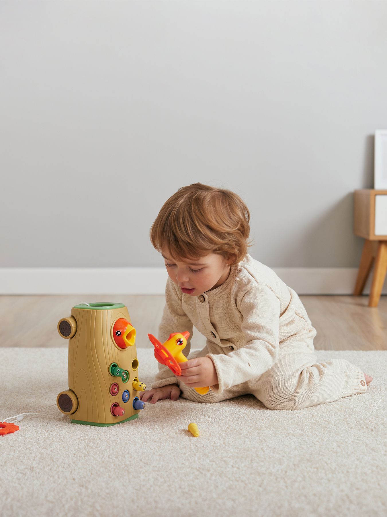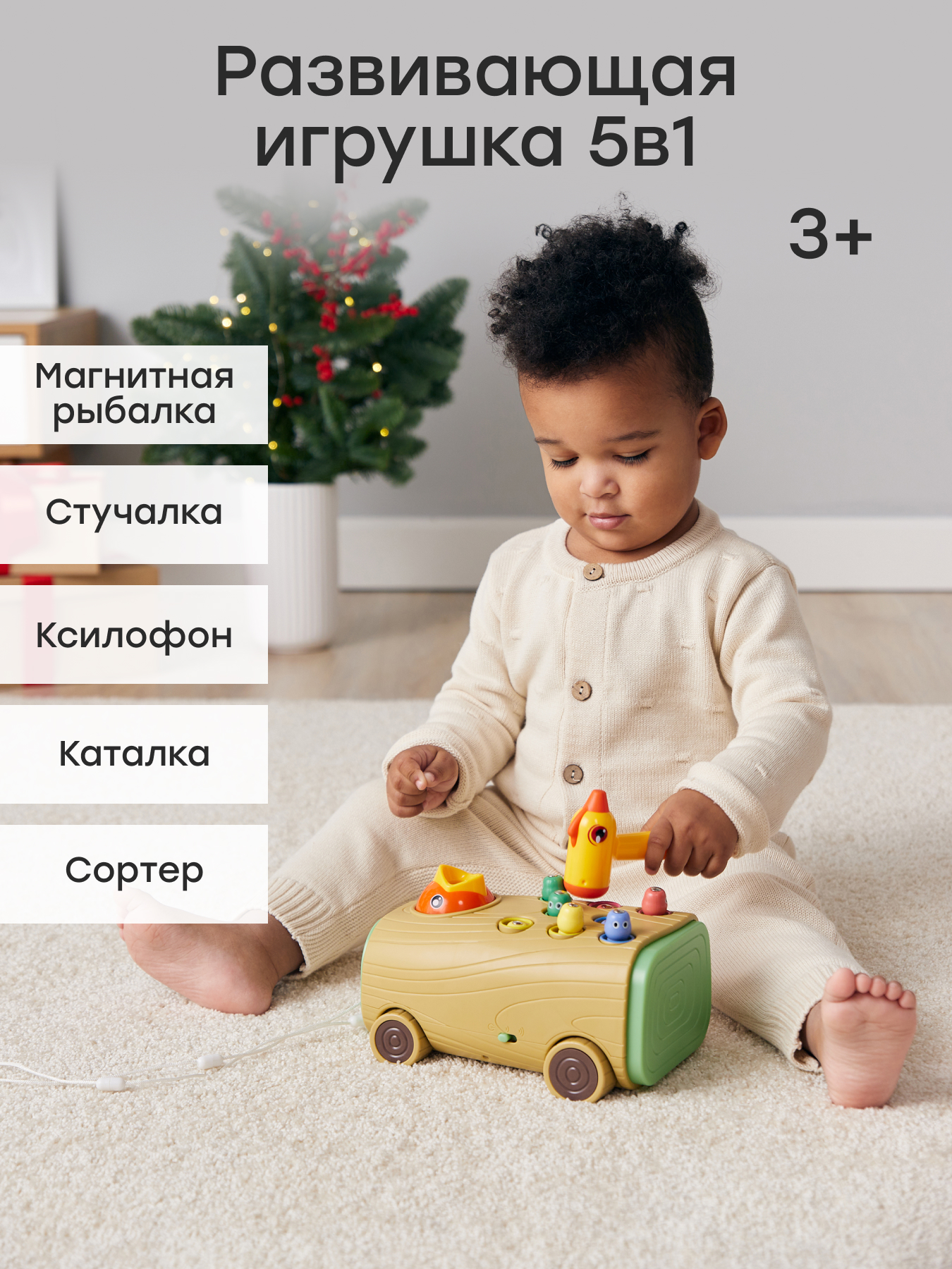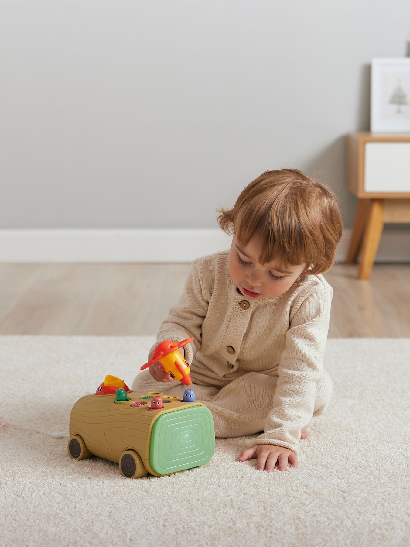 Игрушка-стучалка HUNGRY BIRD объединяет три игры в одной. 1 – нужно успеть стукнуть молоточком по всем червякам за определённое время, преодолев три уровня сложности: 30/60/99. 2 – нужно покормить птенца червячками, используя магнитный молоточек, 3 – игрушку можно использовать как каталку. HUNGRY BIRD сделан из приятного на ощупь материала, снабжён звуковыми и световыми эффектами, LED-дисплеем. Игра развивает координацию и реакцию, мелкую моторику, логику, учит определять цвета, считать, помогает выучить цифры, пробуждает познавательный интерес.