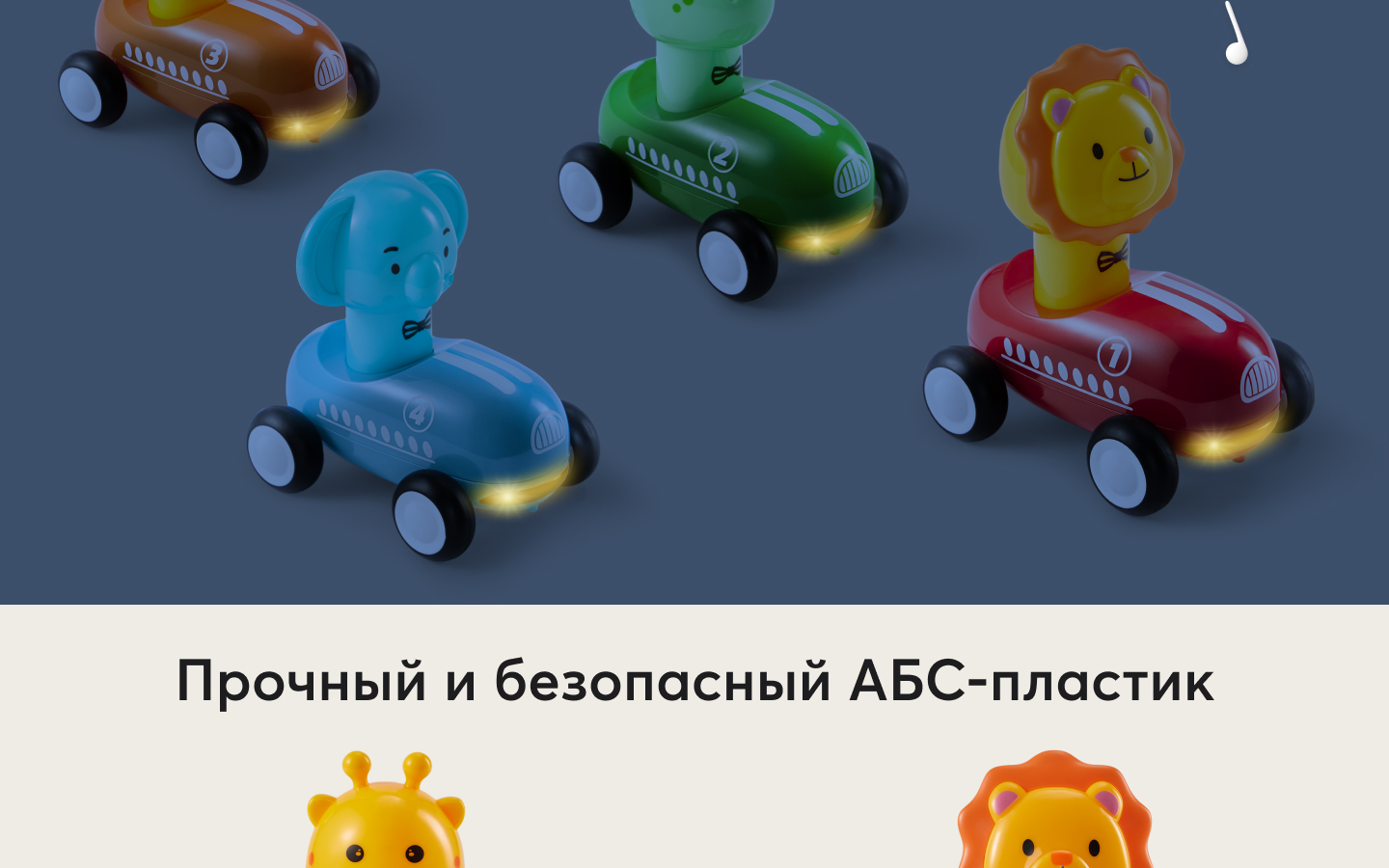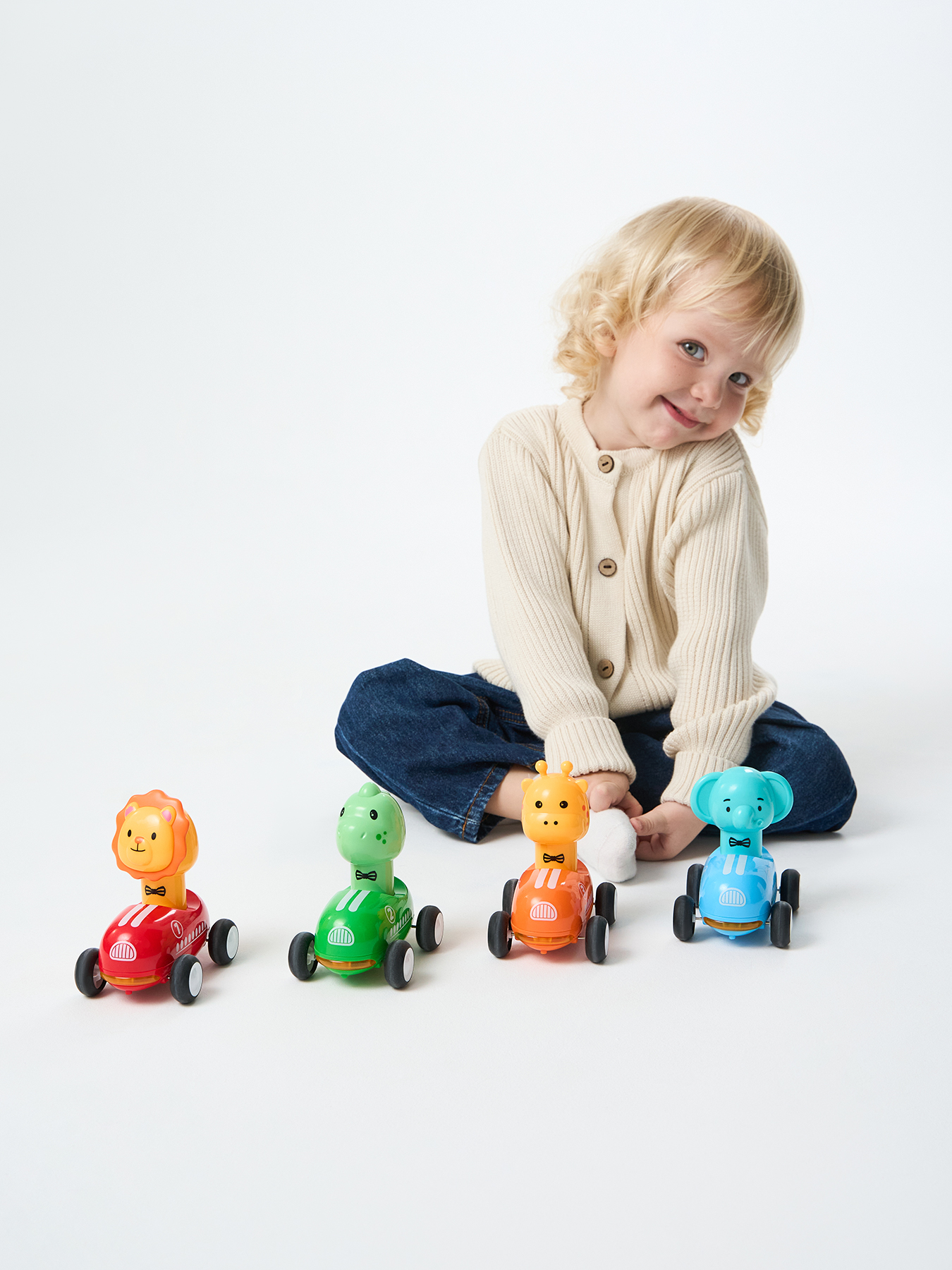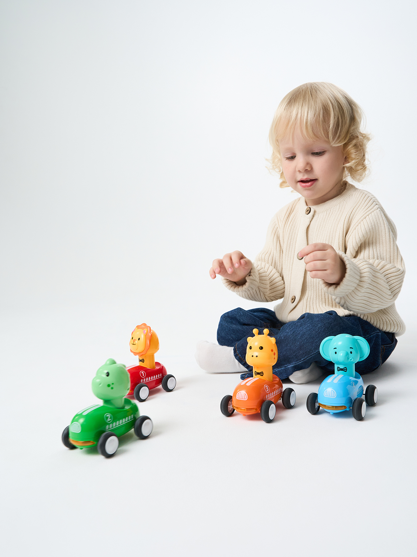 Инерционные игрушки-машинки от Happy Baby "HAPPY RIDERS" представляют собой увлекательный детский набор. Они идеально подходят для игры как на улицах, так и в песочнице. Набор предлагает разнообразные возможности для творчества и игры. Эти развивающие машинки стимулируют воображение. Дети могут создавать различные сцены, придумывать сюжеты и управлять своим маленьким миром. Инерционные игрушки способствуют развитию координации у детей, что значительно важно в раннем возрасте. Игровой процесс становится более насыщенным, благодаря эффекту движения. Развивает моторику, этот набор станет отличным помощником в обучении сосредоточенности. Мальчики и девочки вовлекаются в игру и учатся достигать поставленных задач. Красивые разноцветные детали привлекают внимание, создавая уютную игровую атмосферу. Машинки имеют уникальное оформление – машинки представлены в виде животных, что делает игру еще более интересной и захватывающей. Это позволяет детям не только играть, но и знакомиться с природой и ее обитателями. Ребёнок может соревноваться с друзьями или разрабатывать свои собственные тестовые треки для заездов.
