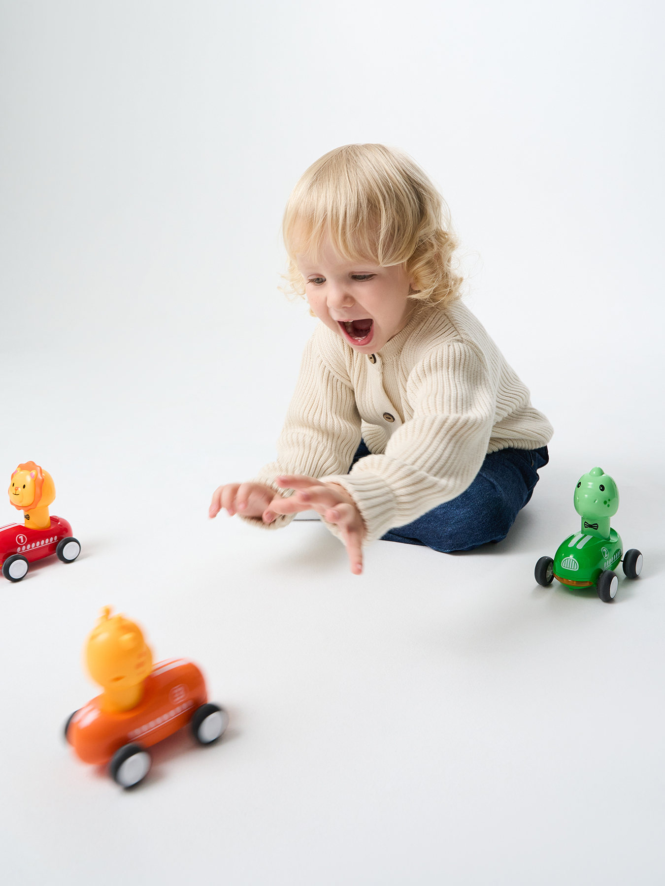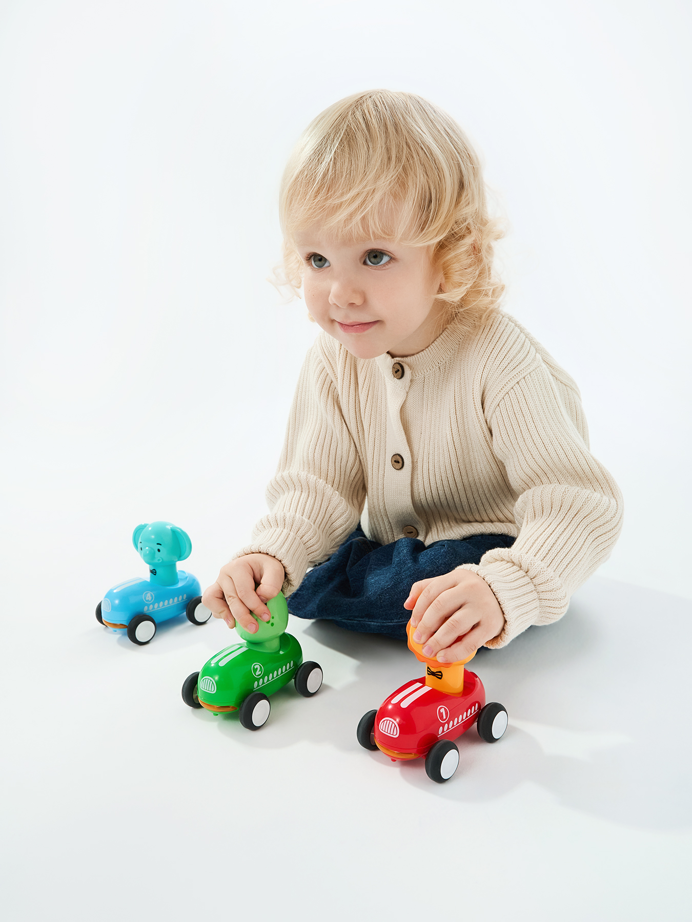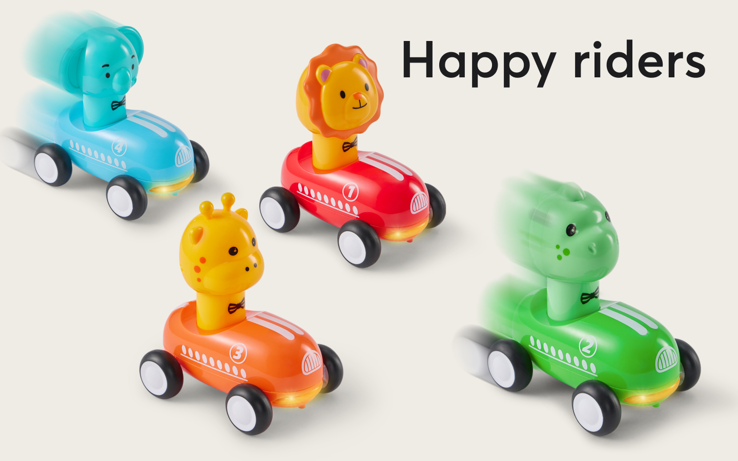 Инерционные игрушки-машинки от Happy Baby "HAPPY RIDERS" представляют собой увлекательный детский набор. Они идеально подходят для игры как на улицах, так и в песочнице. Набор предлагает разнообразные возможности для творчества и игры. Эти развивающие машинки стимулируют воображение. Дети могут создавать различные сцены, придумывать сюжеты и управлять своим маленьким миром. Инерционные игрушки способствуют развитию координации у детей, что значительно важно в раннем возрасте. Игровой процесс становится более насыщенным, благодаря эффекту движения. Развивает моторику, этот набор станет отличным помощником в обучении сосредоточенности. Мальчики и девочки вовлекаются в игру и учатся достигать поставленных задач. Красивые разноцветные детали привлекают внимание, создавая уютную игровую атмосферу. Машинки имеют уникальное оформление – машинки представлены в виде животных, что делает игру еще более интересной и захватывающей. Это позволяет детям не только играть, но и знакомиться с природой и ее обитателями. Ребёнок может соревноваться с друзьями или разрабатывать свои собственные тестовые треки для заездов.