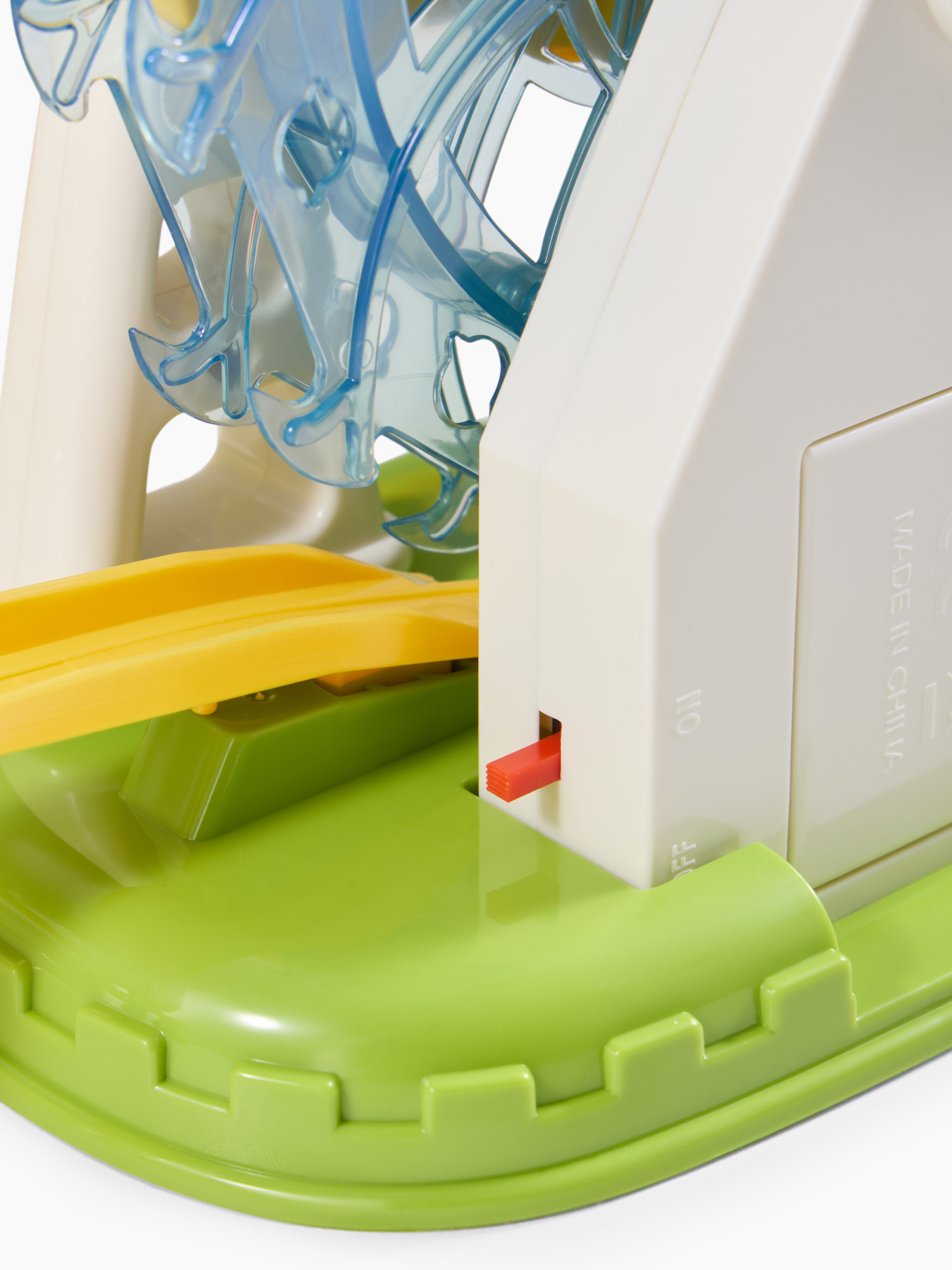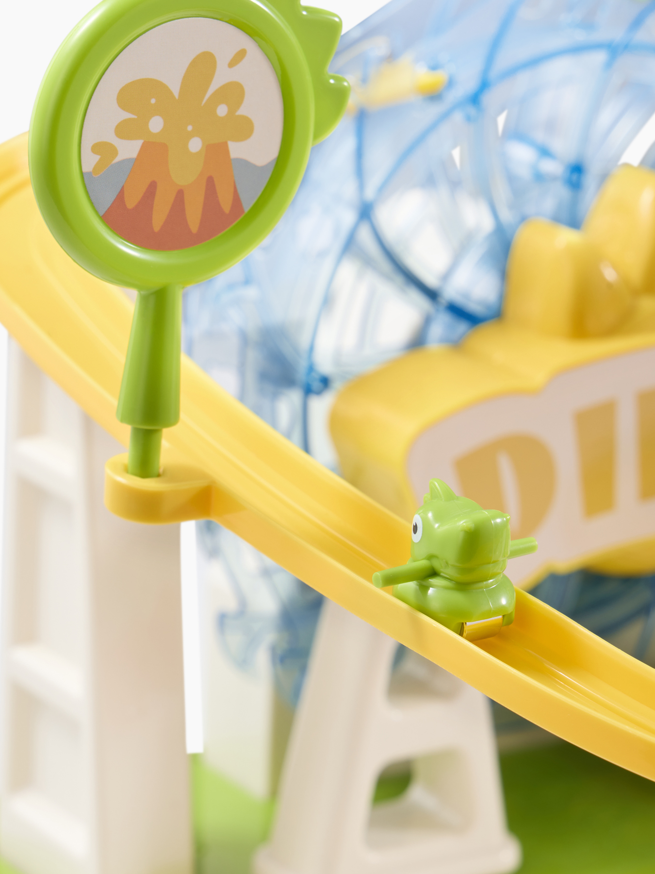 • Автоподъемник – лестница поднимает динозавров, которые затем скатываются по спиралевидным трекам. Этот непрерывный цикл движения создает завораживающее зрелище, развивающее зрительное восприятие и концентрацию внимания.