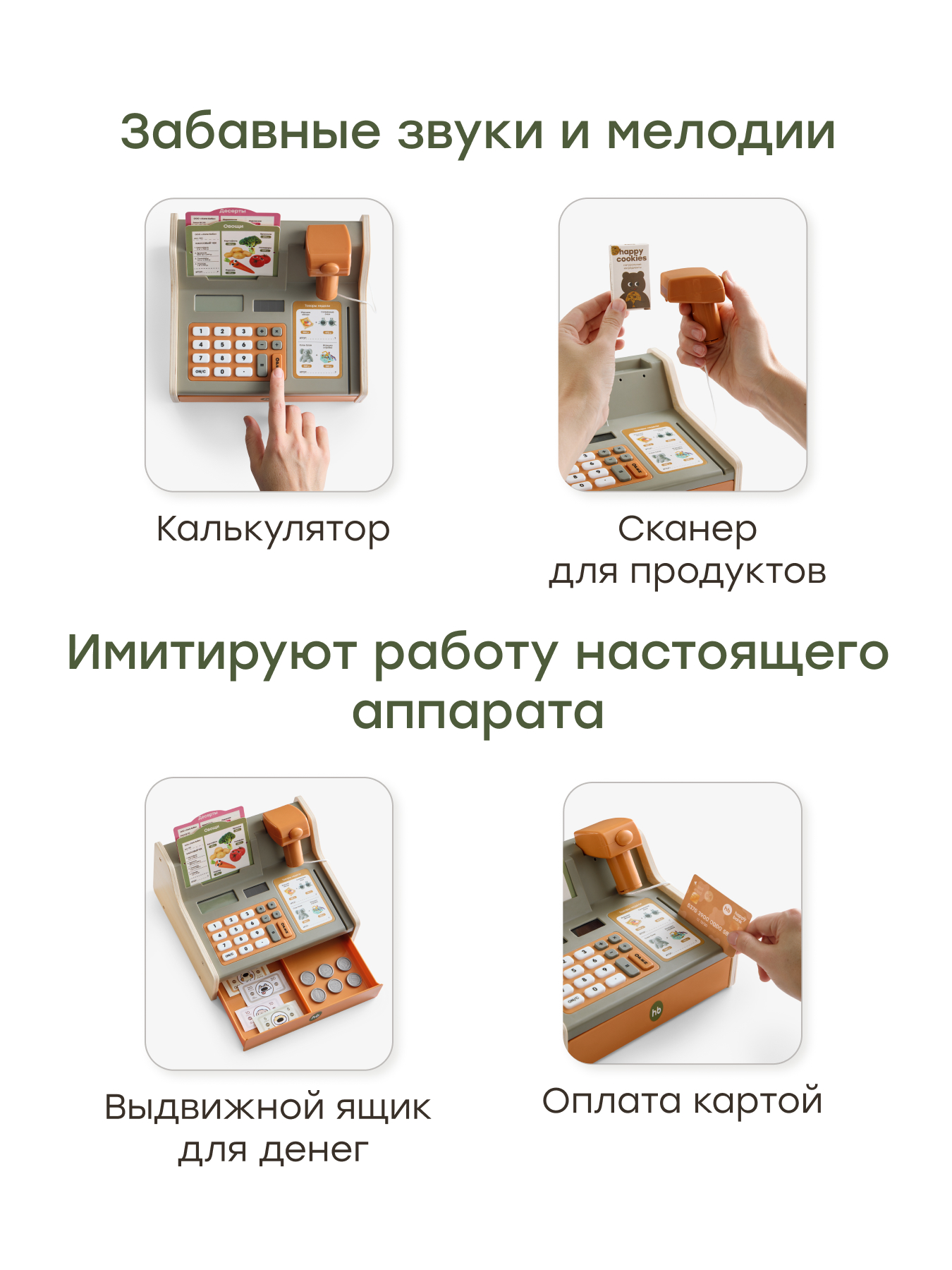 Особенности • Развитие через игру — игрушечная касса способствует формированию математических способностей